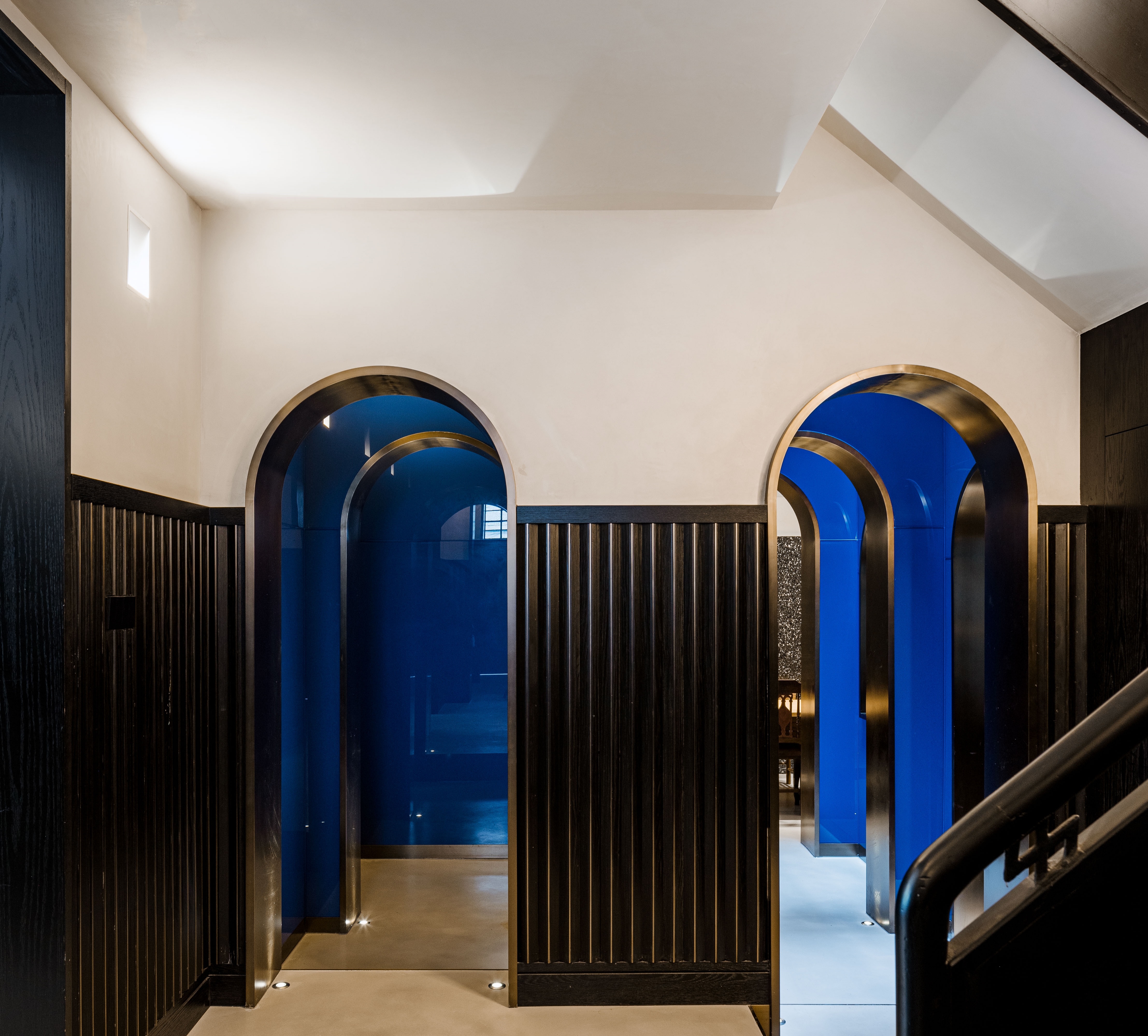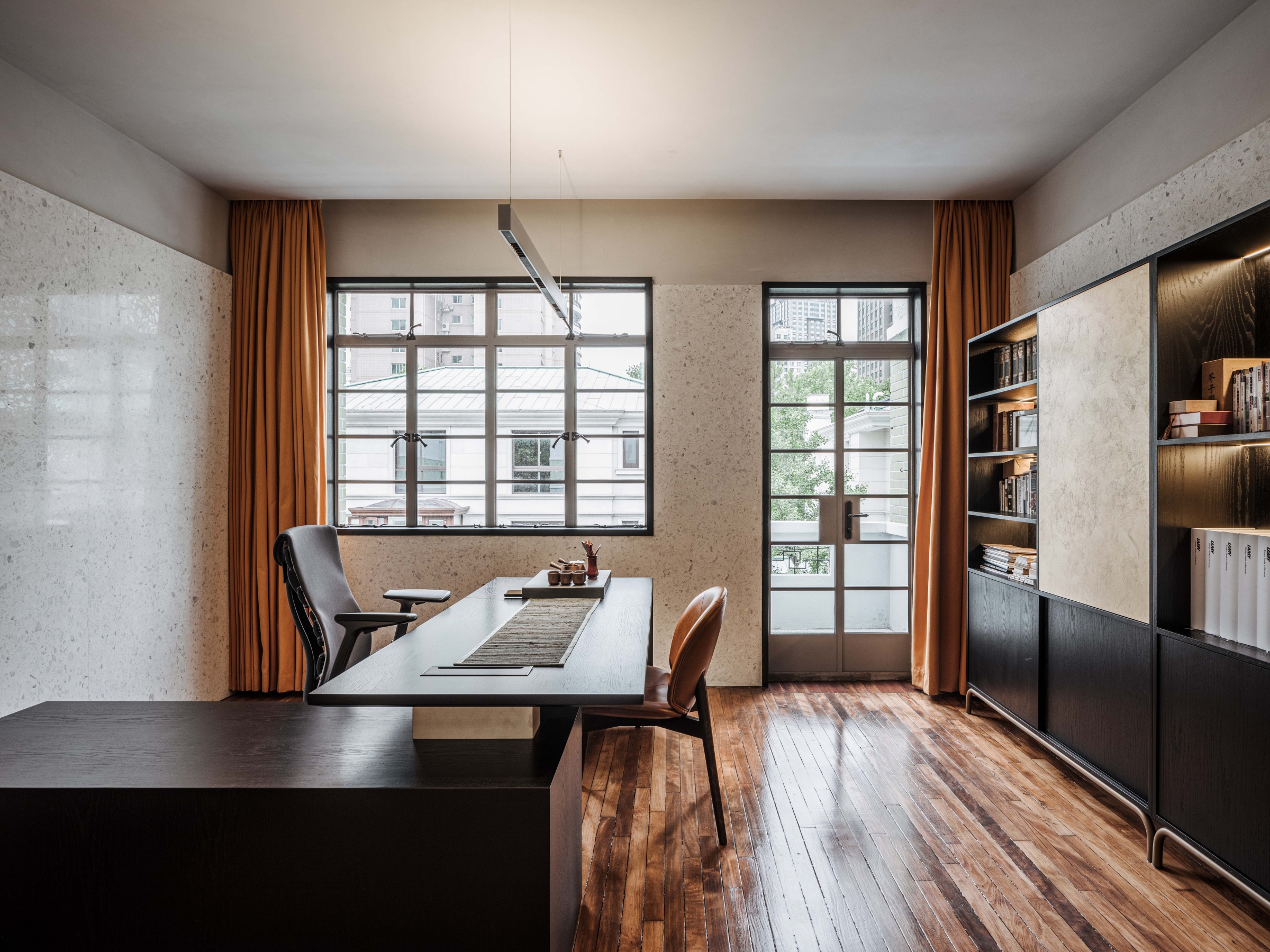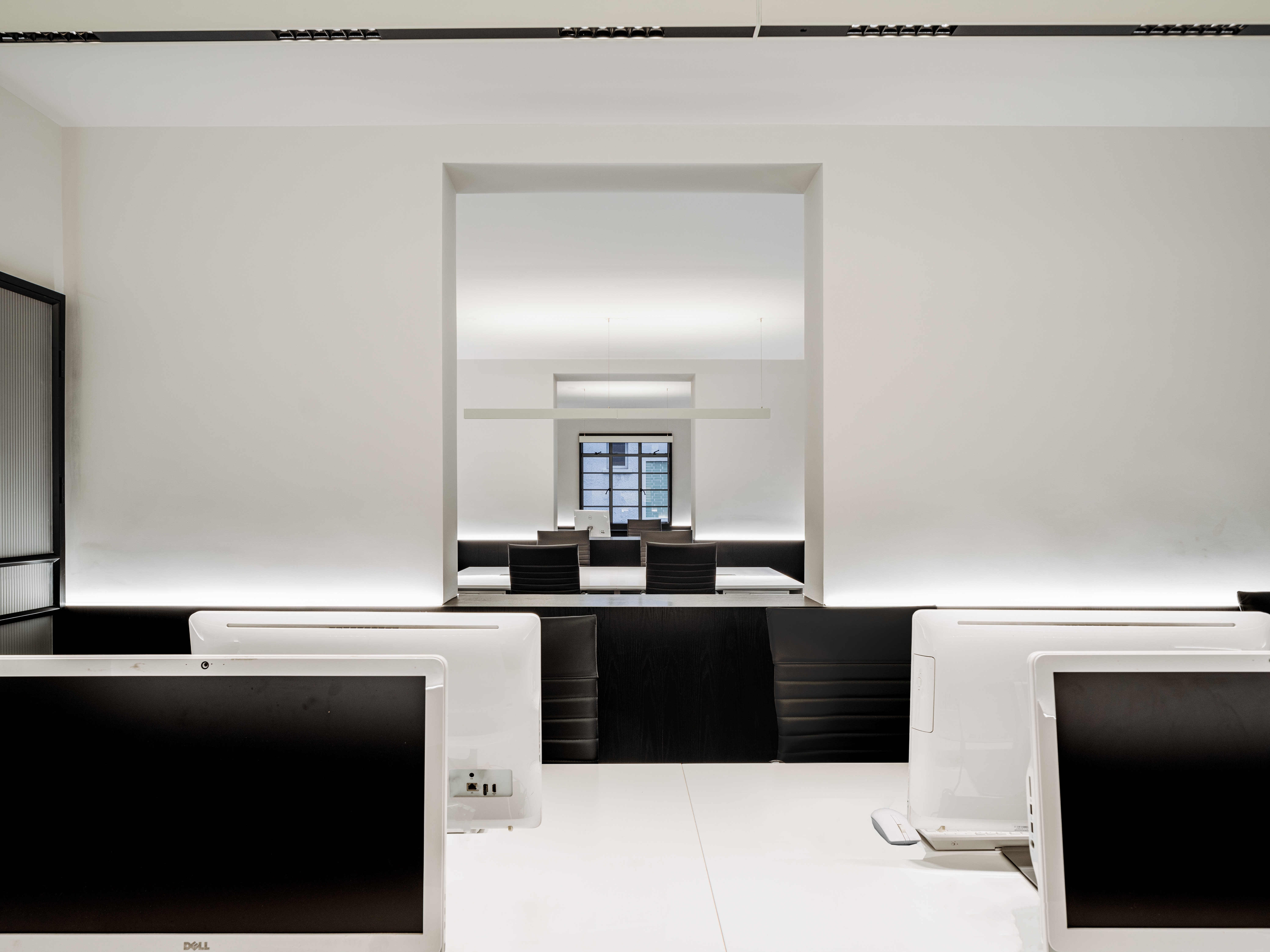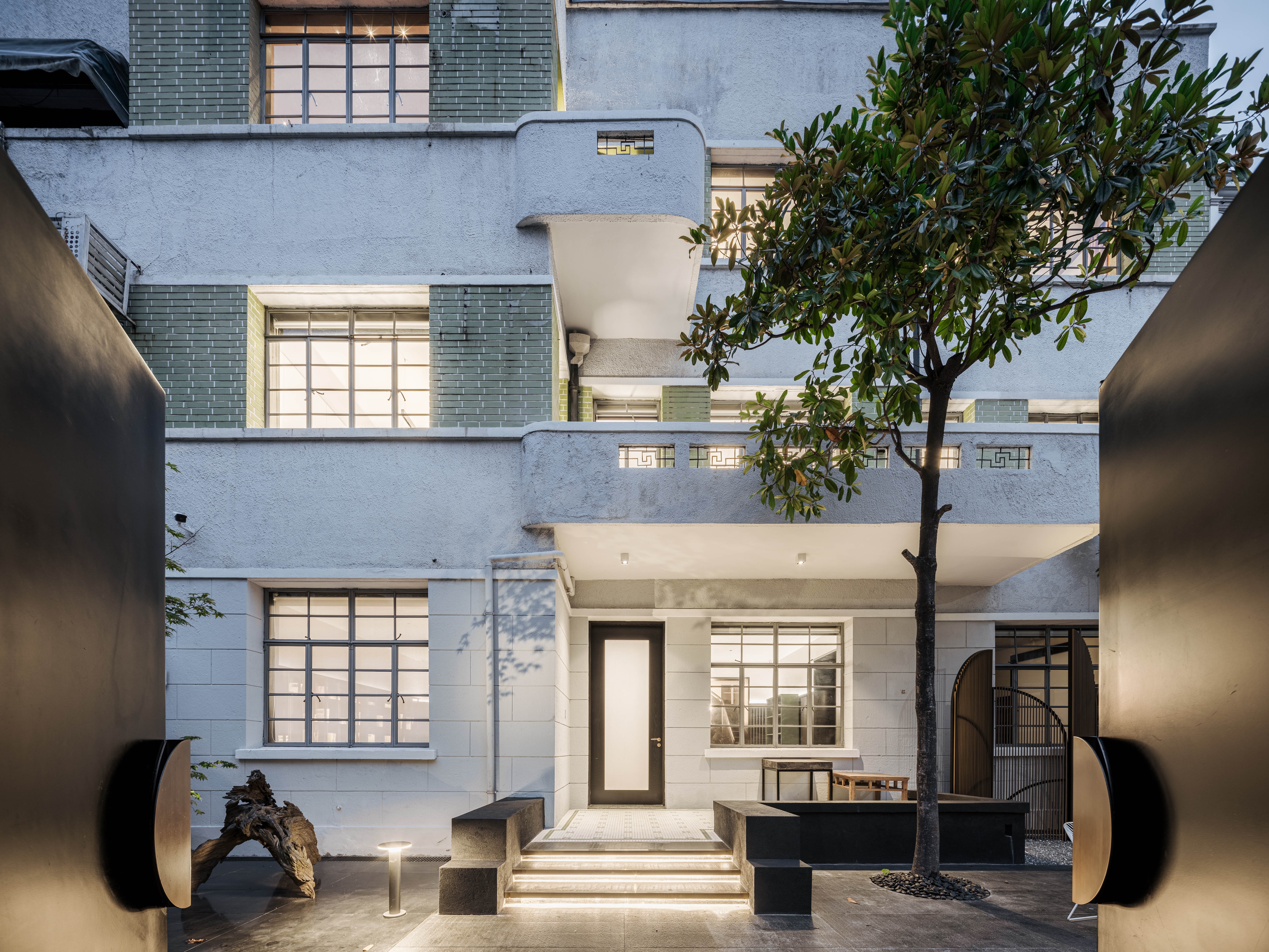 Entry DescriptionThis project is located in the heart of Shanghai as a home office and gallery. Given the fact that no structure was allowed to be modified as a historical reserved house, color is used as the independent and unique basic element to shape the spatial texture. Architect used different textures and depths of black and white as a set of relationships as the main color of the house, as well as the tone, line, contrast, and contrast between light and dark may be a choice to shape the space. In corresponding to the architecture, color temperature from 2700K to 4000K had been applied throughout the spaces. Various light fittings had been used in this project to match different room function and ambience, such as a well-connected light well, a galley without a gap, and a three-open office area with a line of sight. For example, direct and indirect pendent fixtures provide soft ambient light while enough lux for wok with automatic color temperature changing system; decorative pendent welcomes all staff and clients at reception room; hidden wall uplight make the corridor a soft transit area; Ingrade uplight softly highlight the eight blue arch with anti-glare protection etc.