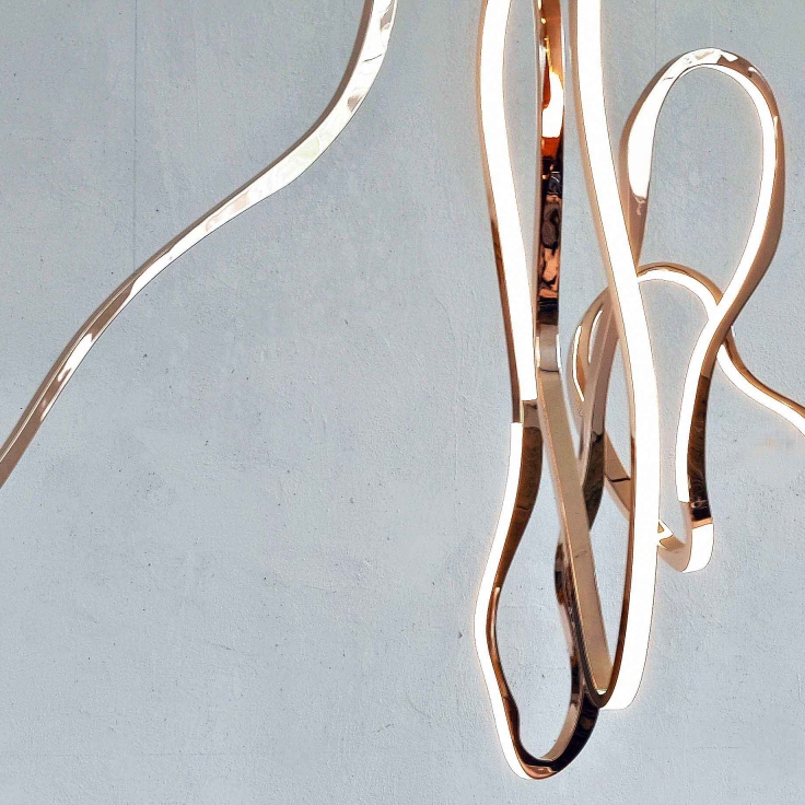 The illumination of each piece can be controlled to be a subtle line of light or to give a stronger and more definite light emission.