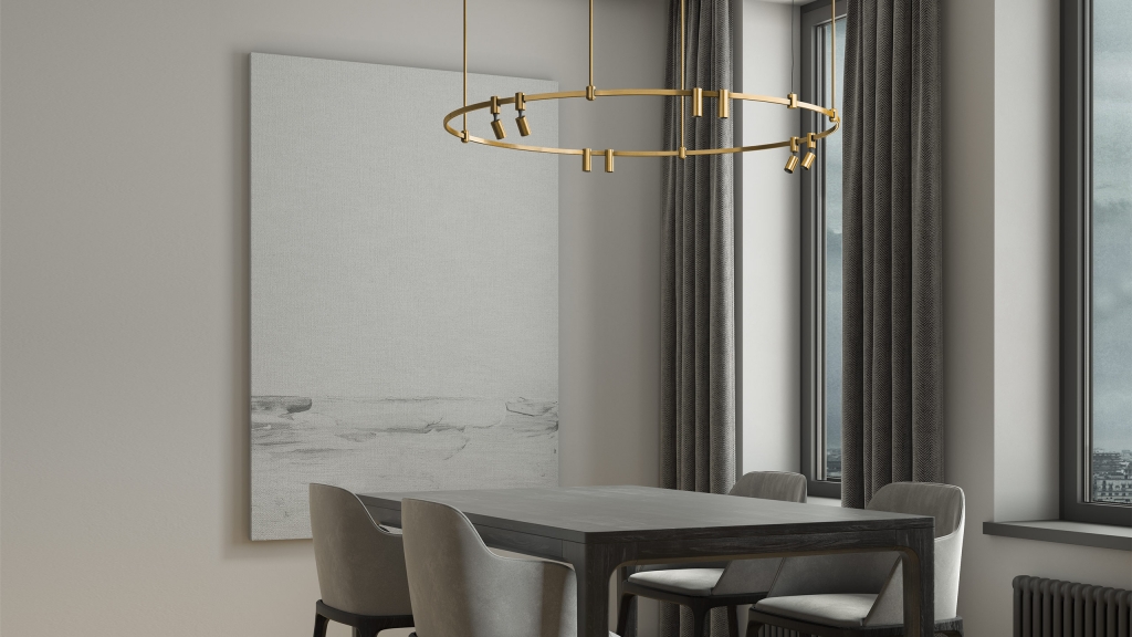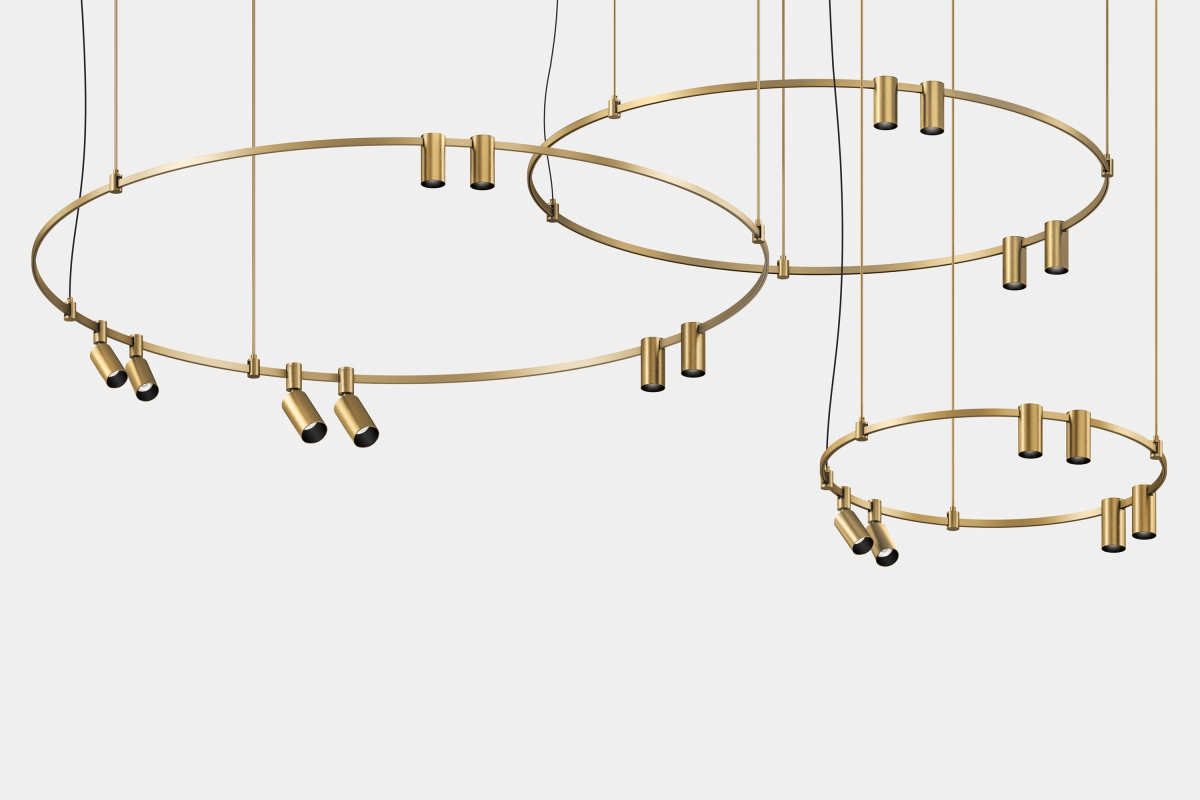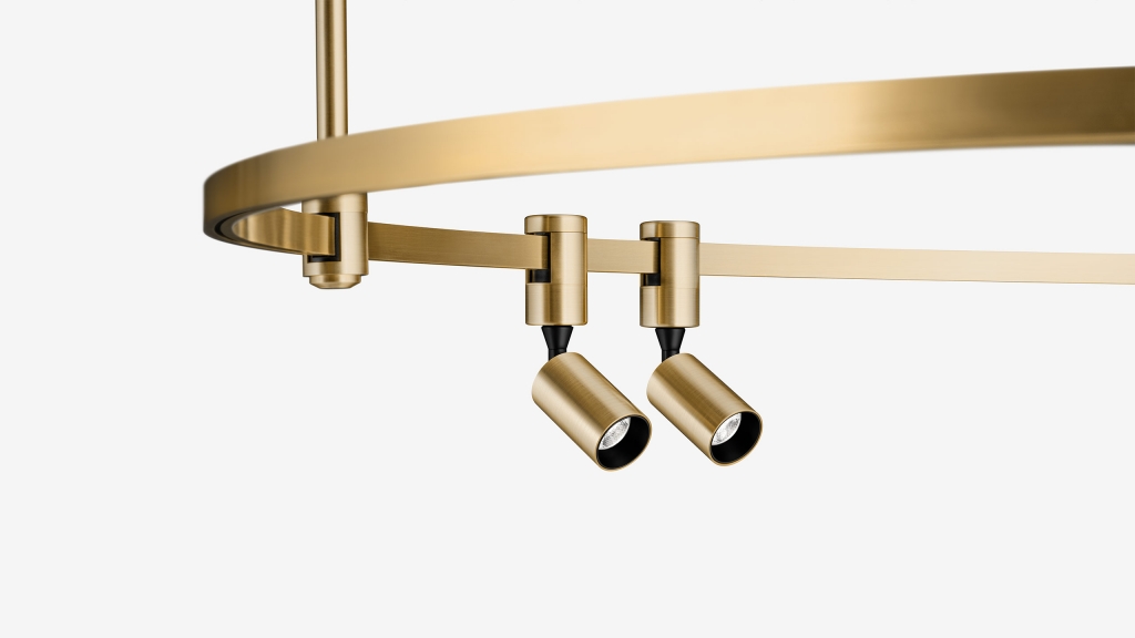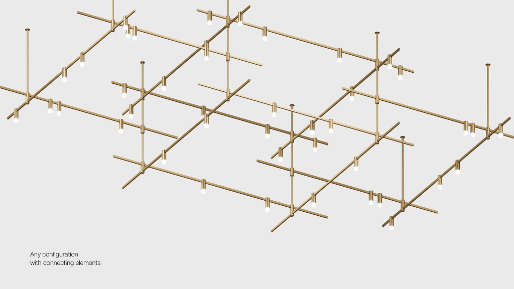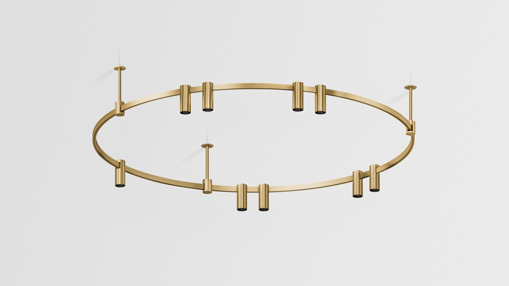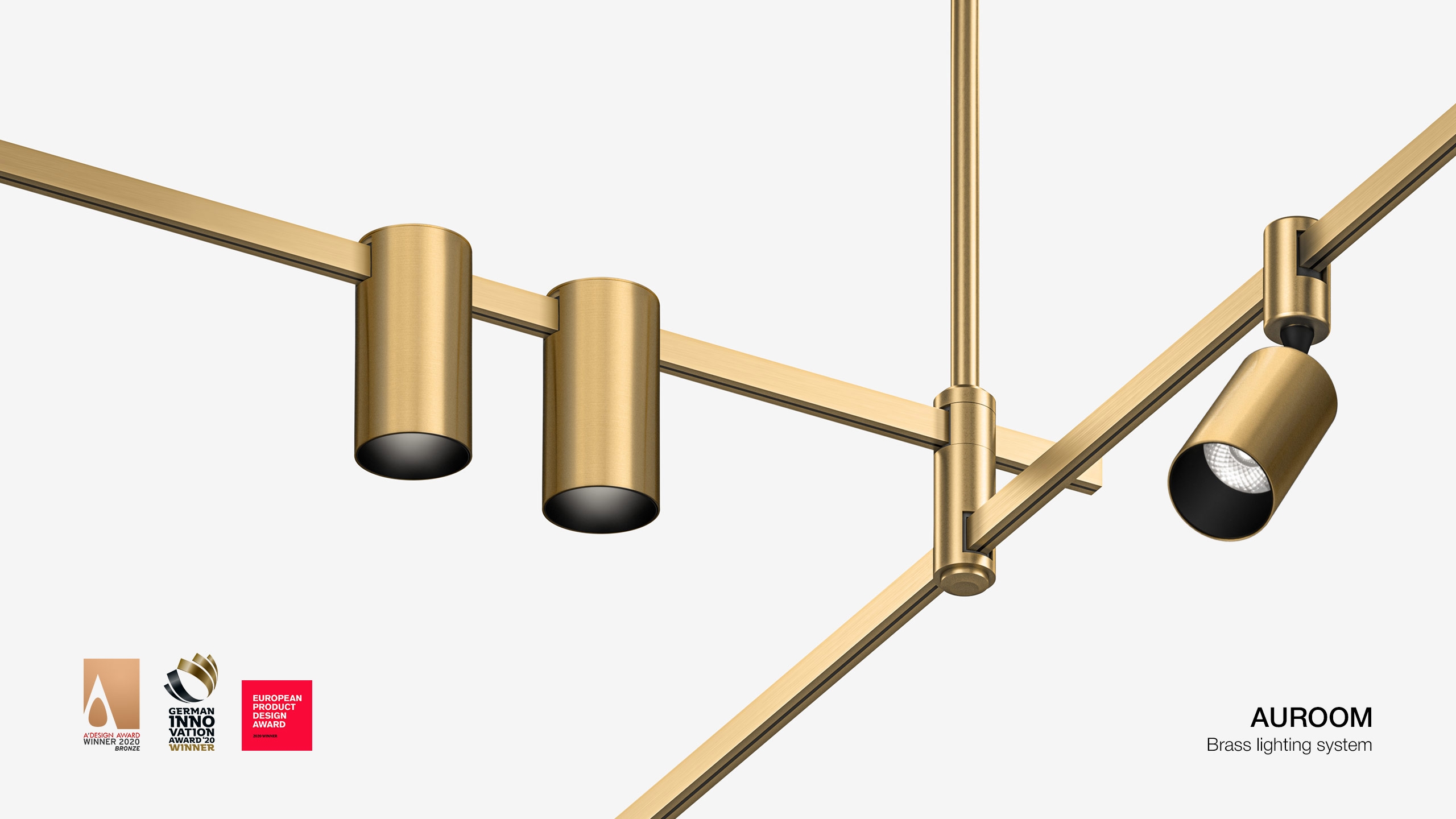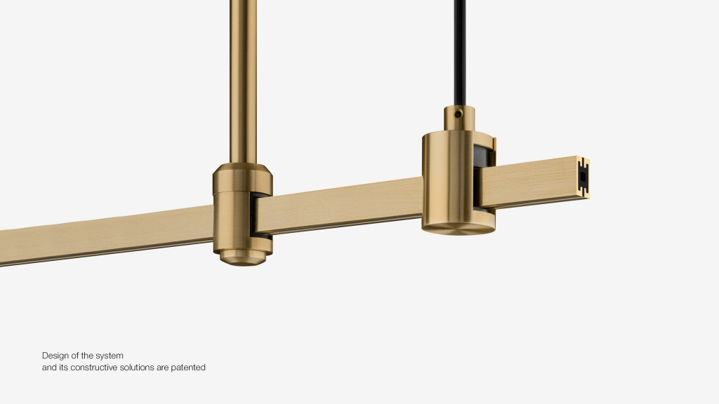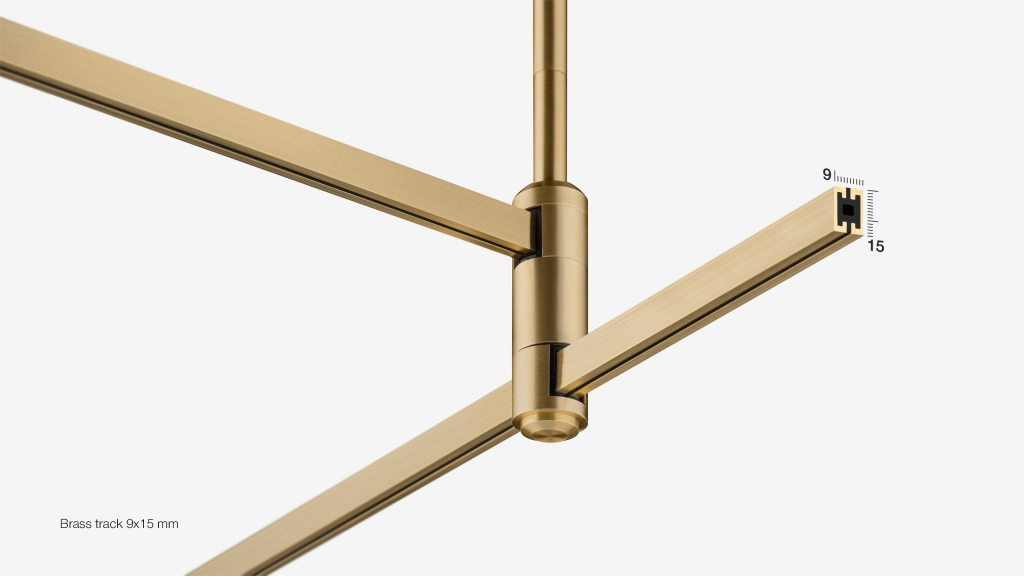 AUROOM brass lighting system is the new lighting system made of pure brass. Surface-mounted, any length and configuration. The number and positioning of track fixtures can be easily altered. Track fixtures are installed where needed and then easily move along the track. The system can be mounted at any stage of the repairs. Control via 1-10V or DALI, depending on power unit (chosen separately).