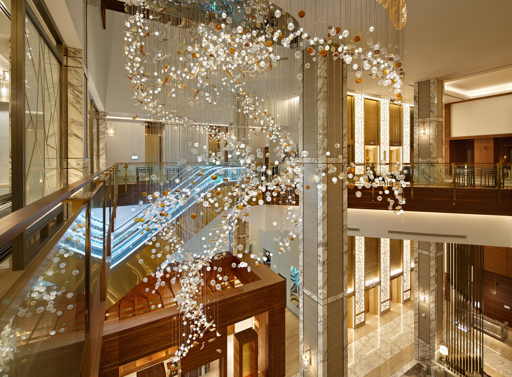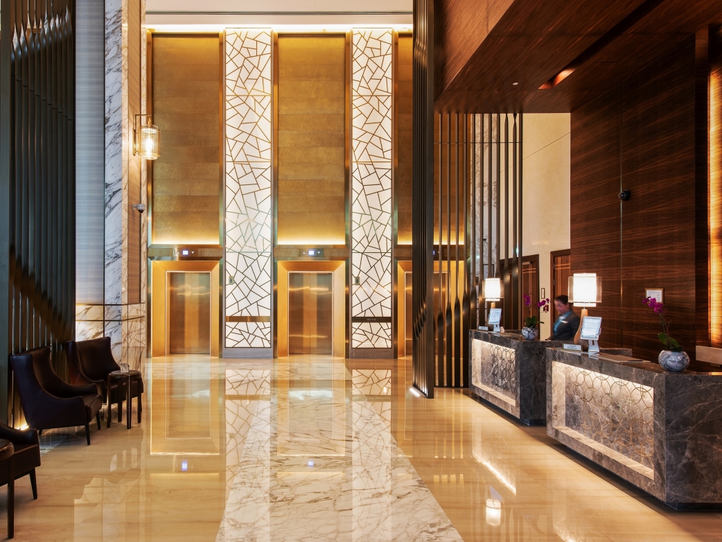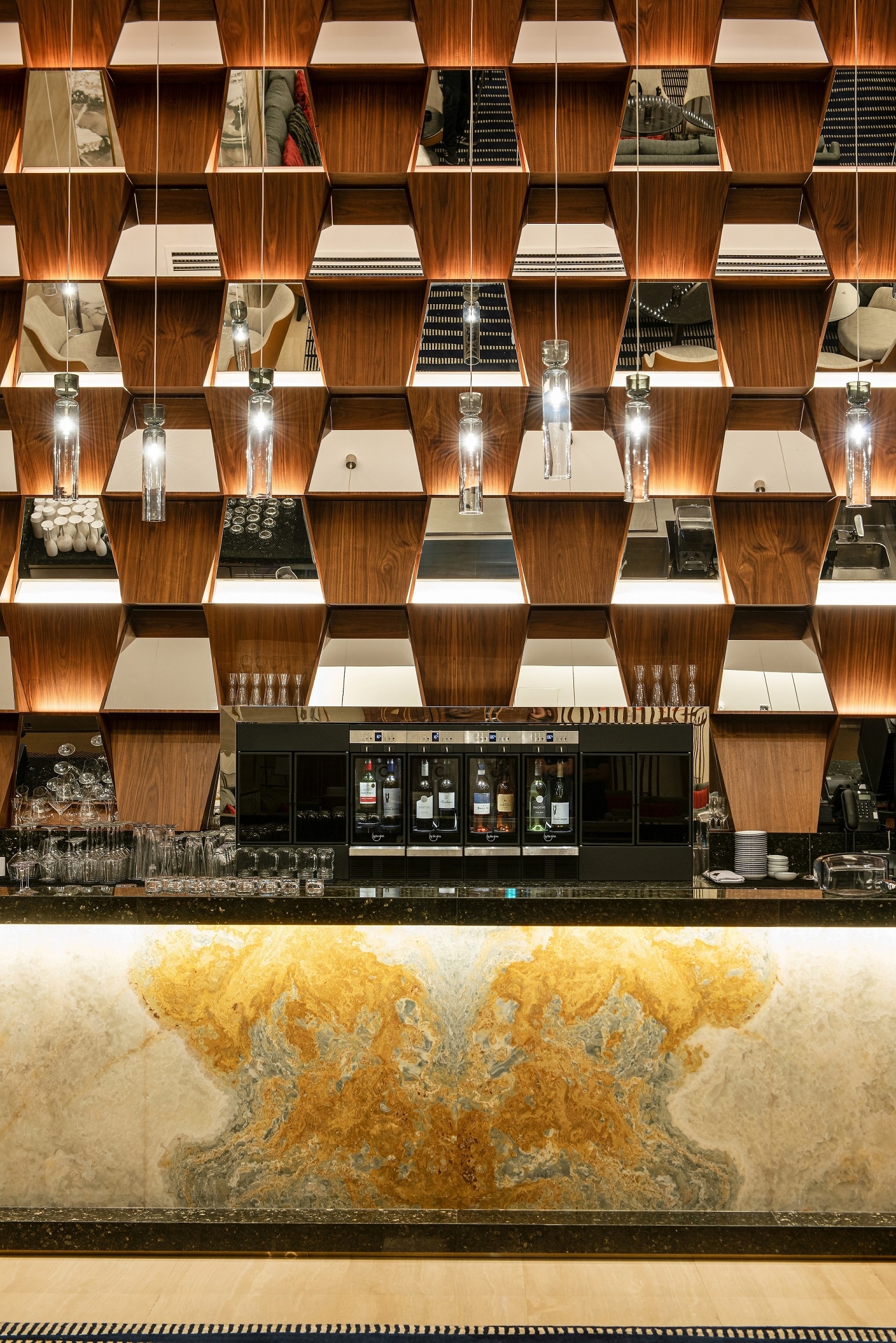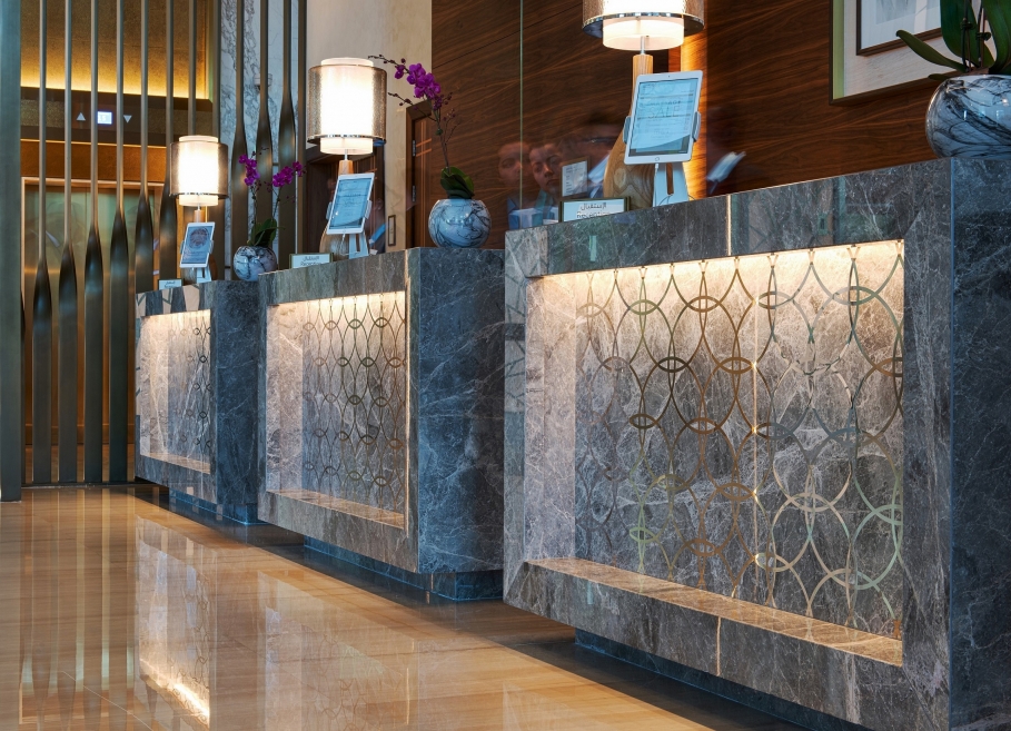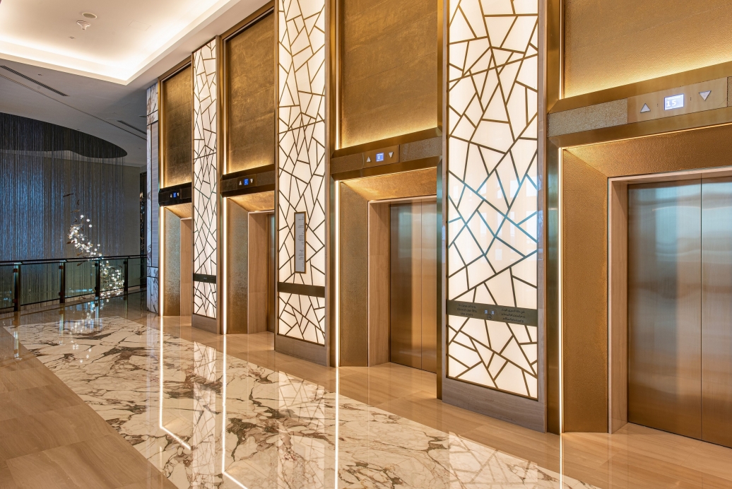 The lighting scheme delivers on each aspect of the brief, from a dynamic façade lighting scheme that stands out the architecture in a competitive location, to the automated lighting scenes that run through the interior public spaces, each considerate of the space they illuminate. The restaurants have lighting scenes to complement meal times throughout the day, lobby spaces reveal uplit screens that graze texture and materiality, lift lobbies softly glow through backlit light boxes with inlaid metalwork, and the rooftop bar comes to life in the evening through edge lit artworks, sparkling glass displays, and internally glowing onyx counters.