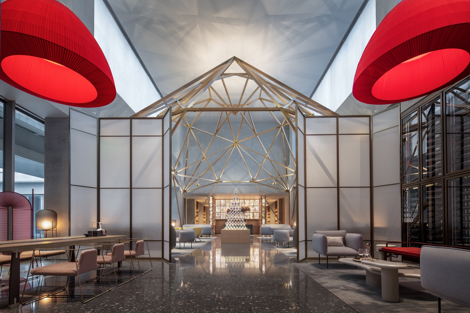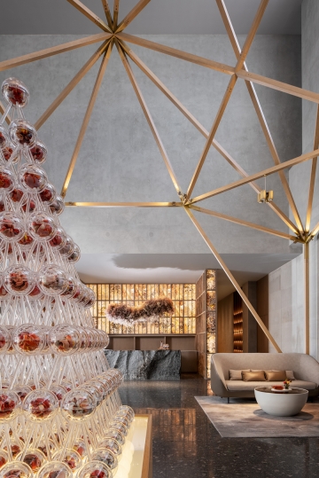 Using the concept of “vision is space”, as well as adopting the logic of “lines and surfaces” to shape the ceiling spotlights, points and lines were primarily used as embellishments or highlights, thereby generating a mild relationship between the spatial order and the user in a relaxing and comfortable manner.