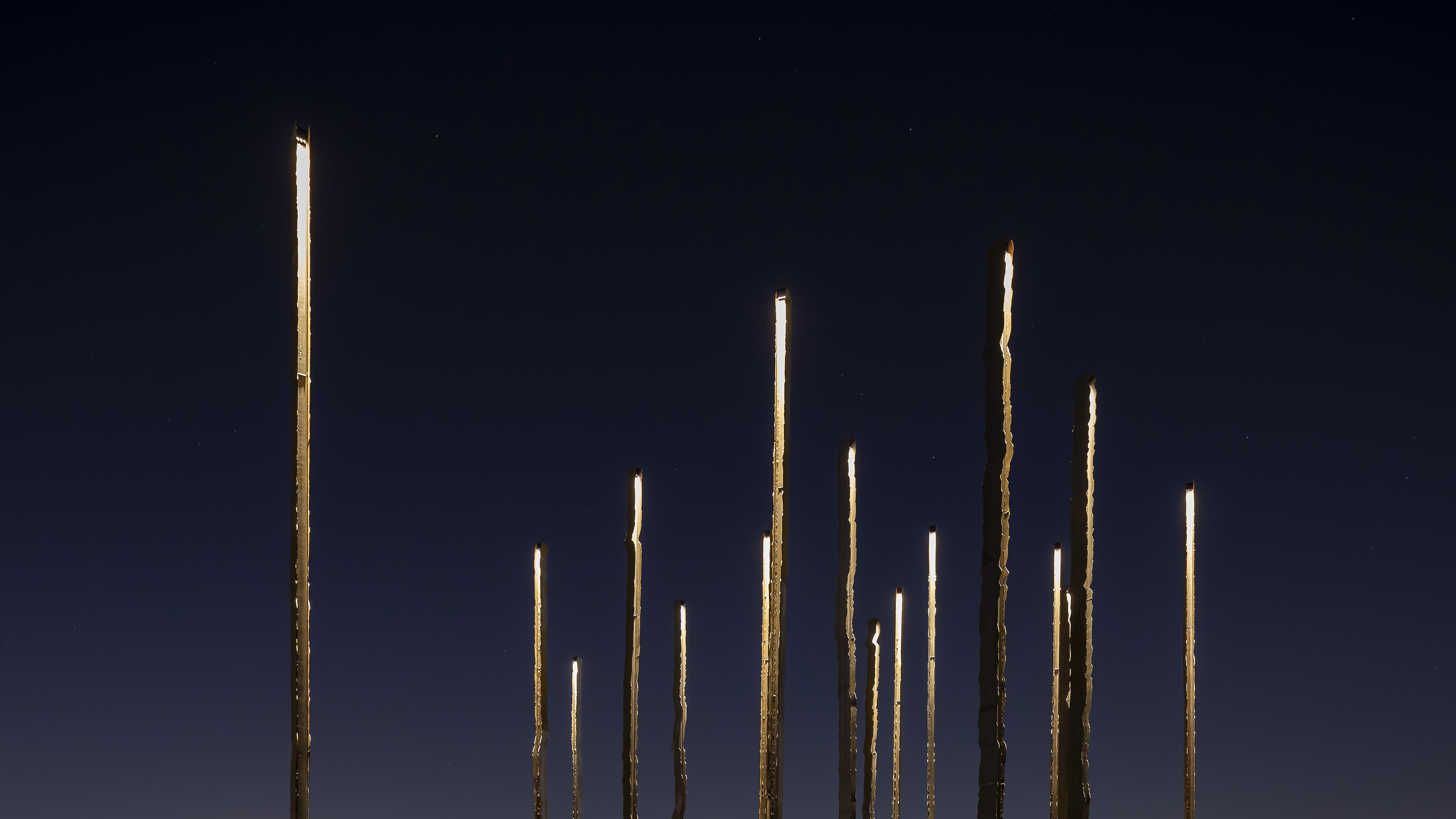 We decided to lit the structures from the top as a way to Project shadows of details of the columns on the floor and avoid any light pollution
