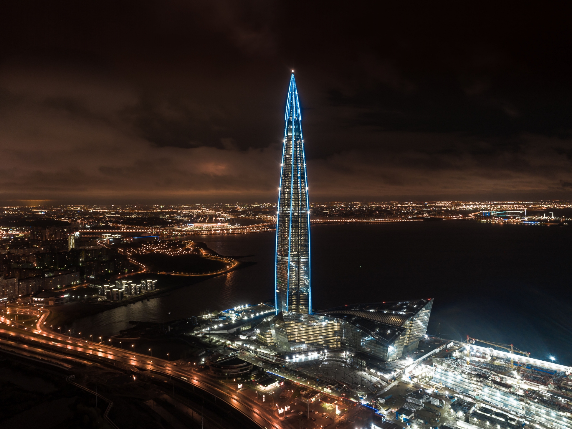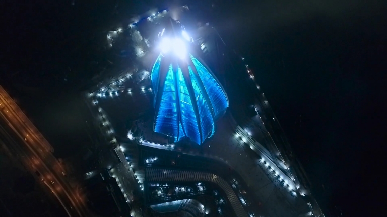 Inspired by the water crystallization process and how ice celebrates light by creating playful effects within its structure, our lighting concept corresponds to the extensive use of glass material throughout the architecture of the Lakhta Center.