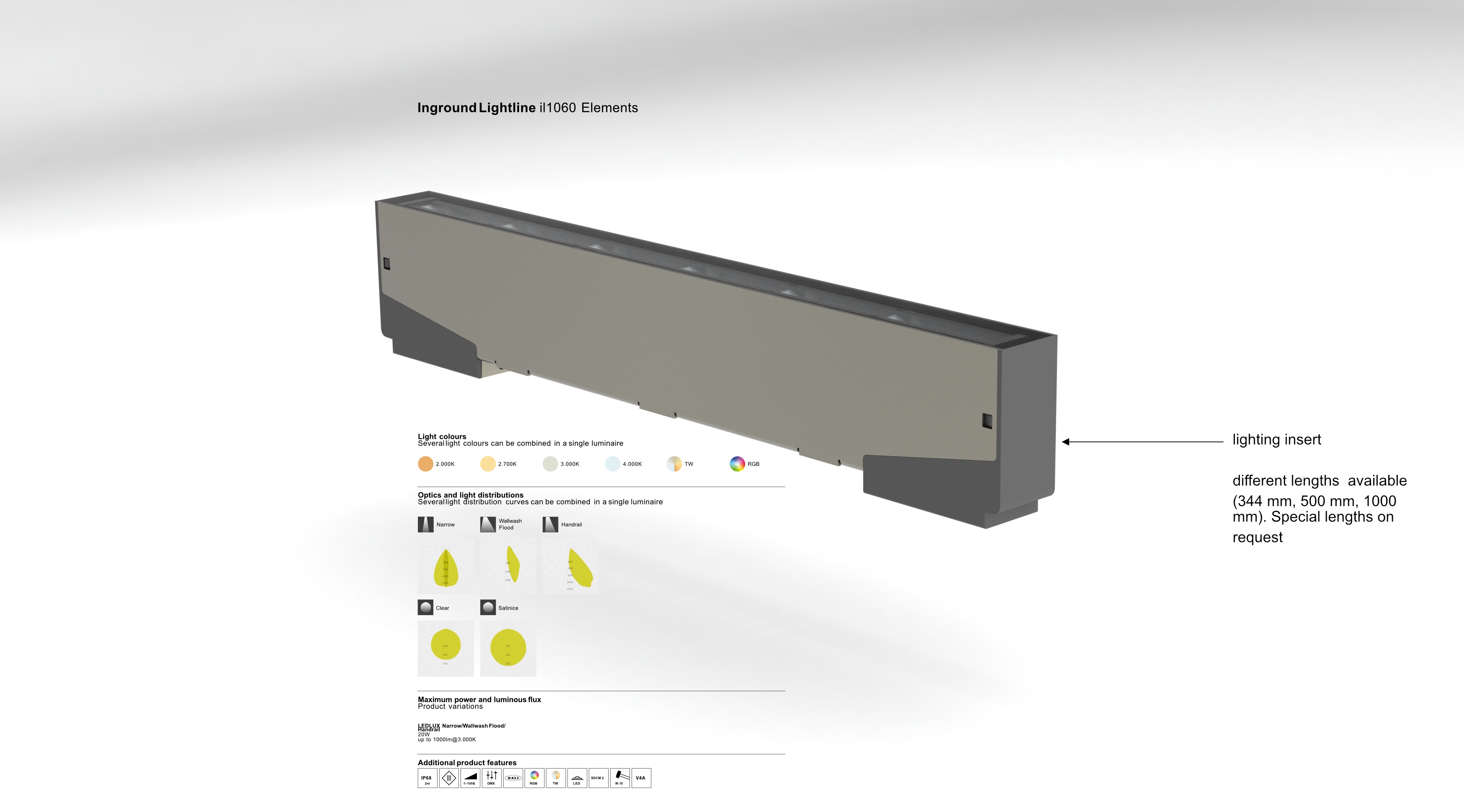 The luminaire can be supplied in all conceivable light colours