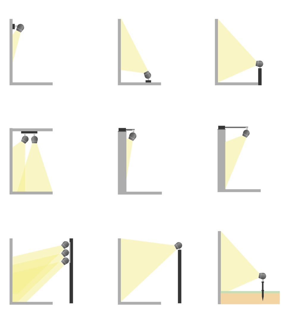 In addition, the different installation systems available have been designed to allow easy connection to the element placed at the base of the projector for wall, pole, cornice, ground applications.