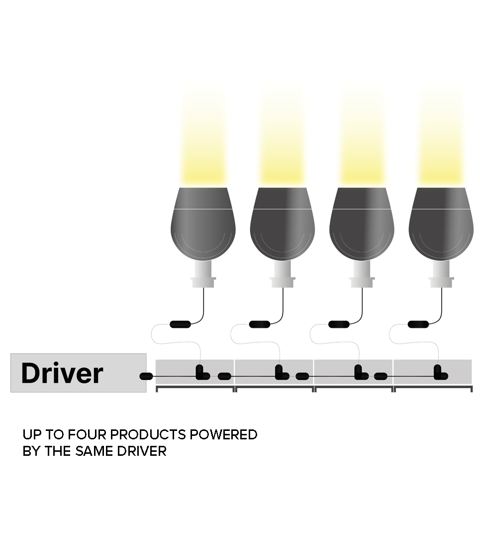 The VADER comes with your choice of a remote driver or integrated in the special hexagonal base. Up to four projectors can be powered by the same driver providing an optimal 4 to 1 projector to driver ratio. Available control systems include DALI, 0-10V, and DMX.