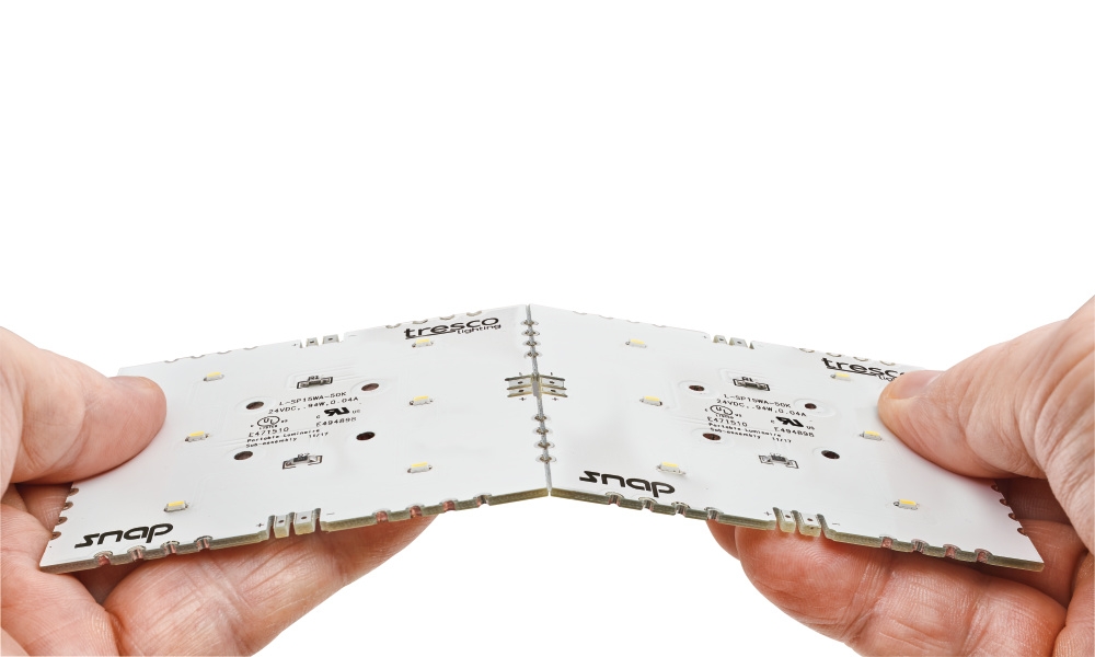 Customized lighting solutions are just a “snap” away with Tresco Lightings Snap Panel Lighting. Sold in 12” x 12” squares, the razor-thin Snap Panel can be “snapped” down to 3” x 3” squares and connected back-to-back, or via jumper cords, to perfectly create the shape you need. The Snap Panel system’s unique customization combined with high light intensity and a multitude of color temperatures provides the ideal solution for any backlighting application that requires a uniform light output.