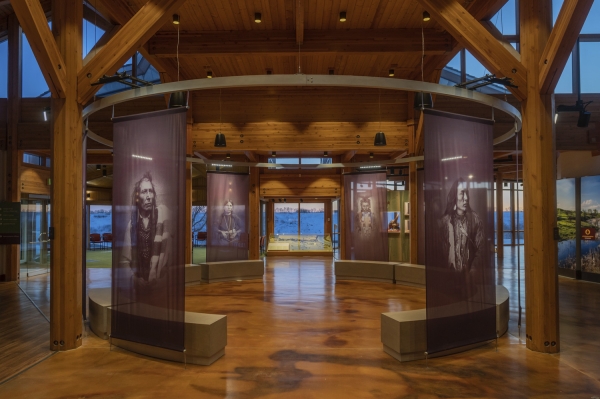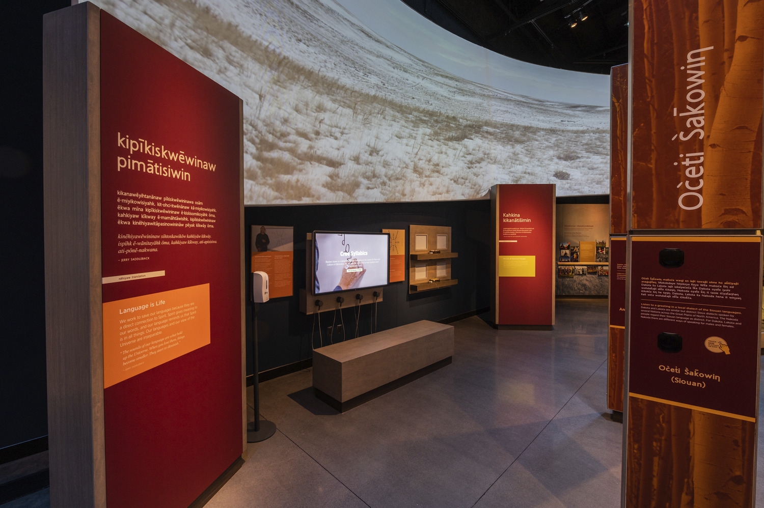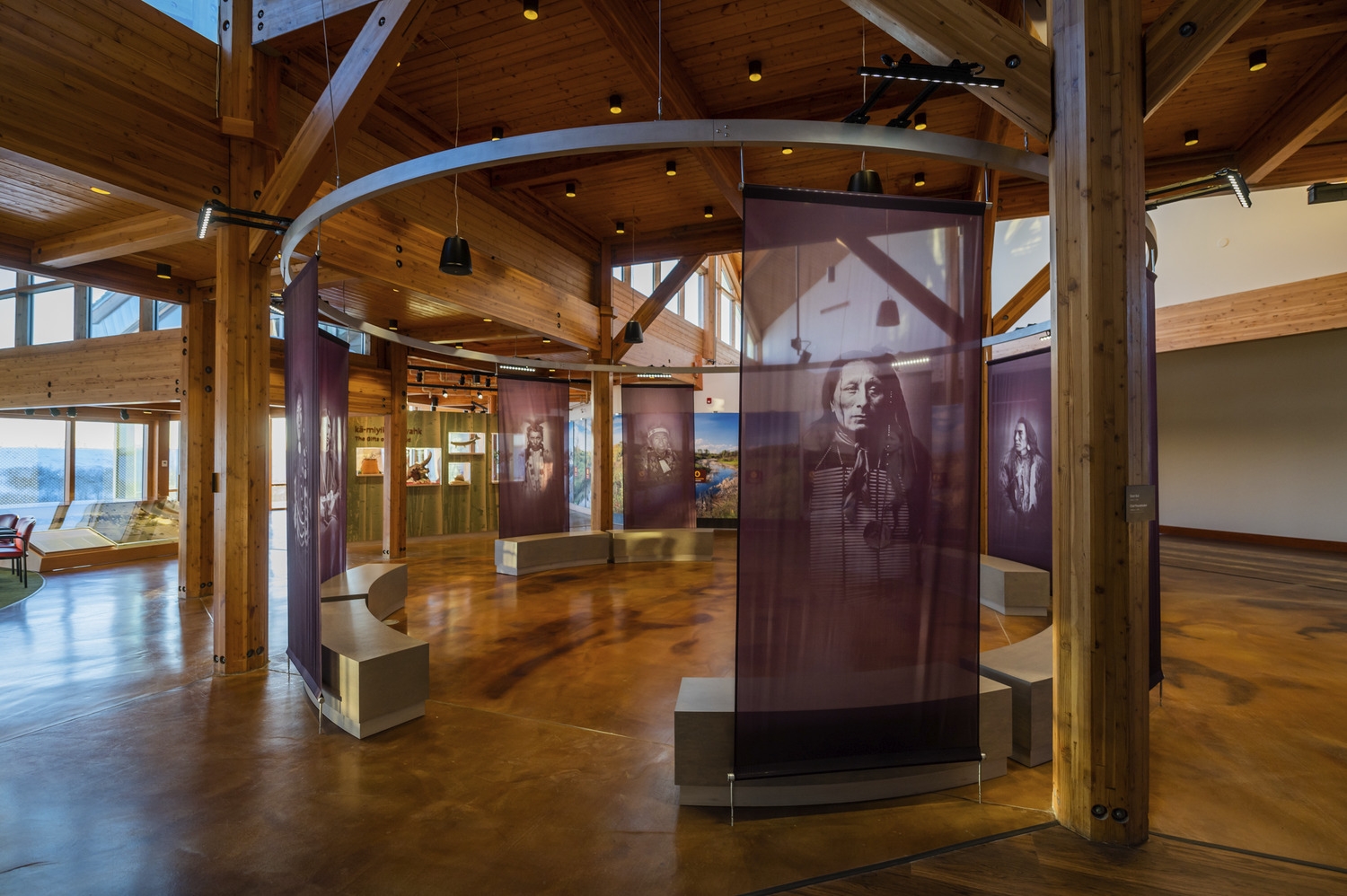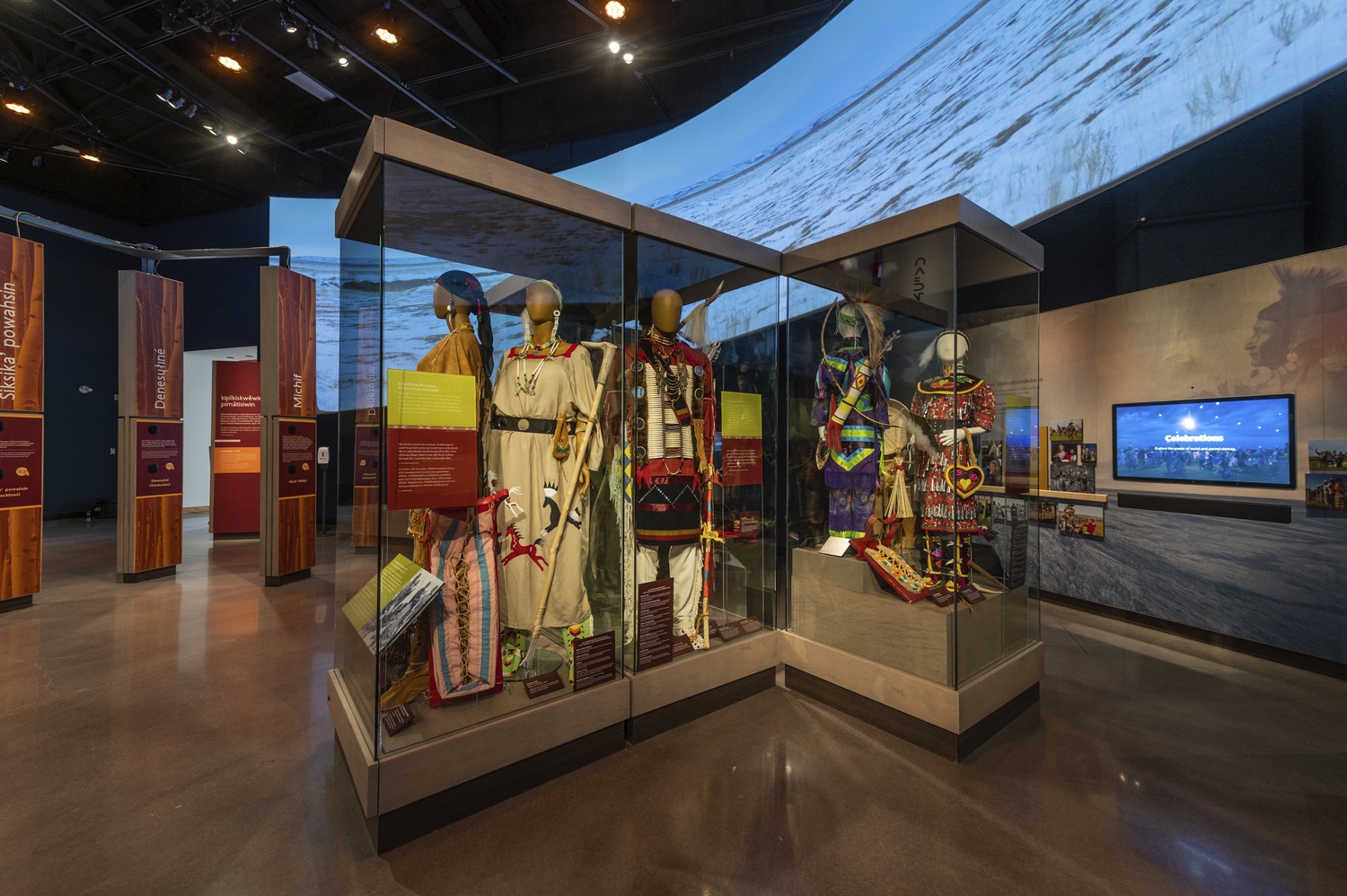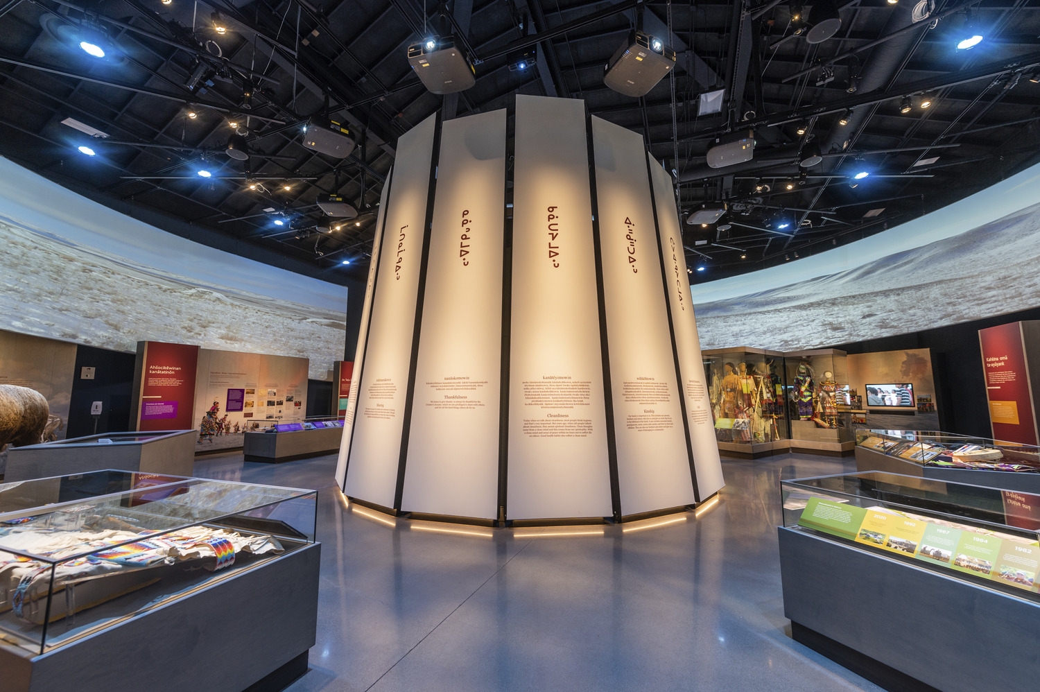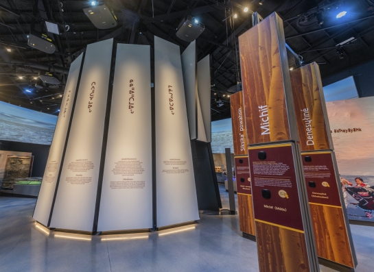 Entry DescriptionThe Wanuskewin Heritage Centre lighting was designed to accommodate two very different spaces. The lobby lighting complements daylight and accents feature exhibits. A connecting corridor to the black box gallery allows for visual adaptation between spaces. The ‘black box’ main gallery features an immersive environment with dynamic lighting synchronized to a 360o projection screen. Colour wash luminaires & pattern projectors support the media presentation and track-mounted spots accent exhibits and a stylized central structure.