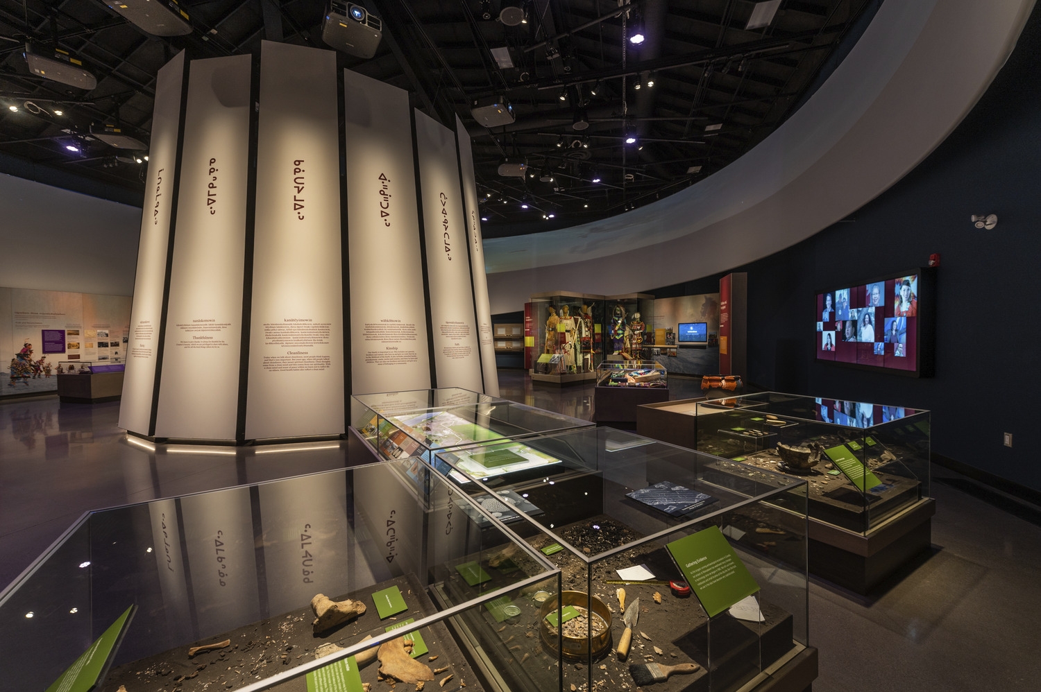 All lighting is programmed with a DMX controller and synchronized to the AV system. Illuminance levels are set to conserve sensitive artifacts. All systems are designed for low maintenance with remote monitoring and diagnostics to assist with troubleshooting and maintenance.