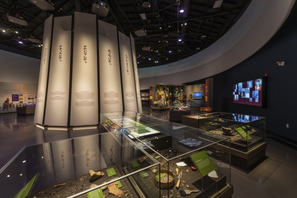 All fixtures are selected and mounted to maintain visual cut-off, eliminate glare, minimize reflections in the glass exhibit cases, and keep spill off the projection screens. Contrast ratios have been adjusted in the different gallery areas to create a visual hierarchy appropriate to each space.