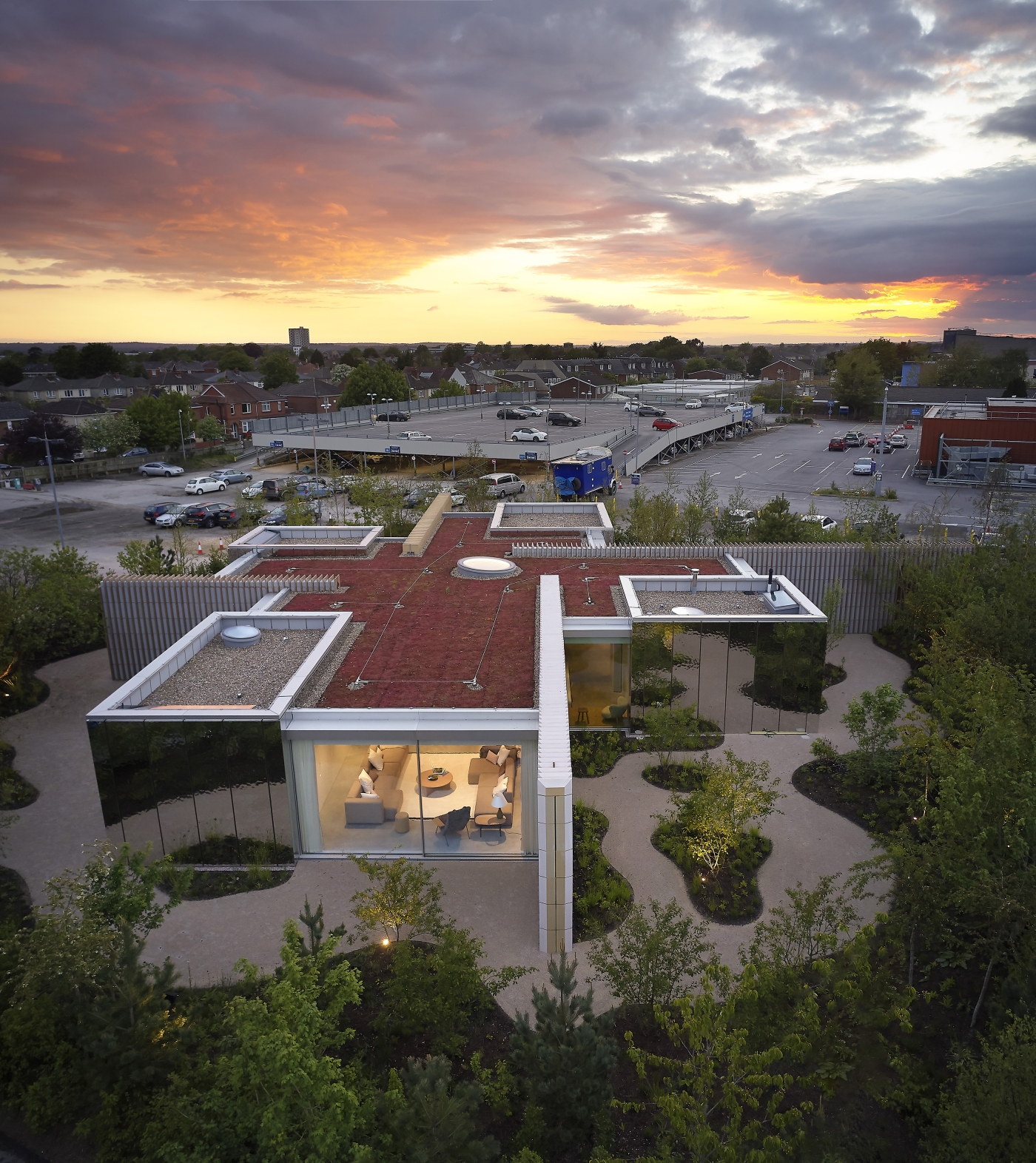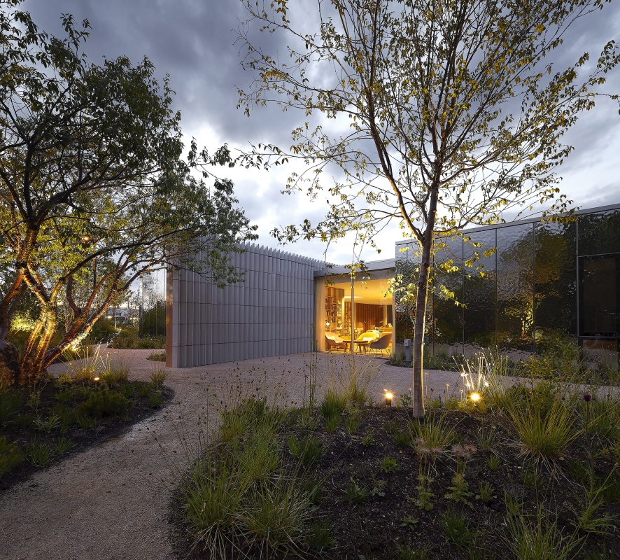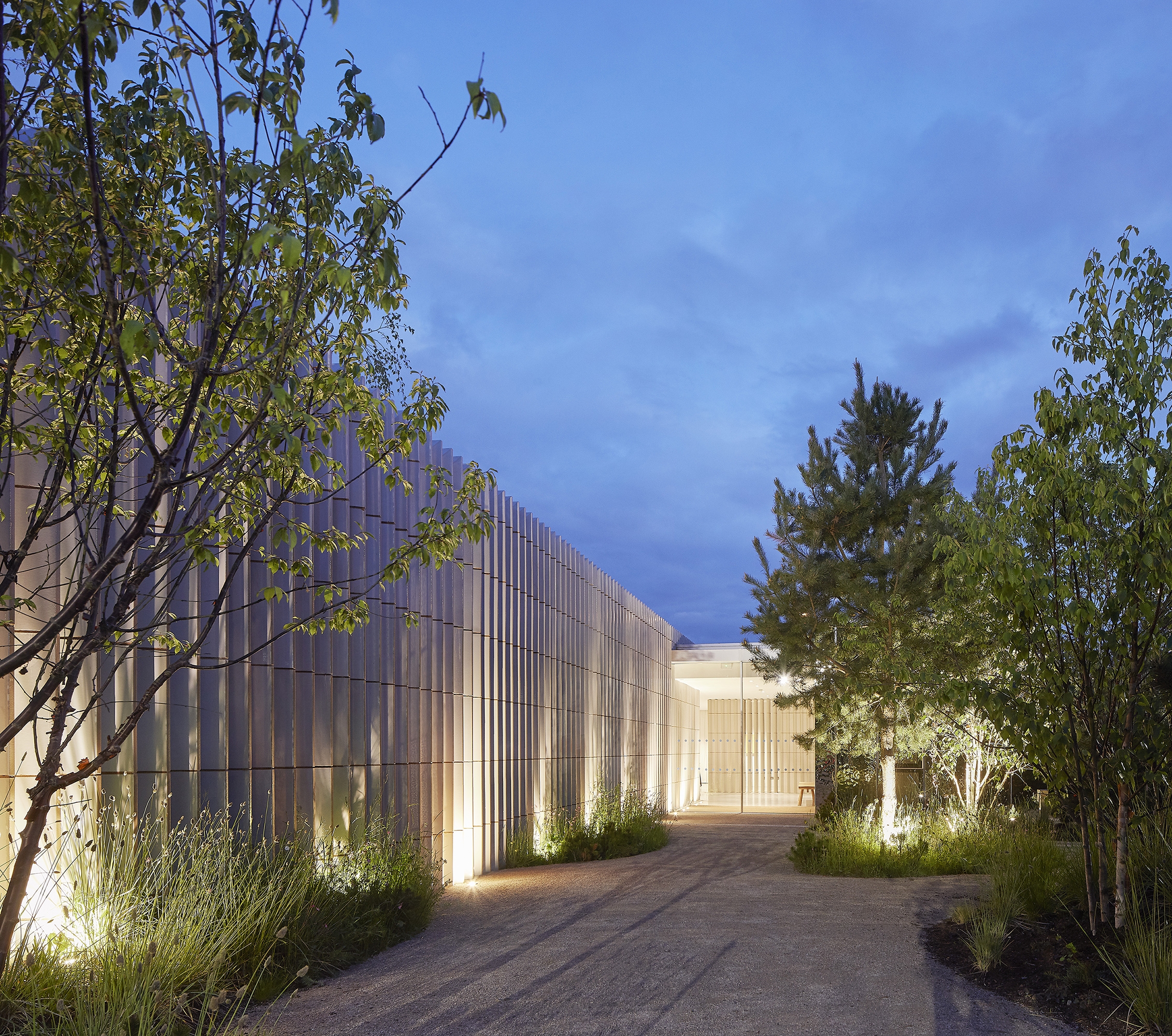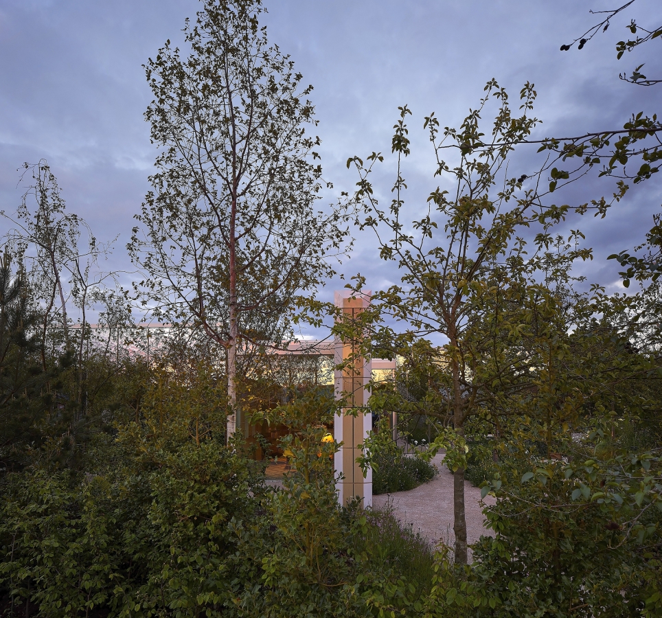 Inspired by the New Forest, Southampton’s Maggies is enveloped by a beautiful garden reflected in the building’s carefully selected finishes and materials. The light filled building emerges from the gardens like a lantern at night. Outdoor lighting creates a play of shadows and dappled light as it would be in the forest.
