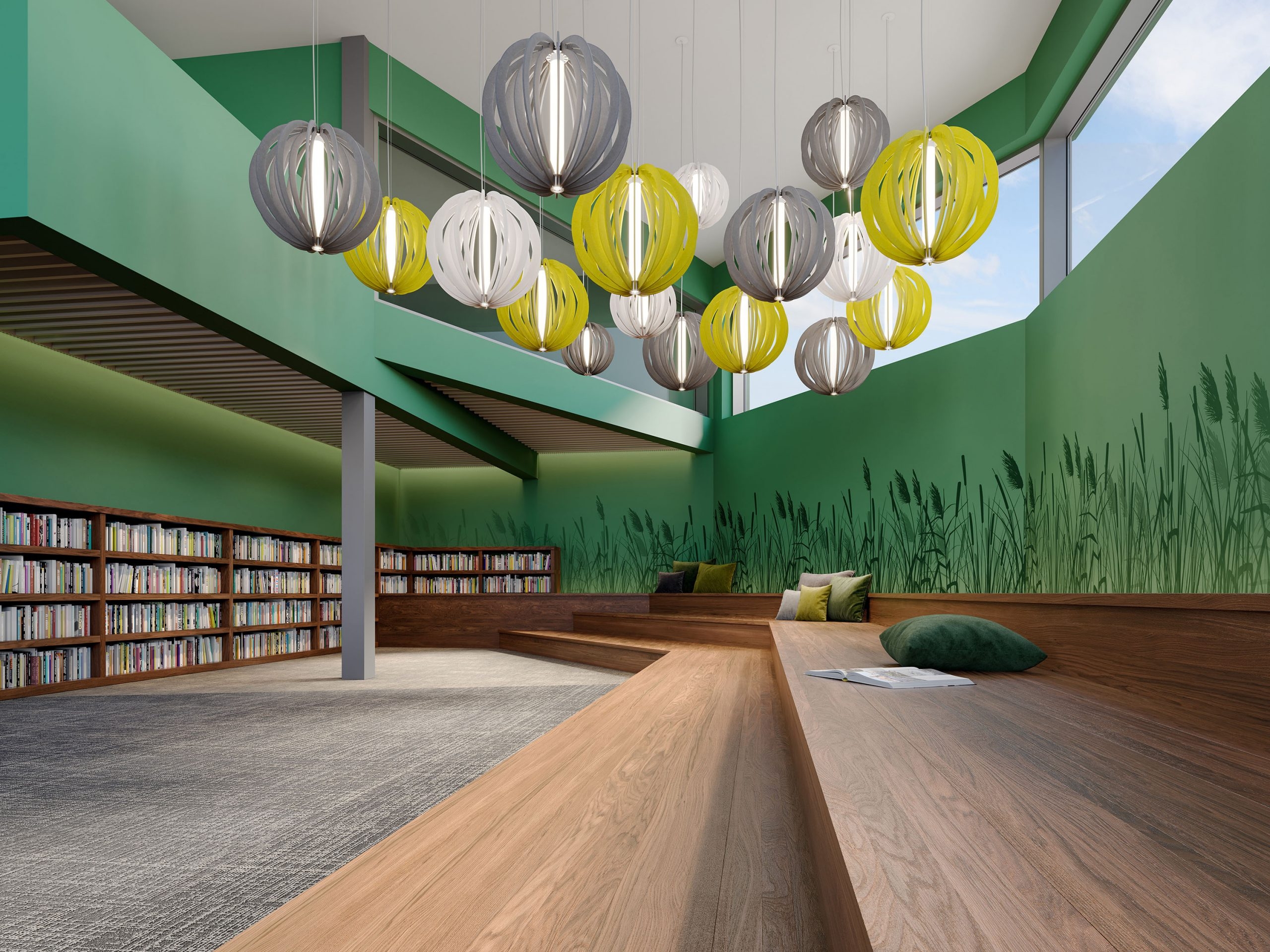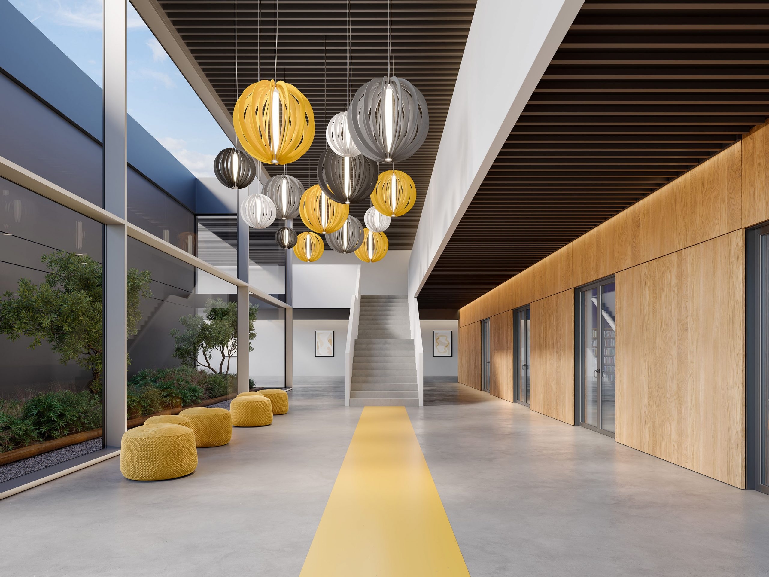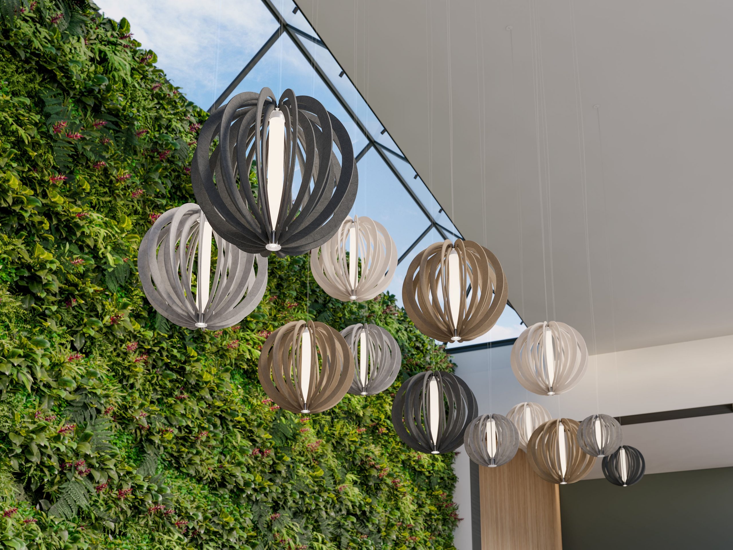 Make a major design statement in large scale space with ambitious, sweeping clusters and installations. Control sound reverberation in smaller spaces such as private offices, small conference rooms, sitting areas, phone booths, meeting pods or walkways