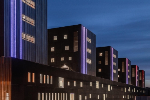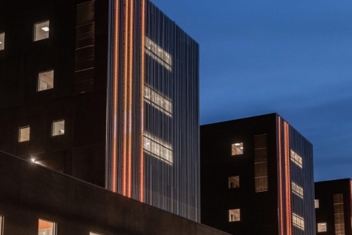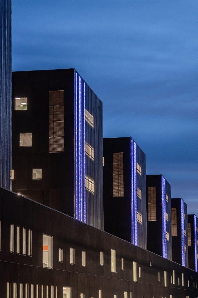 LDC designed a calm solution for the landmark metallic façade. The expression is powerful without being a full size high resolution media façade. The aim was to able to express themes derived from Finnish nature together with communicative purposes or special events and seasonal changes. The challenge was to make the expression as minimalistic as possible but with enough capacity to create soft patterns and shapes, not just RGB colour play.