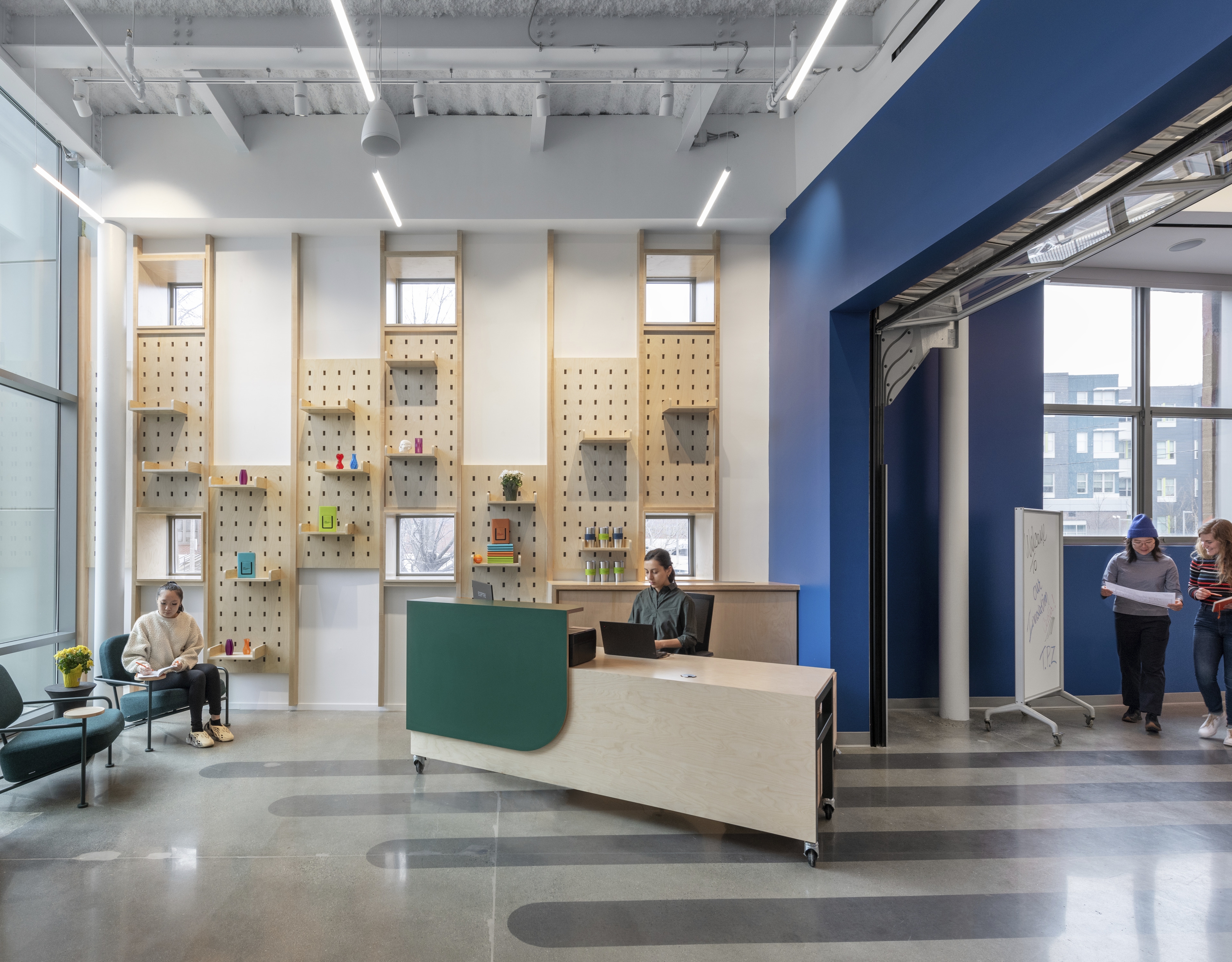 Entry DescriptionThis adaptive reuse project in Jamaica Plain’s Jackson Square, comprised of a historic, 1890 brick building with a late 1990s-era addition, is the new home for the non-profit The Possible Zone – dedicated to advancing equity through youth entrepreneurship, education, and career opportunities.