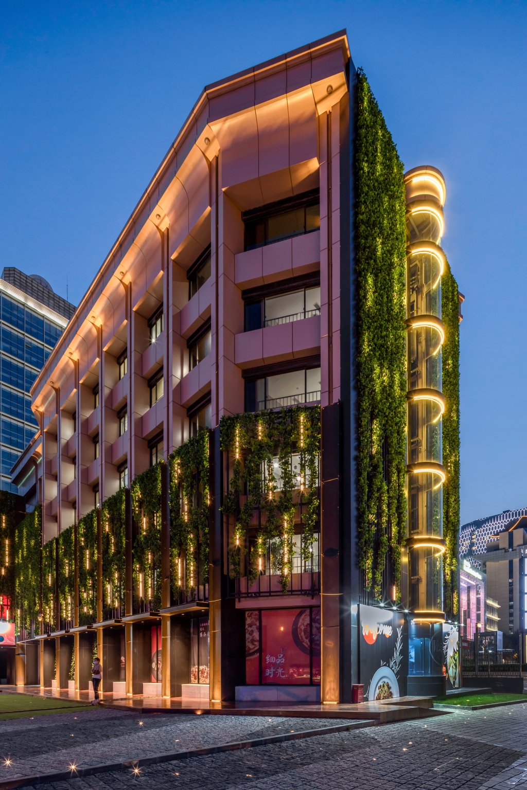 The urban-renewal project repurposes the supportive business functions of main hotel building and its auxiliary buildings to form a small-scale, functionally complementary business complex.