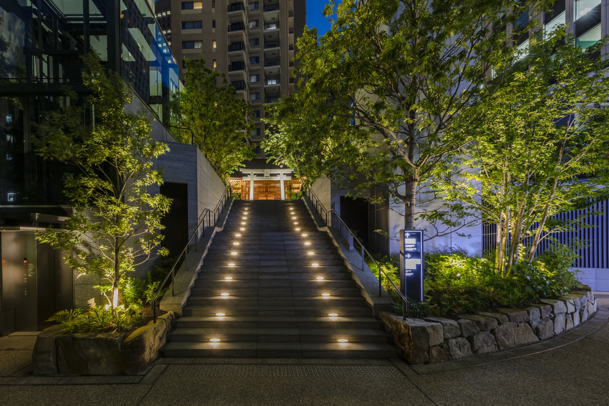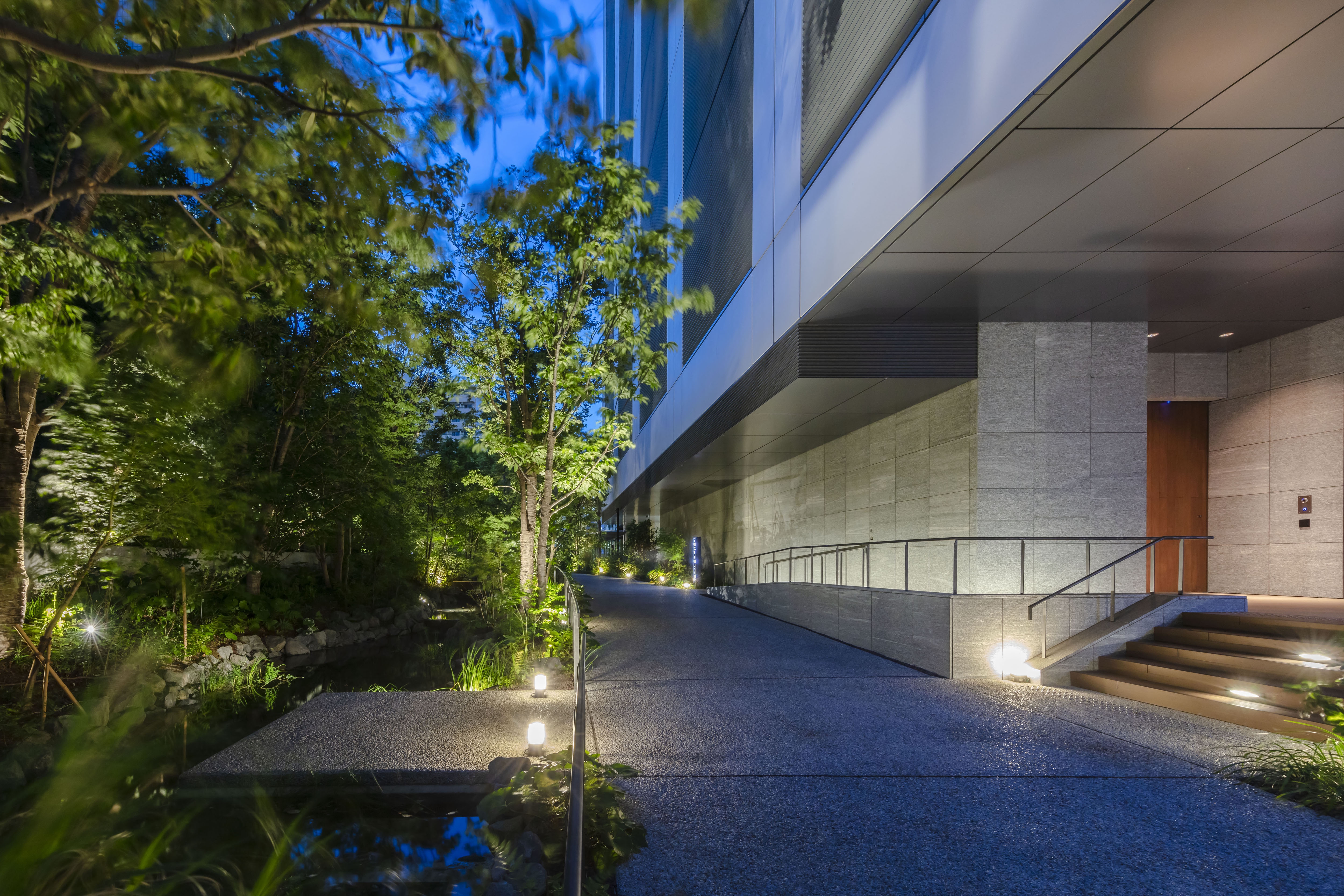 First, was ‘harmony'. The upper floors are a hotel, thus light leaking from the windows was likely to be warm-colored. The facade lighting was based on warm-colored light. We also carefully considered the harmony with the color of the exterior materials.