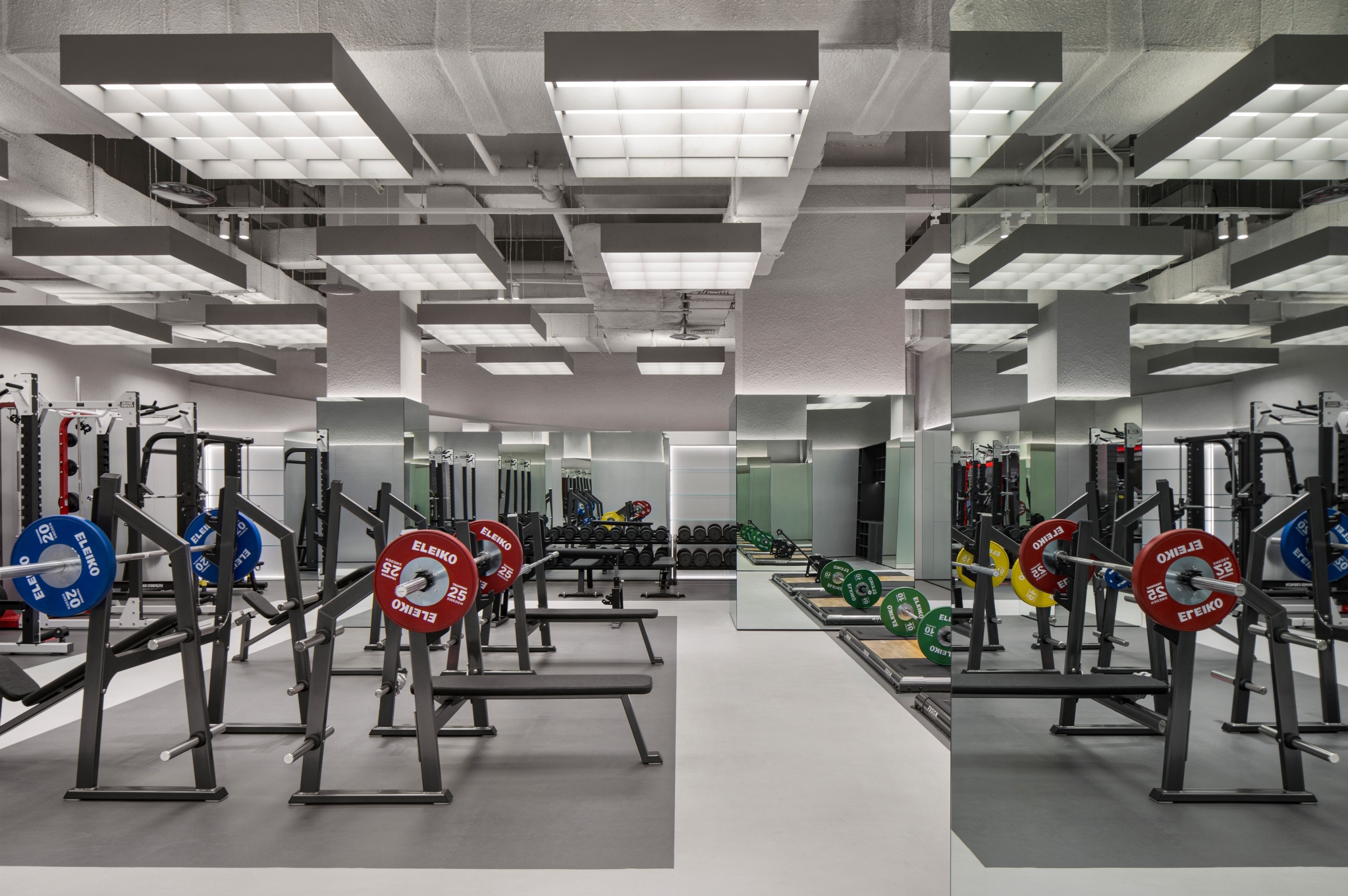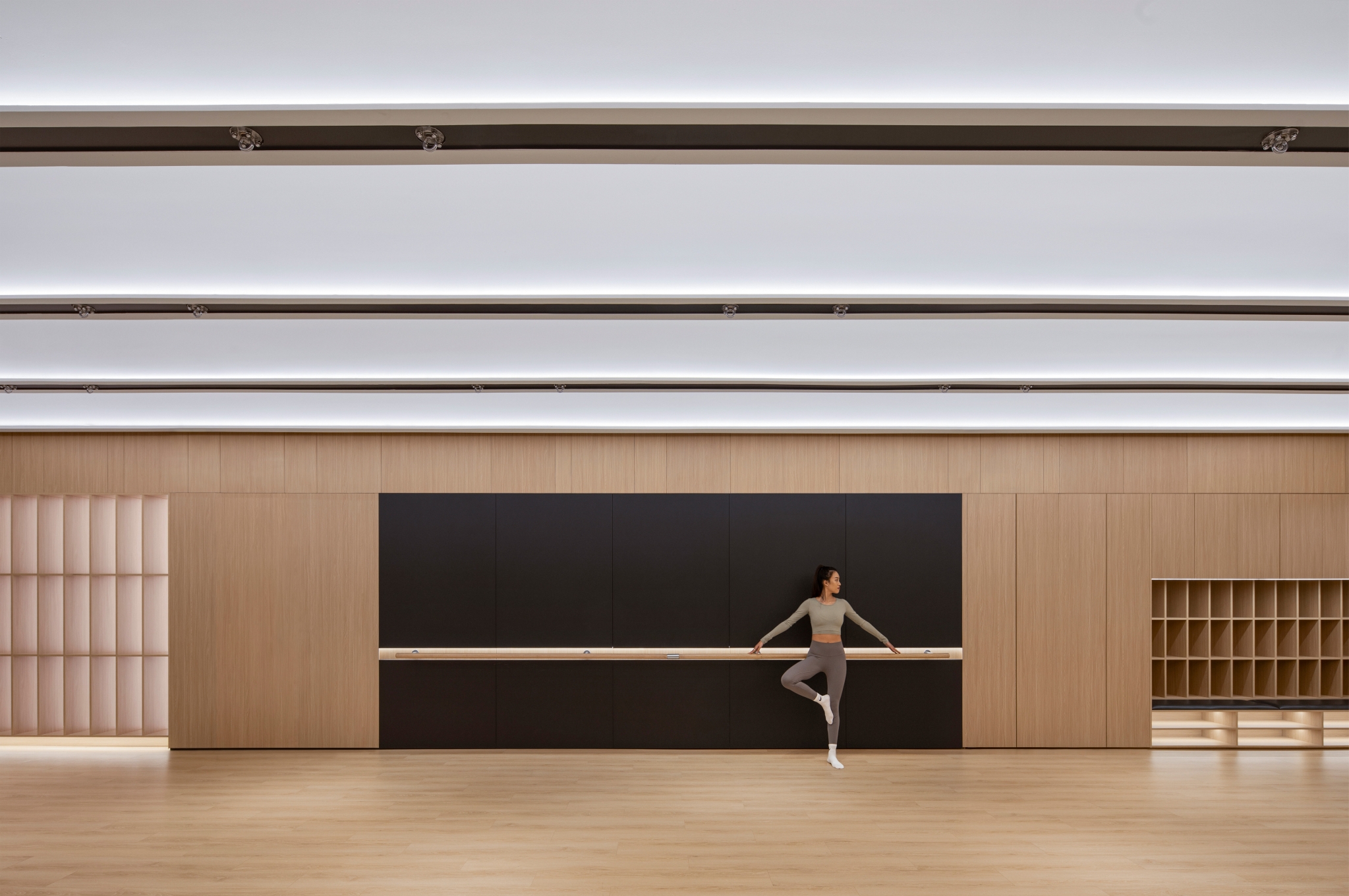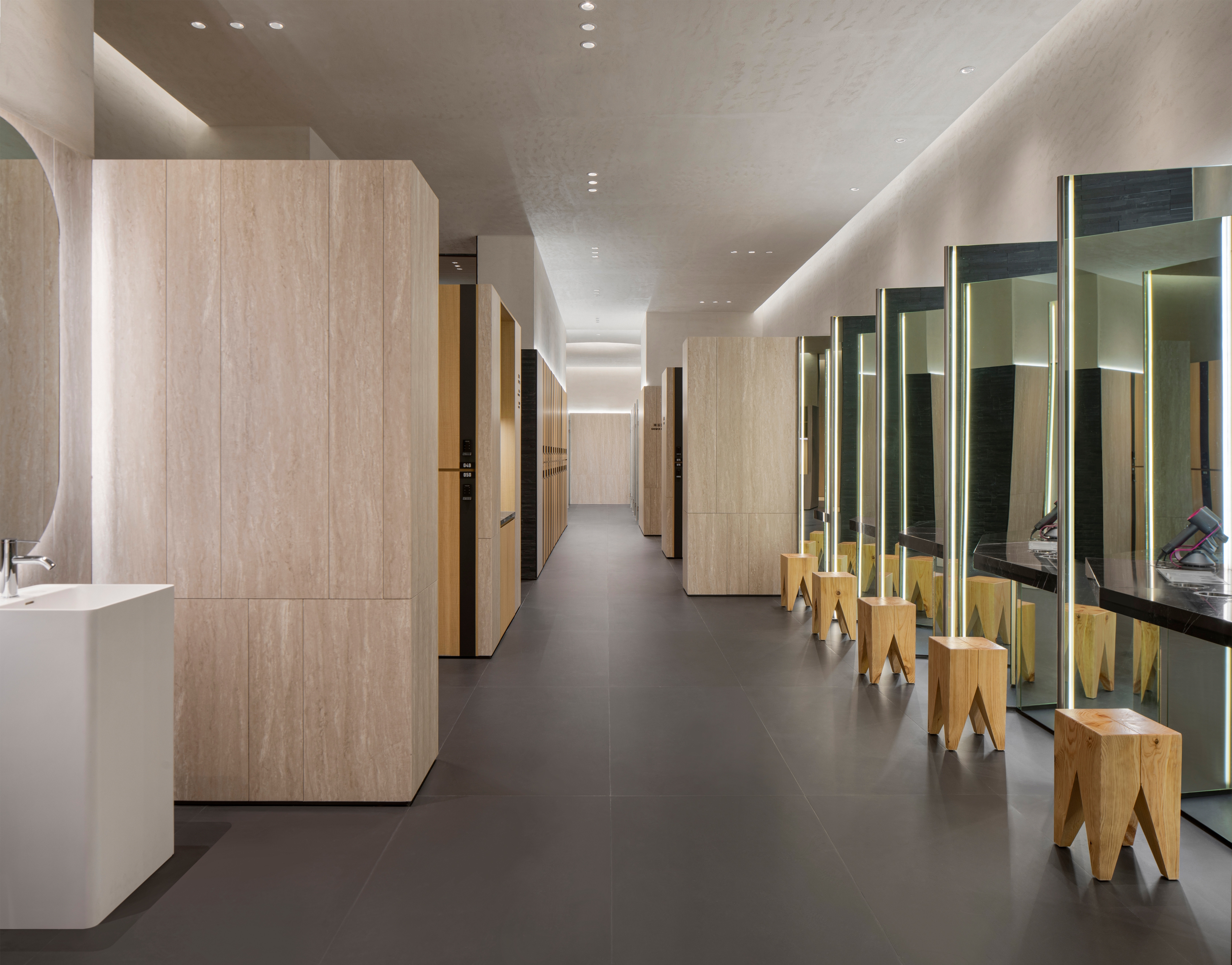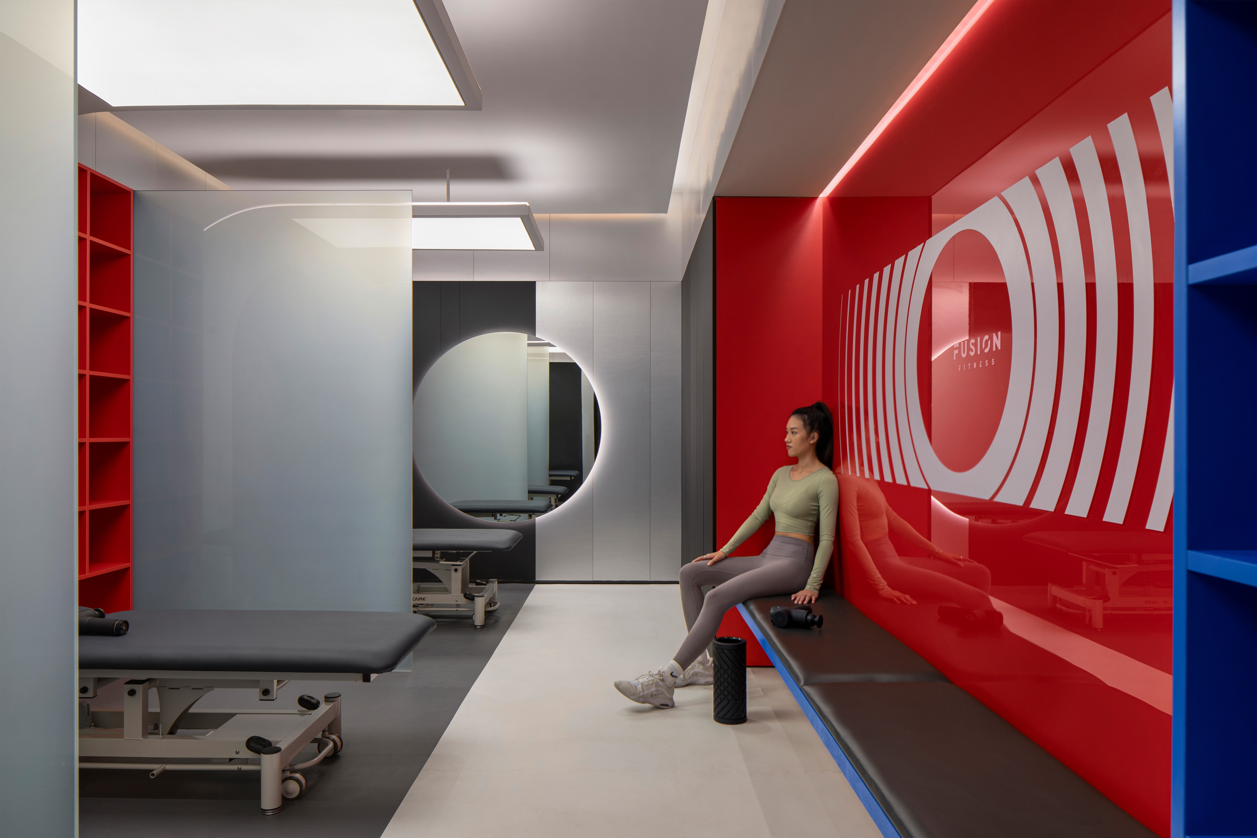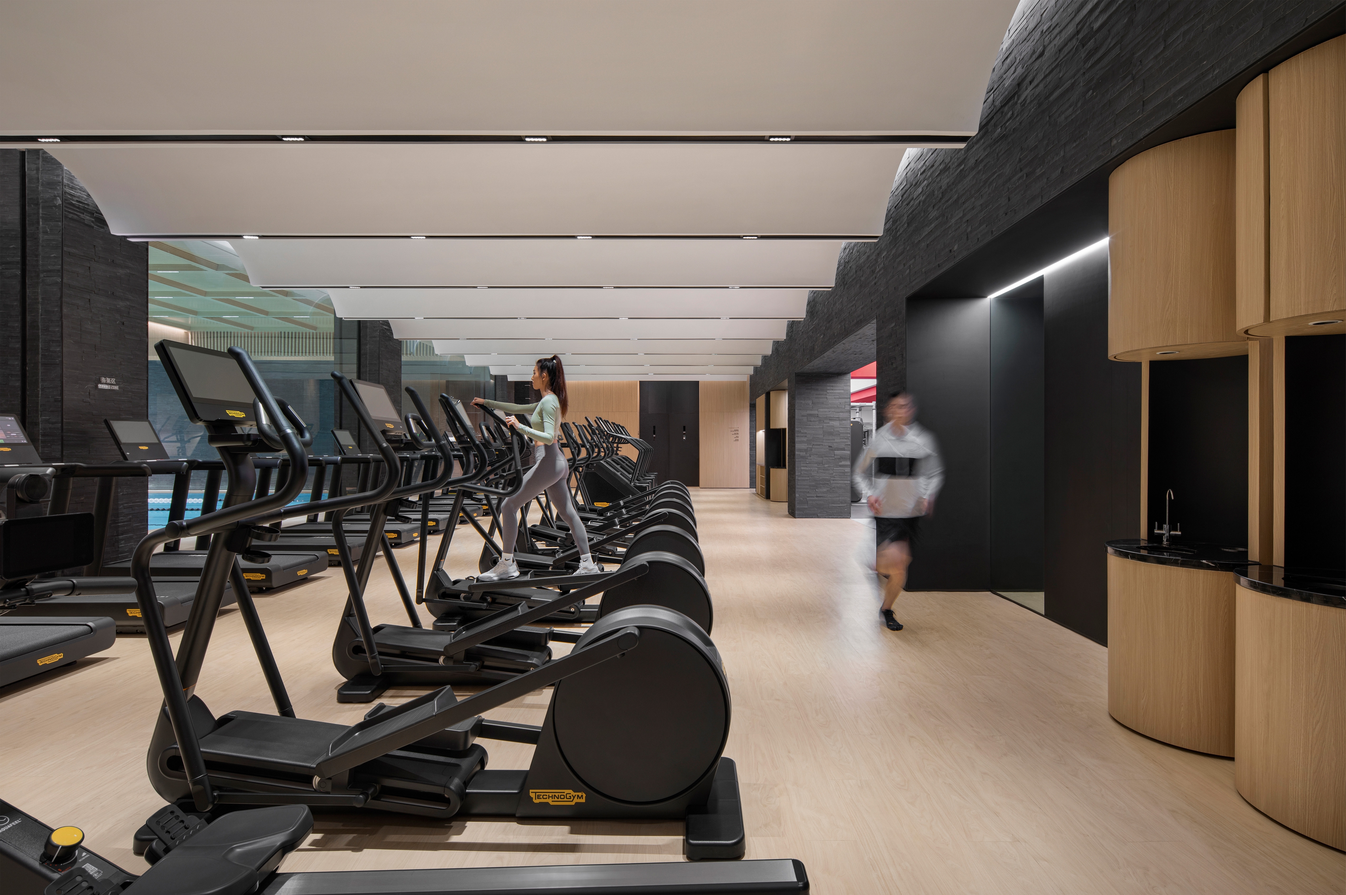 The Fusion Fitness is a modern fitness brand that combines light installations and interior design to bring unique experiences to its members.In each space the interior design, lighting and acoustics have been carefully designed to match the activity of the space.The interior design uses natural wood finishes in the static zone to promote calmness and the lighting is soft and even to promote light and open feeling.The "skylight" grid installation is a tribute to the James Terrell’s seamless light spaces,which provides a healthy lighting method that is close to natural skylight.