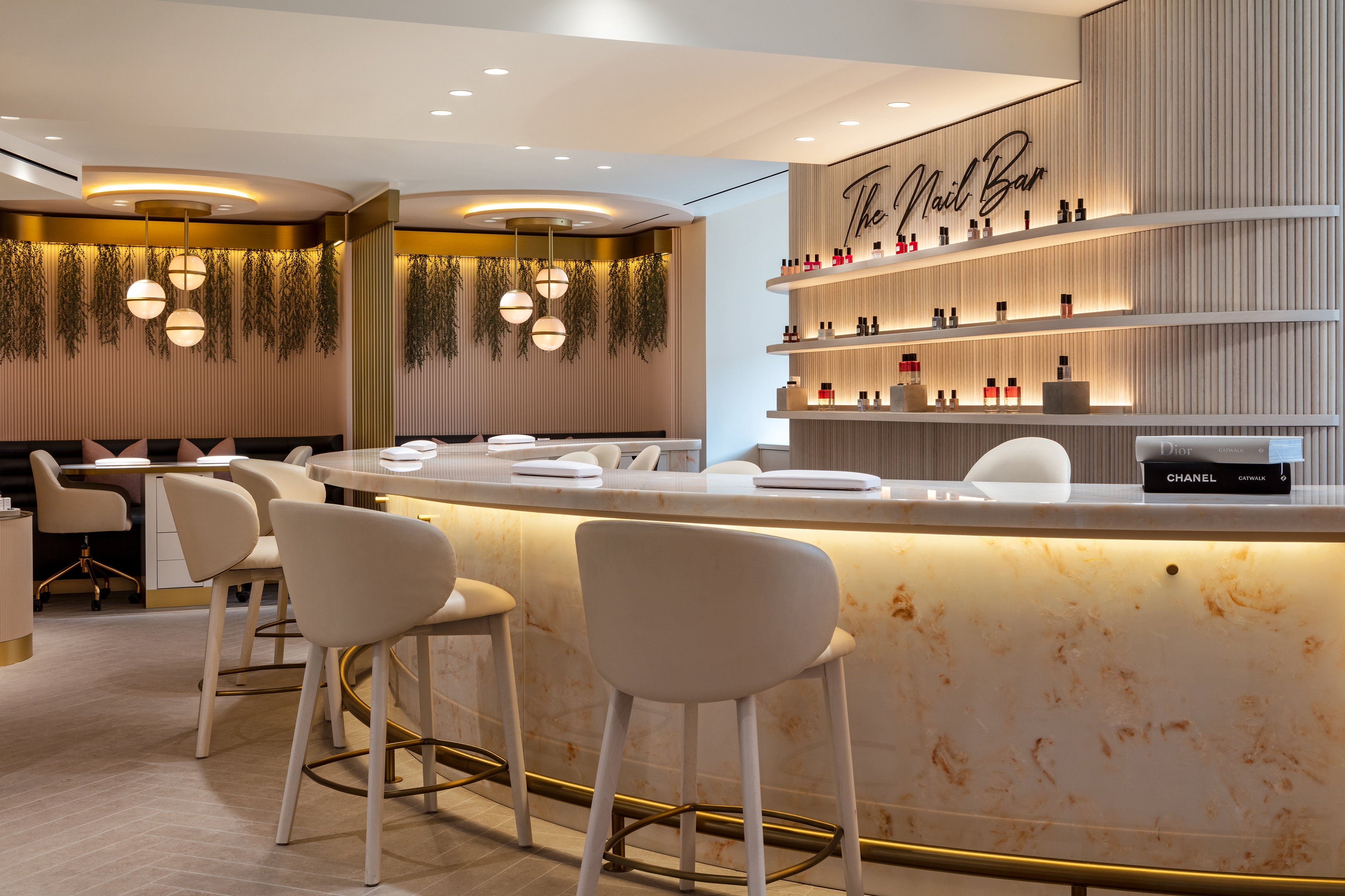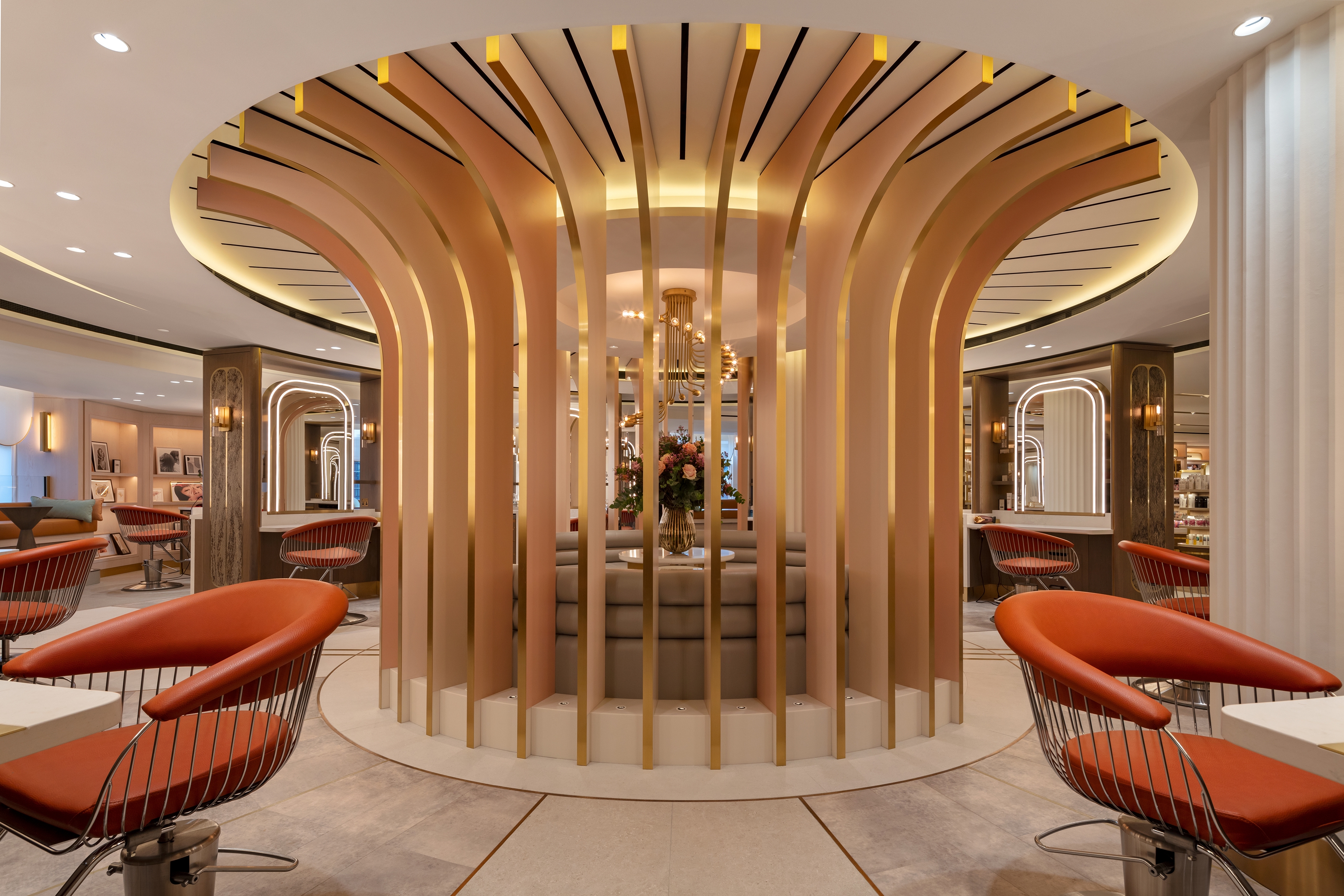 Entry DescriptionThe lighting scheme for Harrods Hair & Beauty flows with the architecture, highlighting features and expressing organic forms to create soft and harmonious light filled spaces. It was important for the ambient lighting to be warm, concealed and integrated to give the spaces a relaxing spa or members club atmosphere. Each space had its own unique brief from a functional and use aspect, with all spaces needing to embody the same identity and project character. Three colour temperatures of light are blended to achieve ambiance, colour rendering and functional goals seamlessly without visitor awareness.