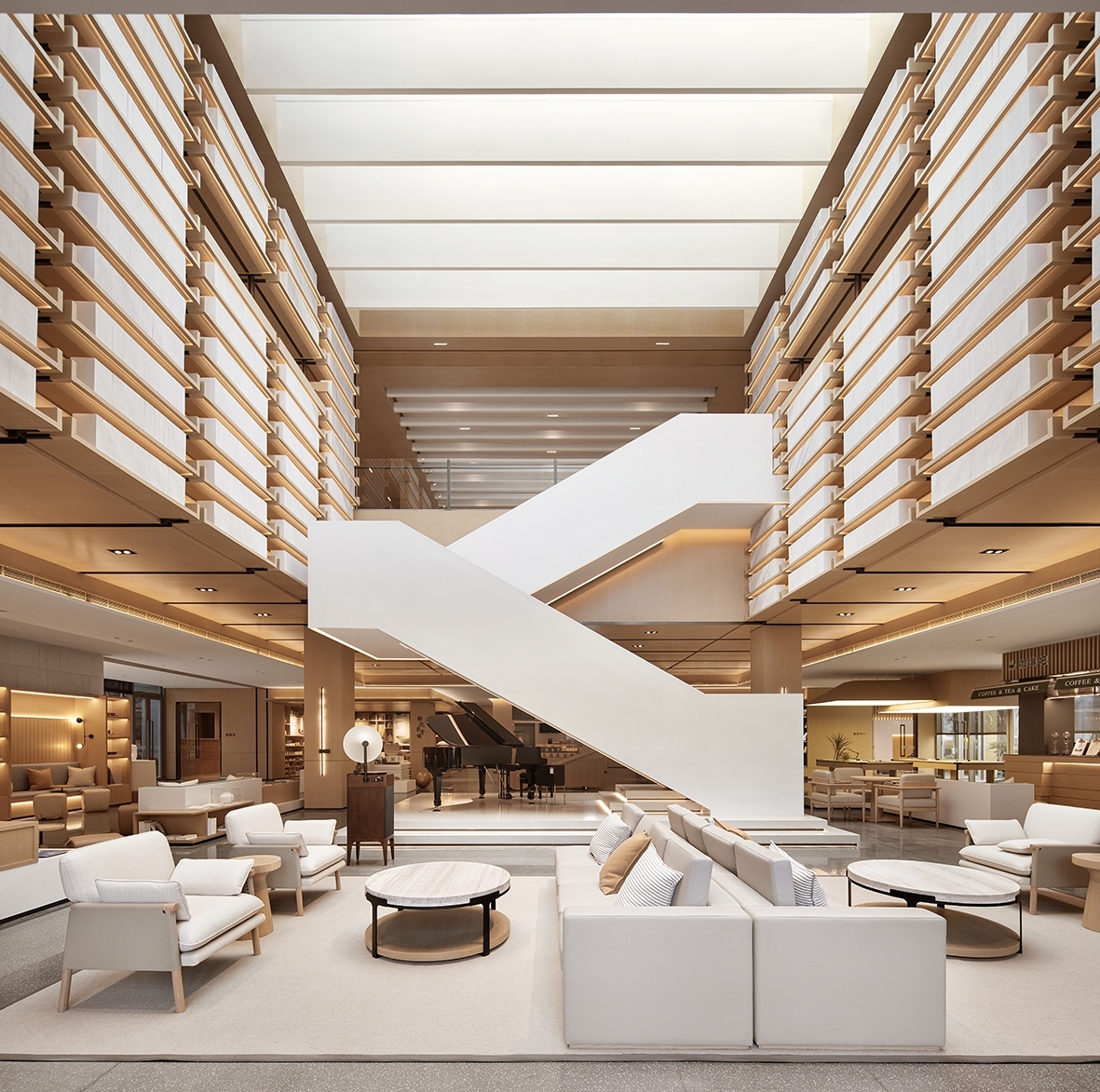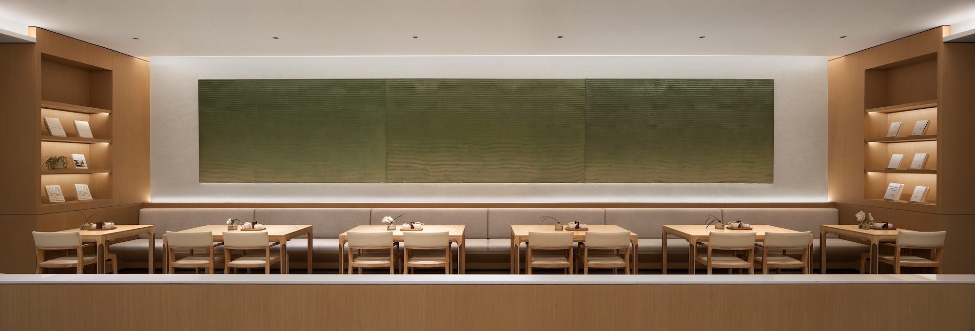 5)Using warm white light for lighting (3000 K) in consideration of the interior materials and ambiance.