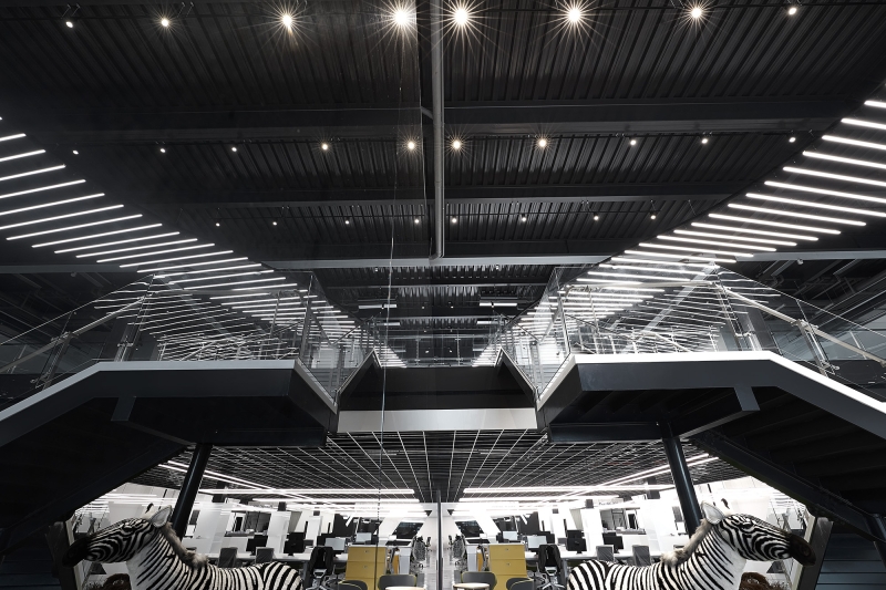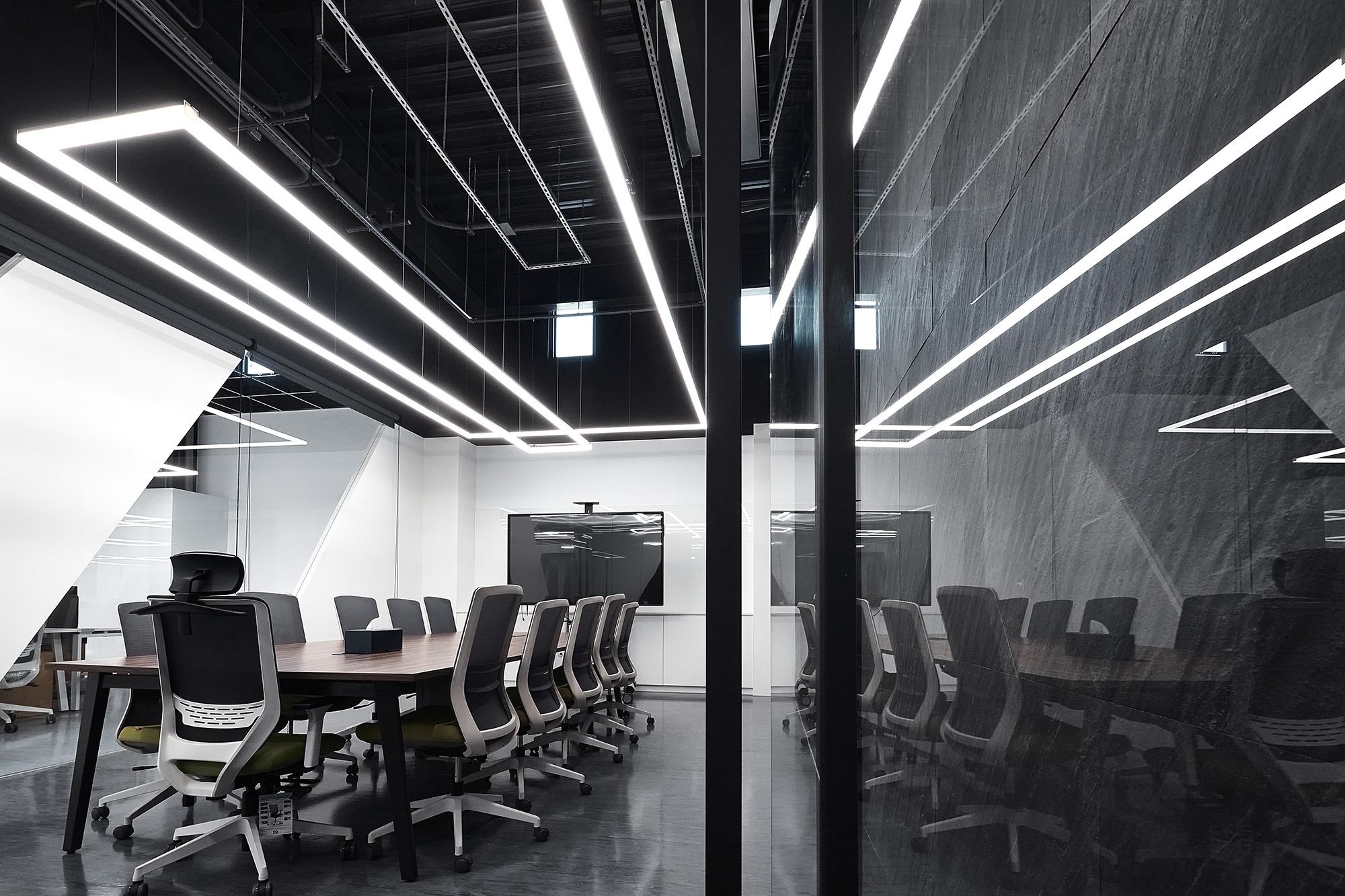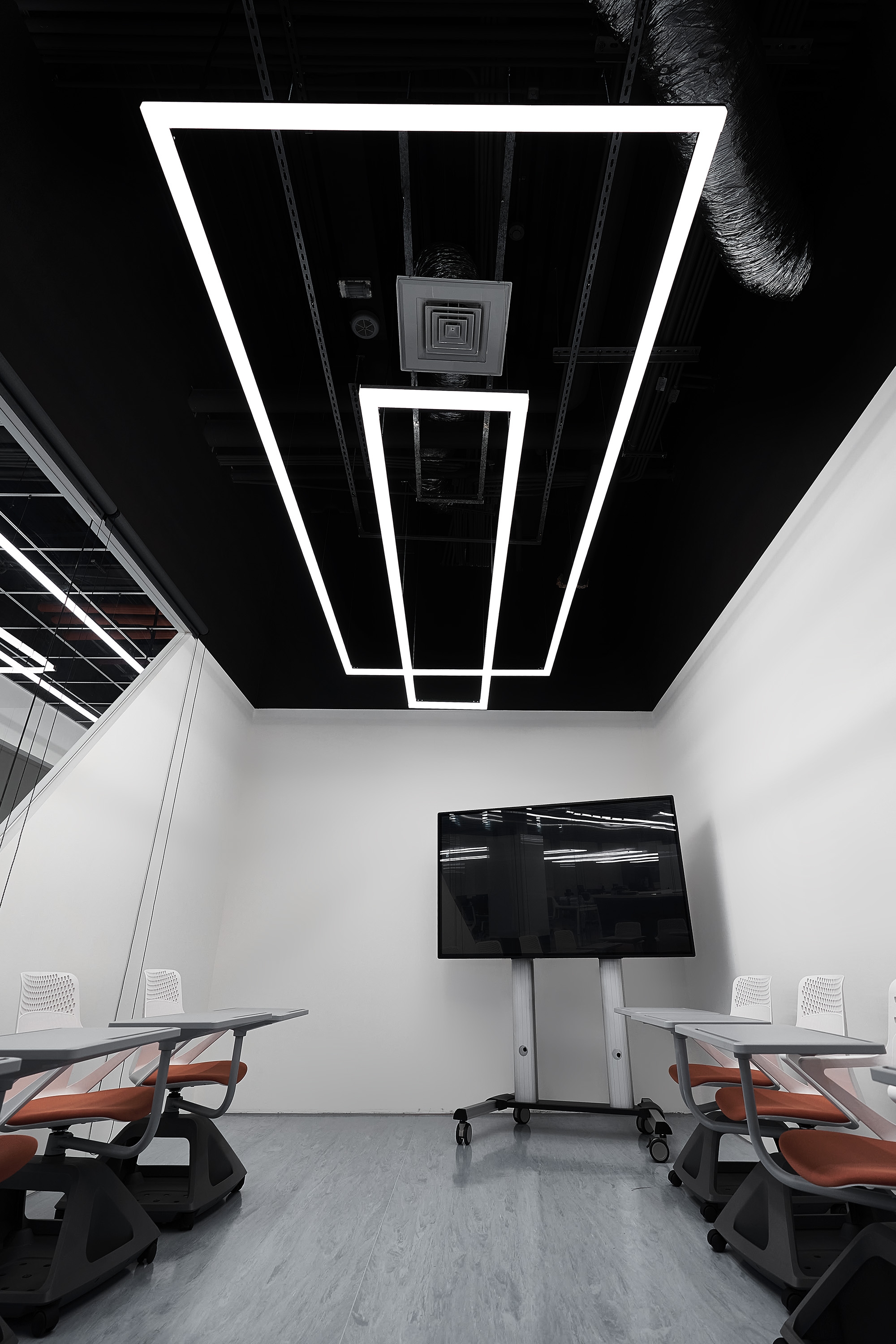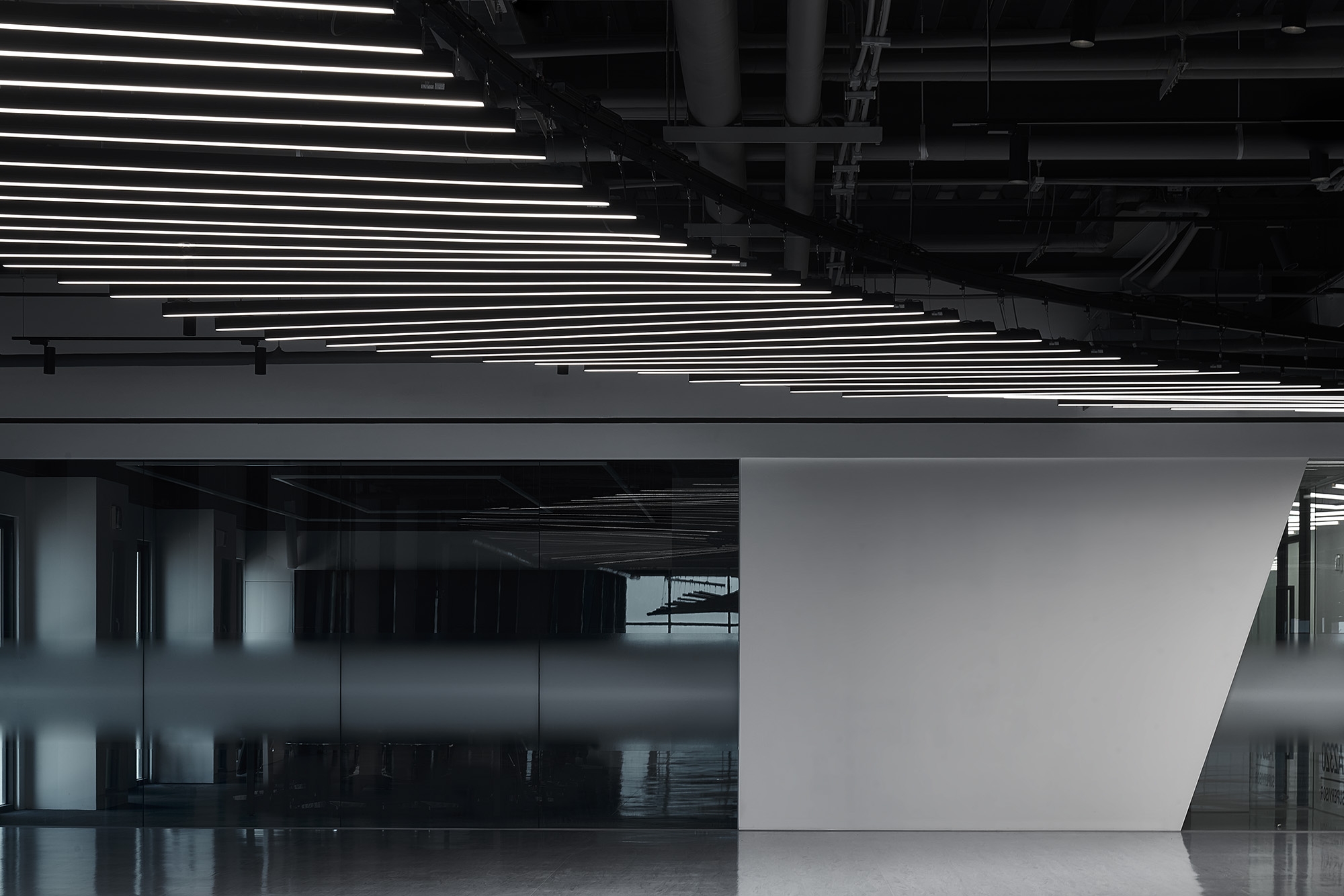 The 60-meter-long river is used as the main focus of the lighting design and is installed on the ceiling, creating a sense of three-dimensionality, dynamics, and layers. Through a simple and delicate linear arrangement of light pipes and a three-dimensional design approach, the designer creates a modern and sleek style that gives the impression that there is nothing like a regular and boring office. Through the designer’s ingenuity, the geometric aesthetics are combined with the side-by-side display of lamps to show a harmonious and artistic aesthetic. The Oriental feng shui culture is introduced into the design concept, and the image of water, which symbolizes the flow of life and wealth, is presented as an endless river-like image for the arrangement of the lamps, allowing the auspiciousness to flow in the space. By doing so, the designer produces a modern and fashionable shape and represents good luck for the company.