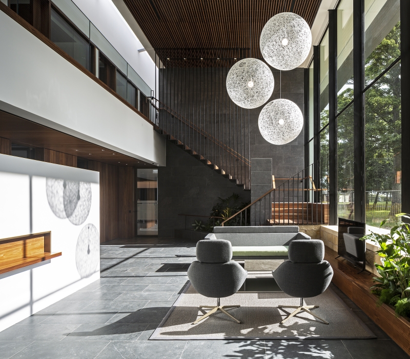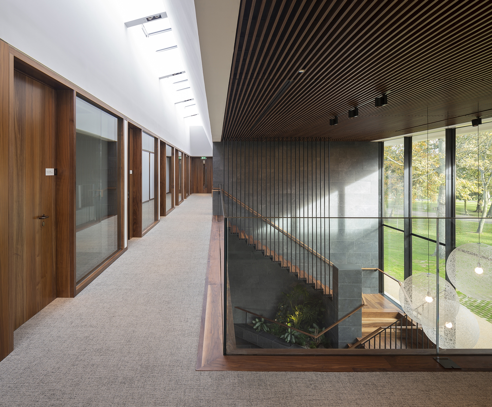 Artificial lighting is integrated into the fabric of the building internally and externally with a luminaire selection of minimal visibility and visual intrusion which enhances the overall experience of the spaces.