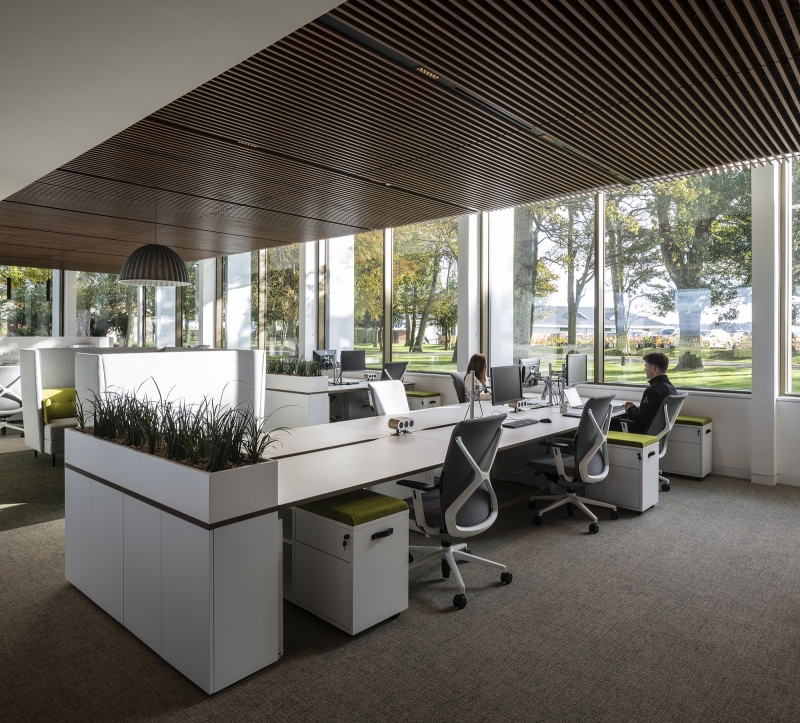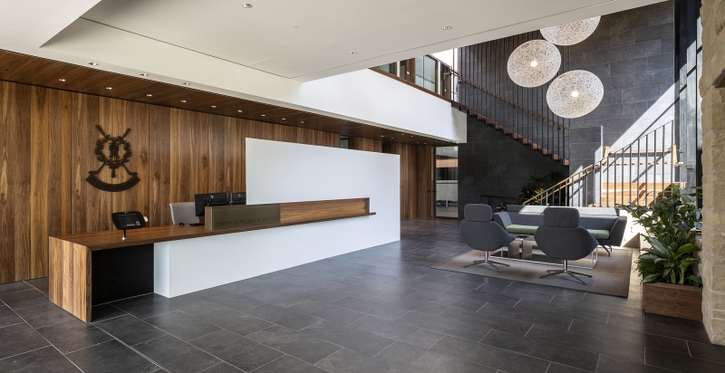 A design consideration maximised available daylight within the building, to minimise energy utilisation using unnecessary artificial lighting. This, along with the site constraints, informed the building’s form and orientation resulting in a relatively narrow building, optimising daylight penetration throughout the day. The provision of a lighting control system, linked to a daylight sensor, ensured daylight was optimised throughout the year with artificial lighting supplementing daylight as necessary. Artificial lighting automatically provides required illumination when daylight is insufficient, with manual scene over-ride capability to suit out of hours/late evening, localised operation.