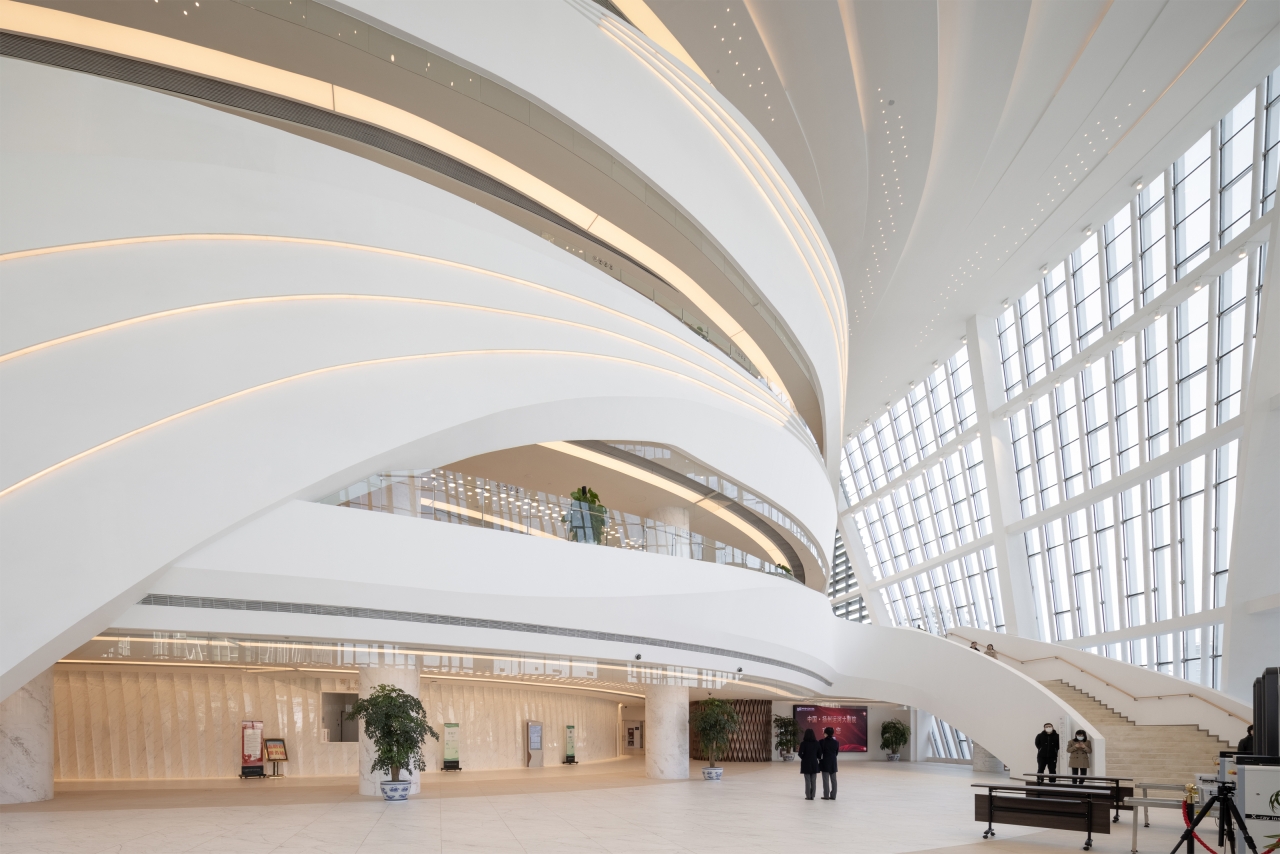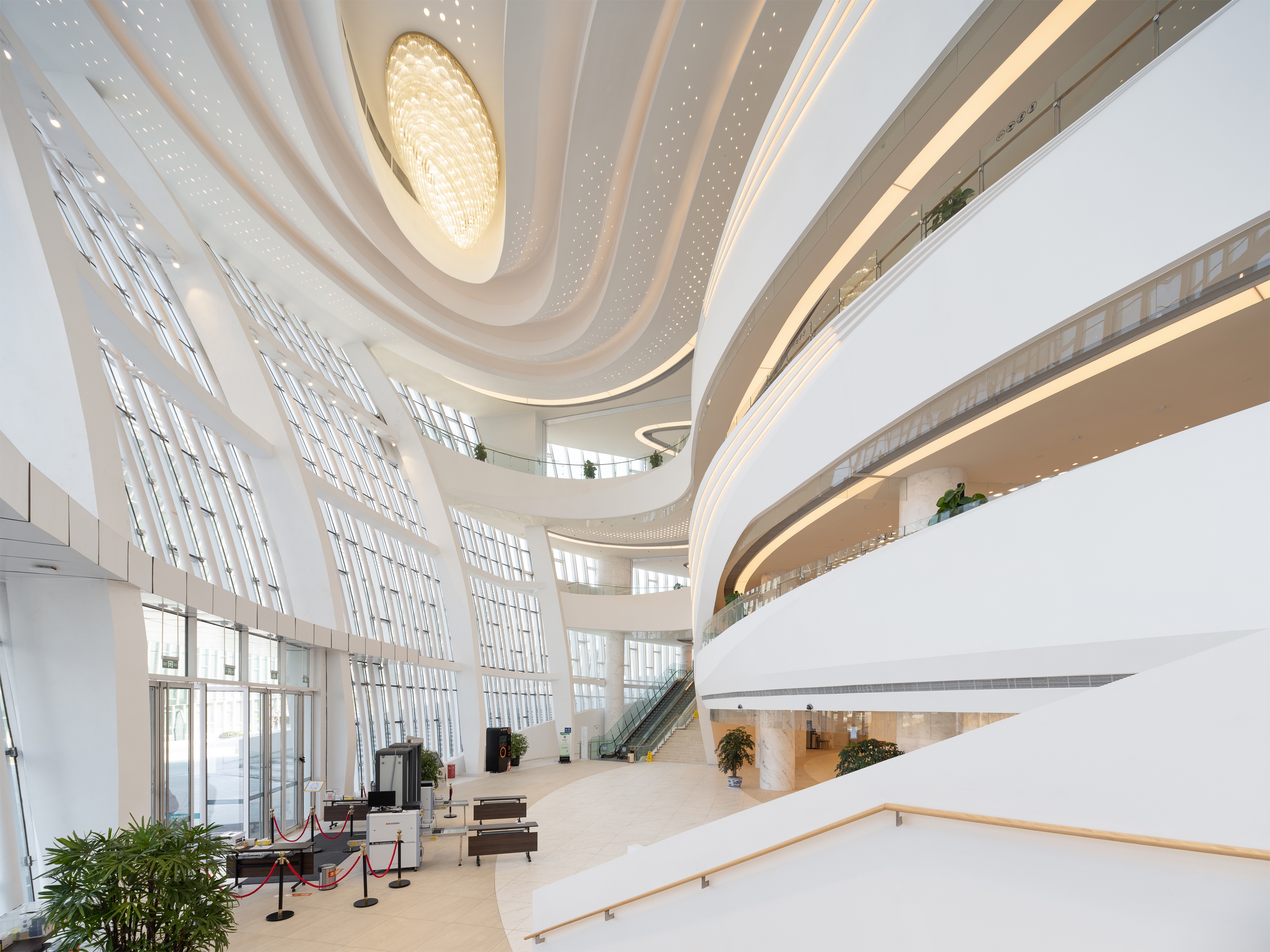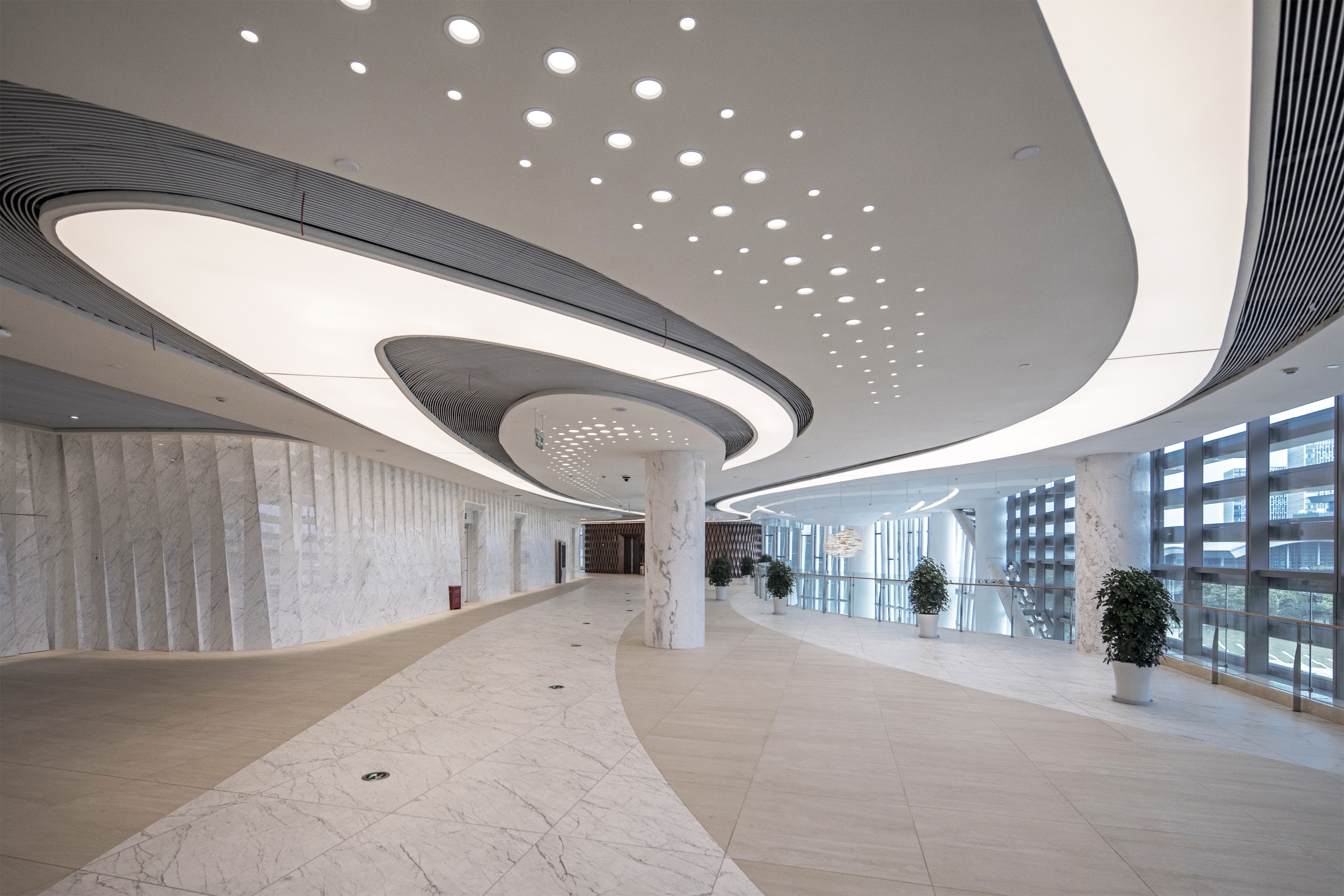 The interior lighting design of The Grand Canal Theatre creates a continuous and fluid image through continuous ceiling luminous films, gradual luminous circles, and washed bright walls. Based on meeting the needs for functional lighting, the lighting design emphasizes the visual experience of the audience.