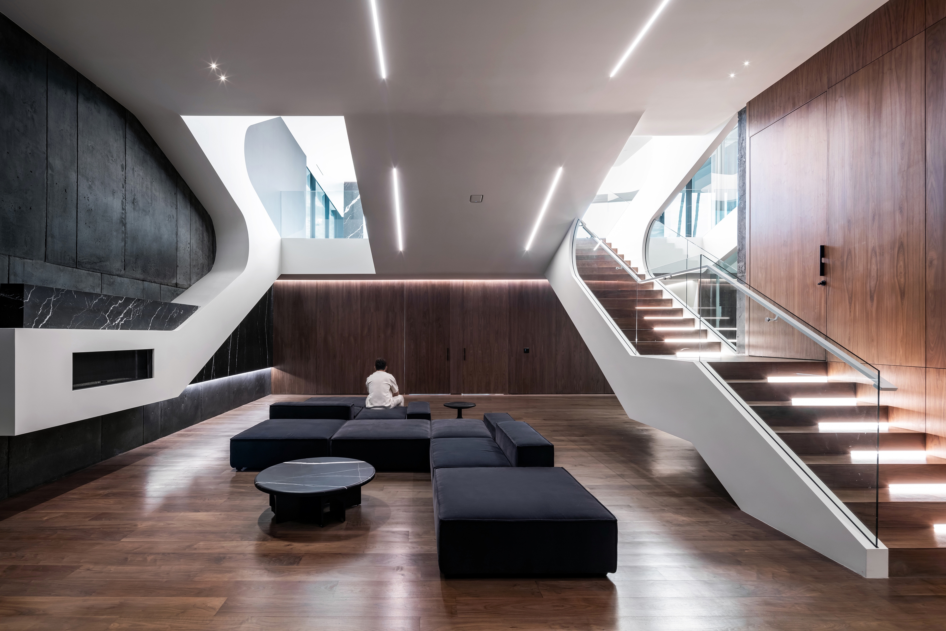 The project was informed by automotive design with concealed technologies to amplify the sensory performance of the architecture. The concept for the lighting of this project stemmed from this dialogue and to make all technologies invisible in favor of an ambient principle. The predominant use of linear and diffuse lighting provided a lucent shell with soft shadows contributing to the overarching scheme of occupant wellness.