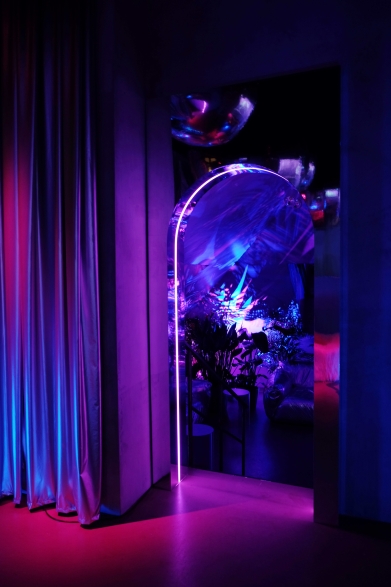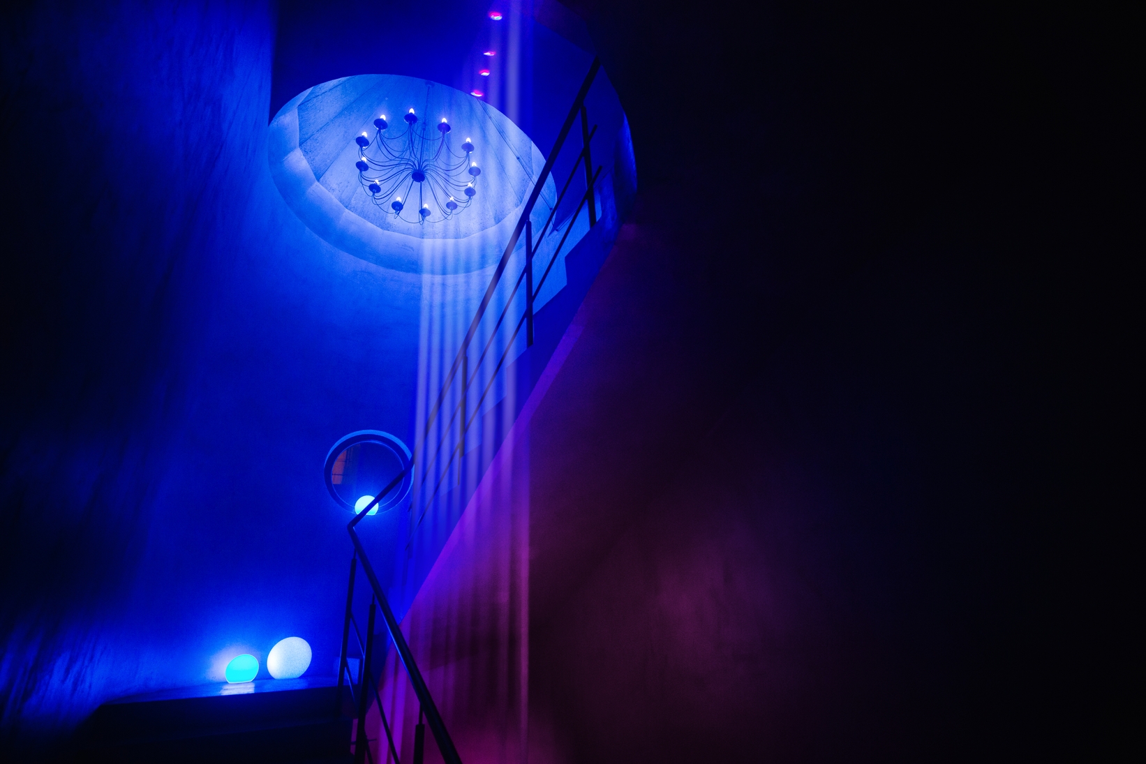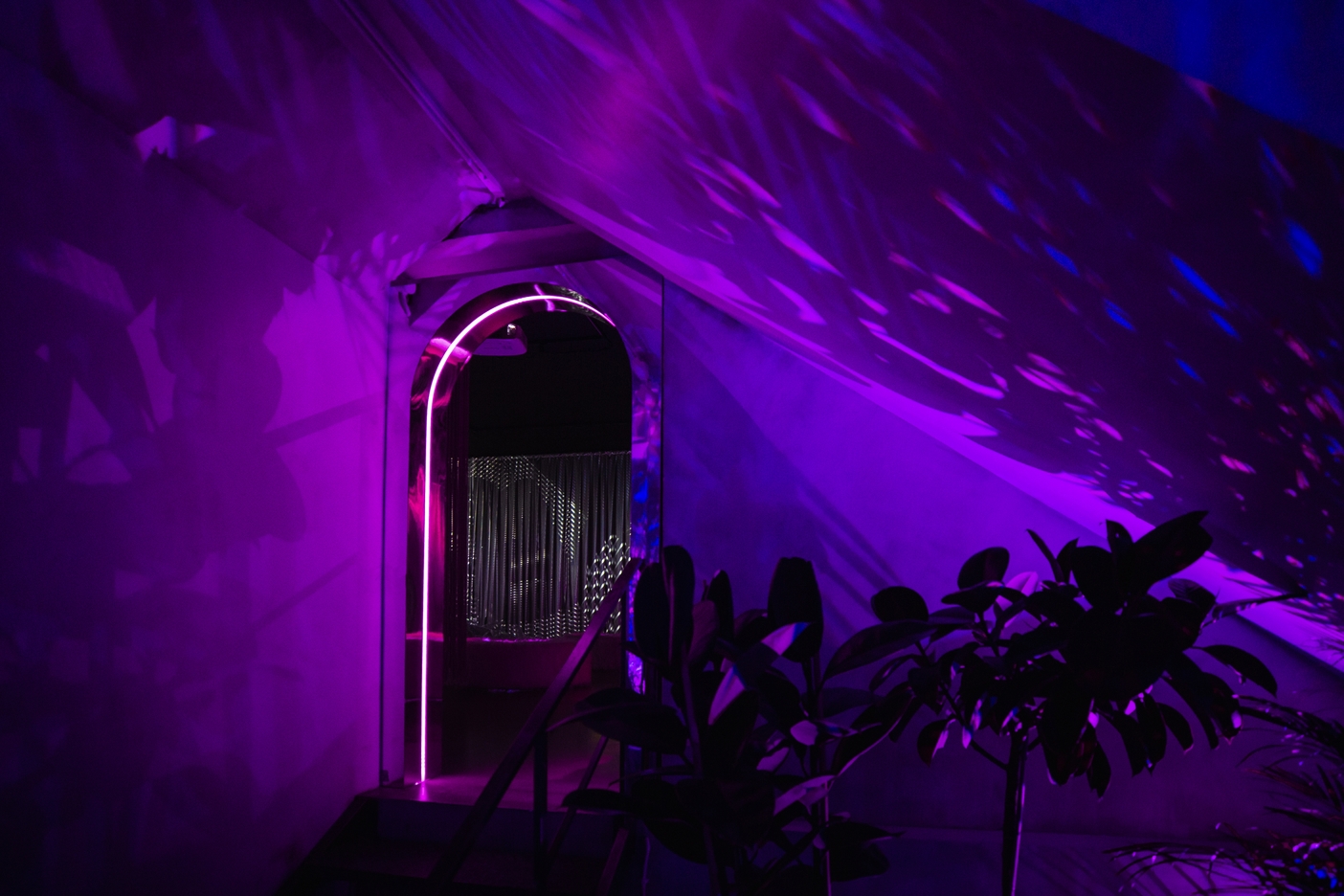 The main lighting purpose was to convert the mansion into a surreal space on the border between reality and the virtual world. To emphasize the client`s commercial identity, the space was branded with pink and purple colors in lighting and decorations. The 3000K color temperature of the functional spotlights was used to provide enough light for safety and visual comfort.