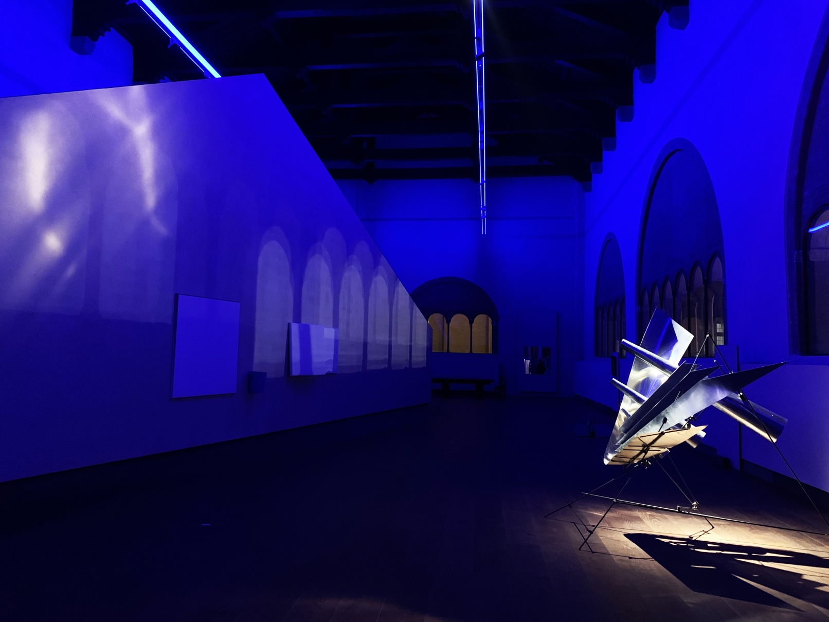 The expressive vividness of works of art exhibited in the historical context has suggested the use of a variable light throughout the day thus respecting the conservation requirements of contemporary museum of art. The major space of the historical building, as well as the other exhibit spaces with smaller luminaire, has required a 36 m long LED module controlled by a DALI system managed by a Helvar technology with a multiple functional task: indirect diffuse light toward the ceiling, diffuse RGBW light for lateral emission and white accent light towards the works of art. The suspended luminaire was named as the historical building which host the art collection and became the “ Arengo module”.