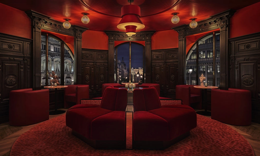 The light helps us to guide the client but at the same time creates a sophisticated and seductive atmosphere in which one cannot resist to have a sophisticated cocktail. The space is distributed from the central bar to the heart of the restaurant: the wonderful RED ROOM located in the characteristic and emblematic rounded corner of the canalejas complex. The technical light is a warm and soft cloud that guides the user through all the spaces that coexists perfectly with the delicate and unique decorative lamps located all along the spaces. All the elements coexist harmoniously playing to create carefully thought out contrasts of shadows and light with different intensities to coexist with the natural light that enters through the huge windows of the restaurant.