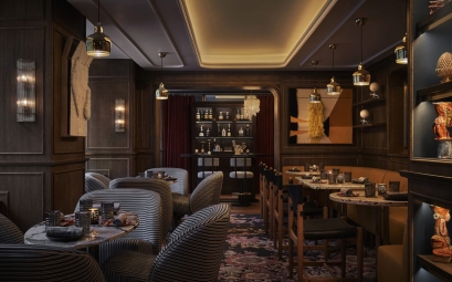 We fall in love with its wide chromatic ranges, textures and sinuous shapes, all of them slightly illuminated to create an intimate and seductive space. ISA BAR wants to be a mysterious space where the customer travels around discovering the different spaces.