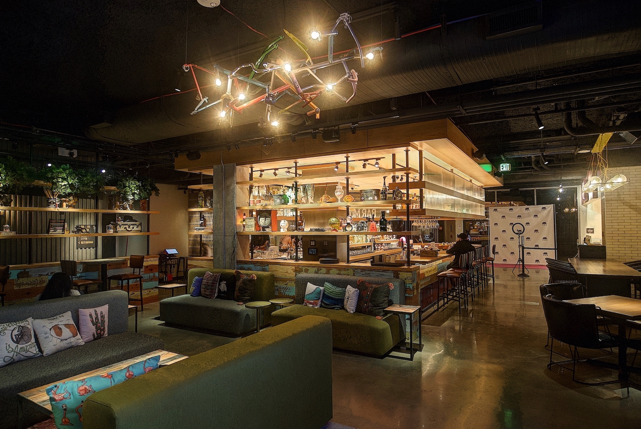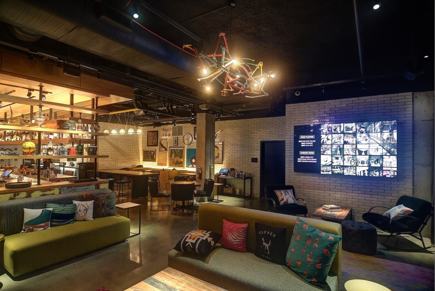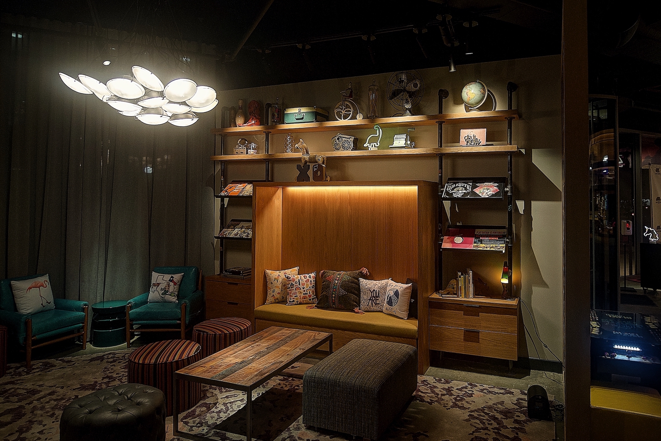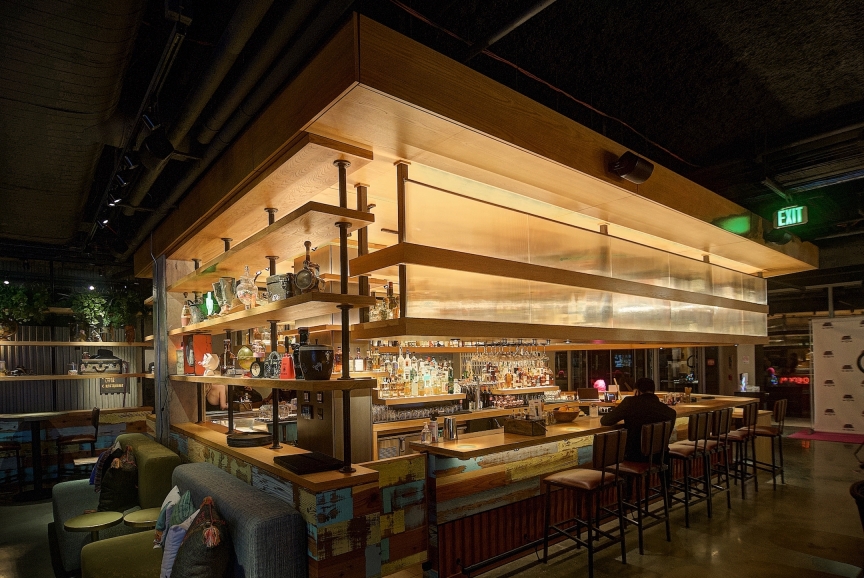 Entry DescriptionThe Moxy is a stylish hotel that targets a young demographic in Austin, TX. The public areas are centered around the focal bar/reception desk. The client refused to accept LED lighting except for linear warm-dim fixtures & we still had to meet the 2015 IECC. The main lobby & bar spaces have black ceilings, presenting huge challenges for a typical indirect ambient lighting approach. Due to the black ceilings the lighting concept had to rely on reinforcing the vertical surfaces & decorative elements, particularly the main bar & decorative shelving. Standard budget restrictions were identified early & allowed us to move forward with specified & acceptable alternates. A dimming system is utilized in every public space. Time-clock settings & fade times are instrumental in transitioning from day to night & bringing as much attention to the bar as possible. Surface mounted adjustable fixtures spot tables & highlight decorative items on shelving while allowing the bar to remain the primary glow. All LED light sources incorporate warm-dim technology that allows lighting to become warmer & golden as it dims, blending in with the traditional incandescent & halogen light sources.