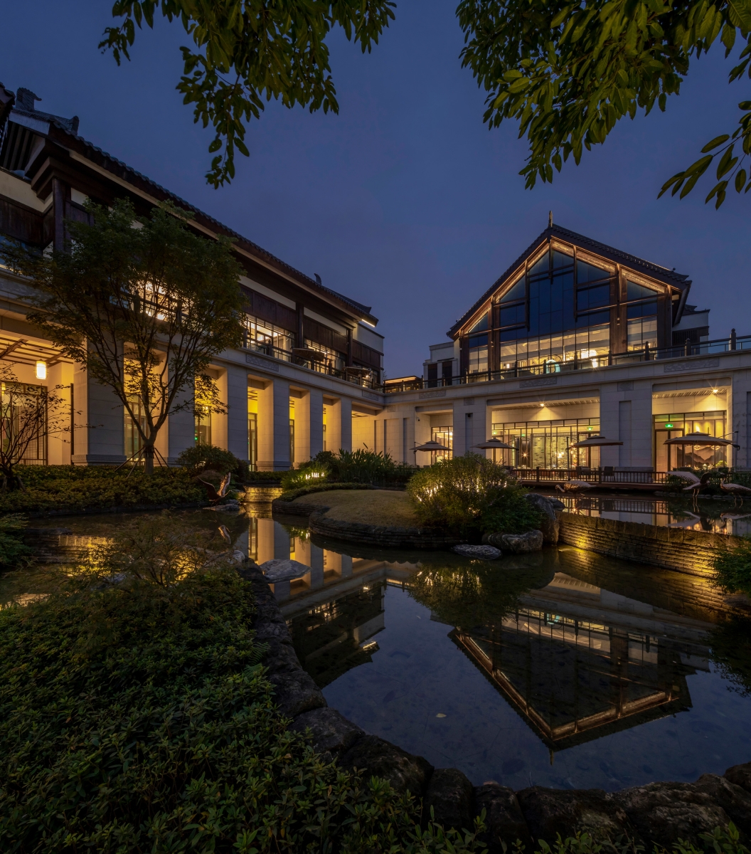 Comfortable warm light gives people noble check-in experience, so that the space not only traditional Oriental charm but also distant and elegant style. Scene lighting design, fresh and simple style, guests like walking in Bayu ancient town streets.Lighting is the skin of the building, the Oriental mood of the space and modern aesthetic artistic conception blend seamlessly.