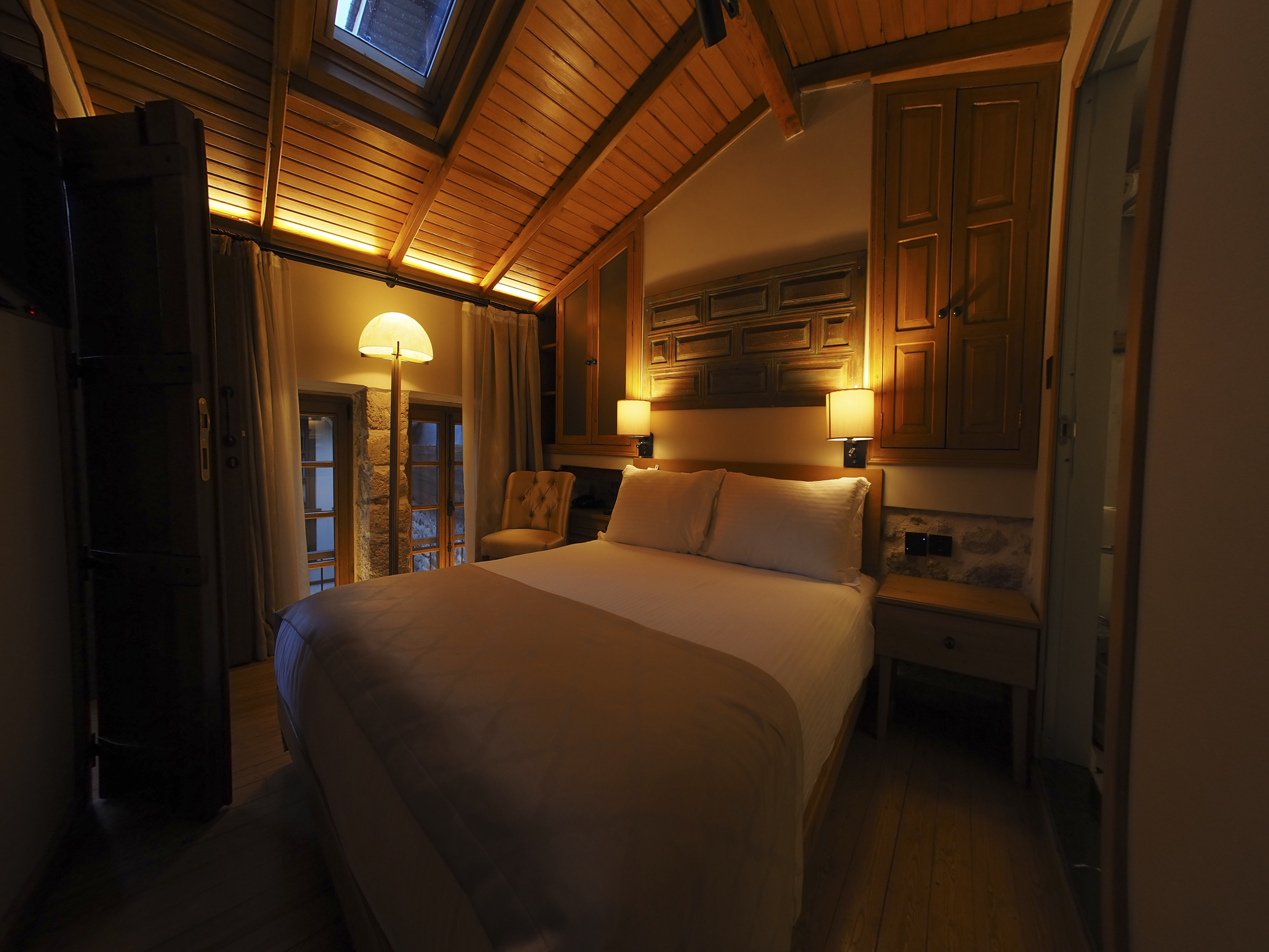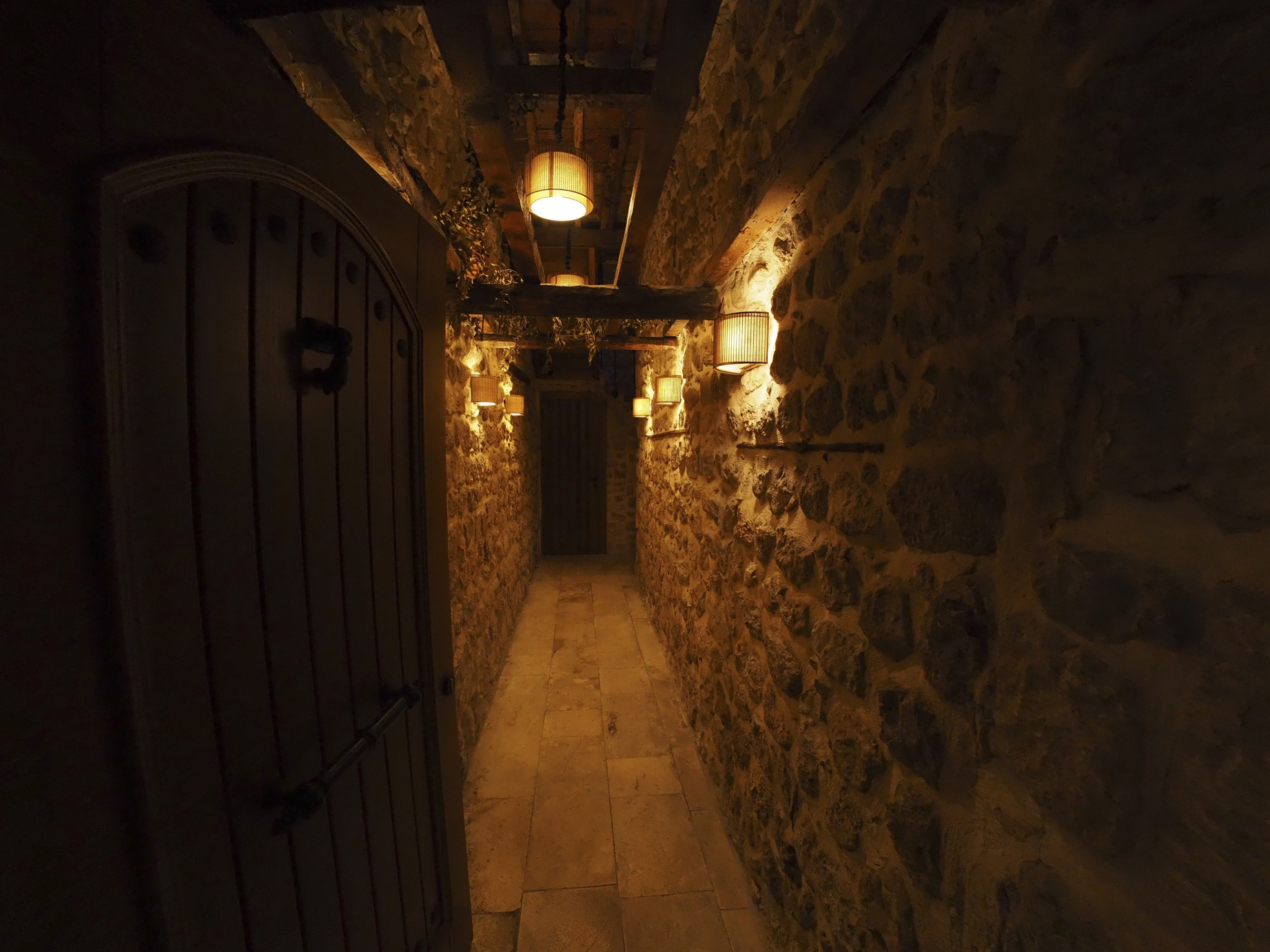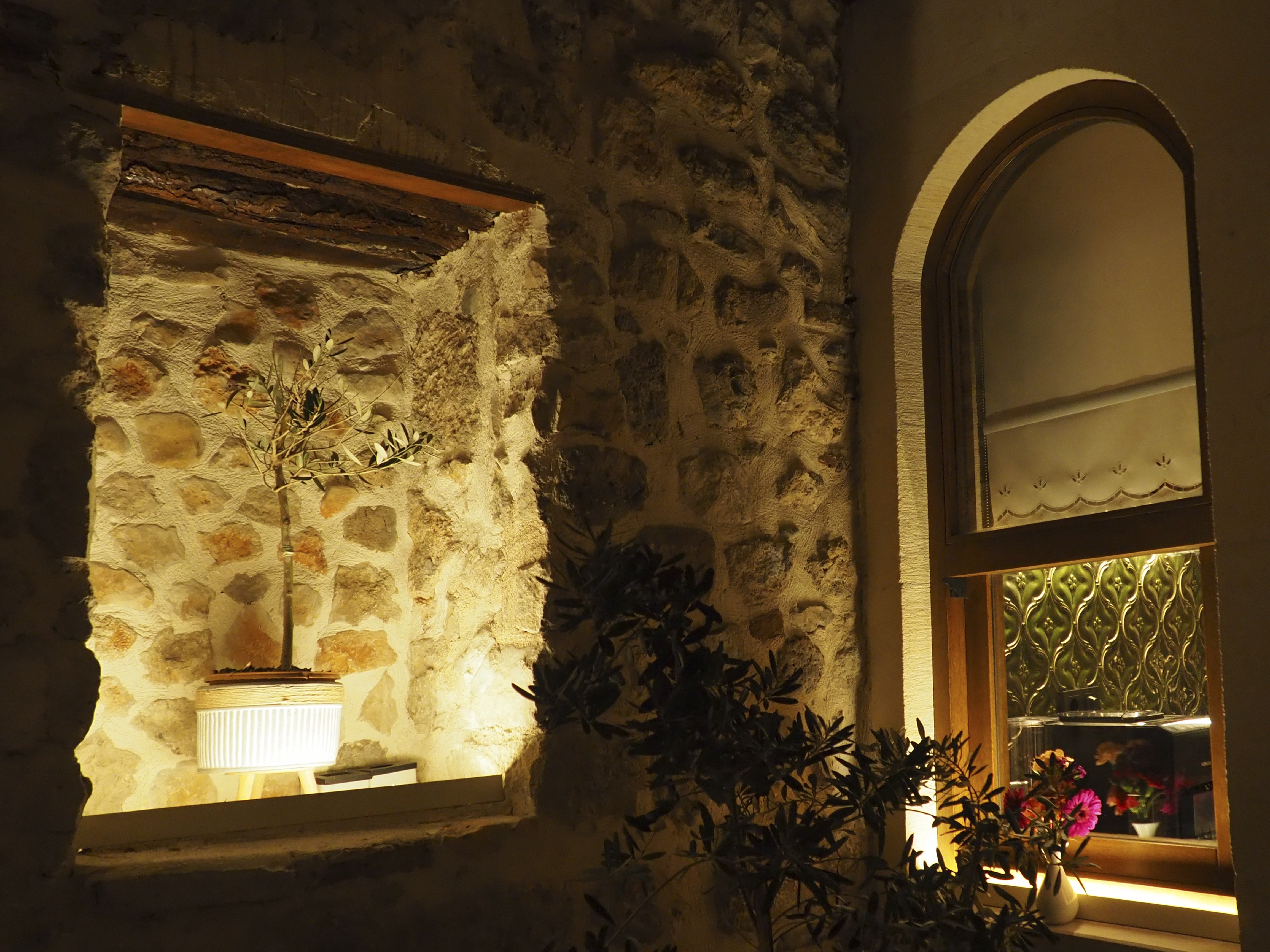 The aim was to recapture the historic & domestic ambiance once created by the light seeping into the courtyard from the interiors. As a result, exterior lighting was considered judiciously, mainly allowed through doors and windows, creating a playful contrast and a distinct night-time identity. No lighting was applied to the facades to evoke the memory of the place that it was & still is a home for its visitors. The welcoming warmth radiating from the rooms also helped with the ambition of keeping the light pollution to a minimum.