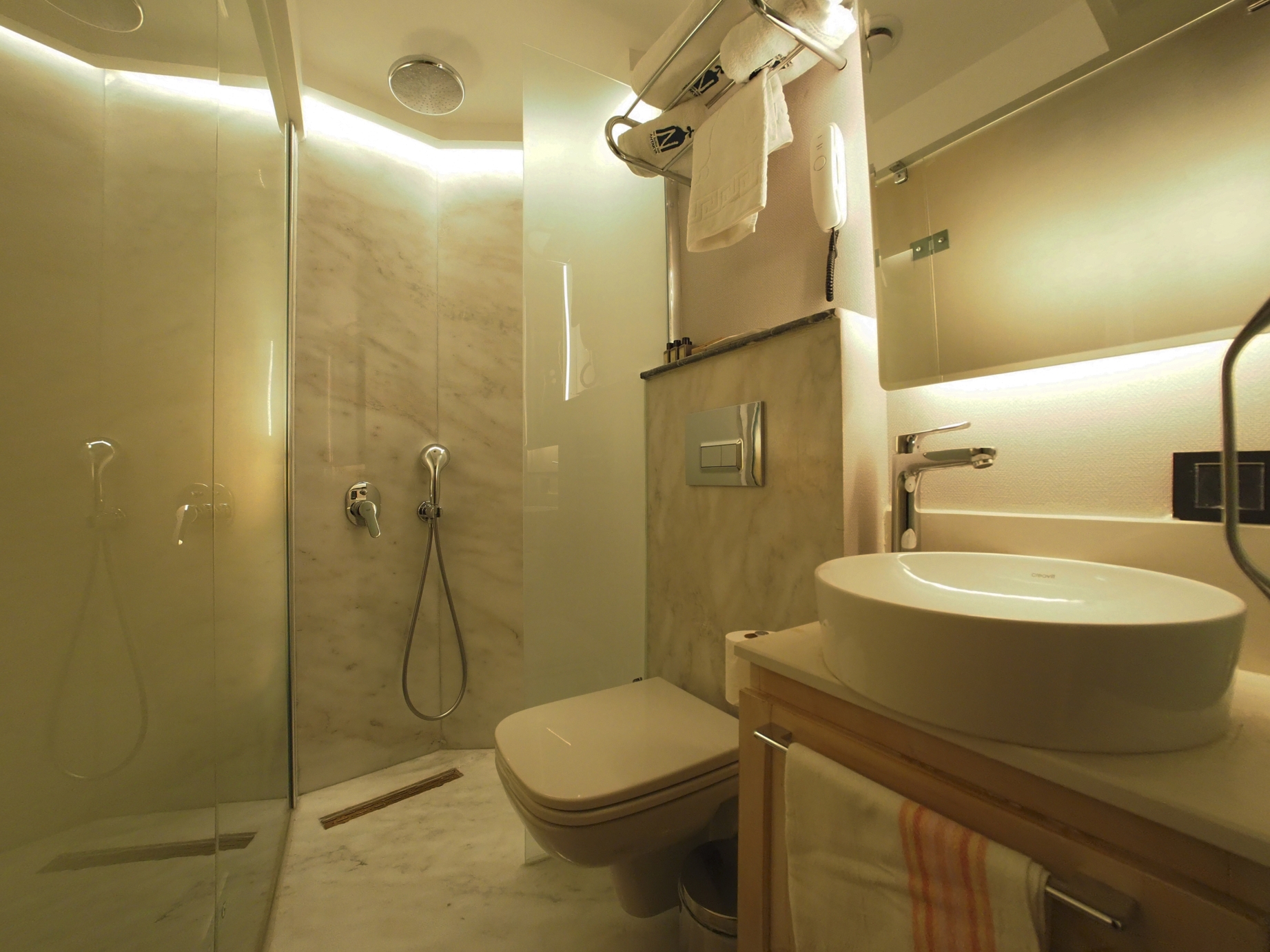 Interior lighting was achieved in a manner sympathetic to the heritage fabric, aiming to enhance materiality and textures. In addition to the ambient illumination provided by the traditional use of chandeliers. Seamlessly-integrated linear lighting and contemporary track spots were utilised to emphasise the unique features of the architecture whilst introducing a clear distinction between the old & the new. The use of warm, glare-free & mostly non-directional illumination led to an intimate & welcoming character.