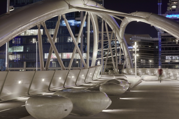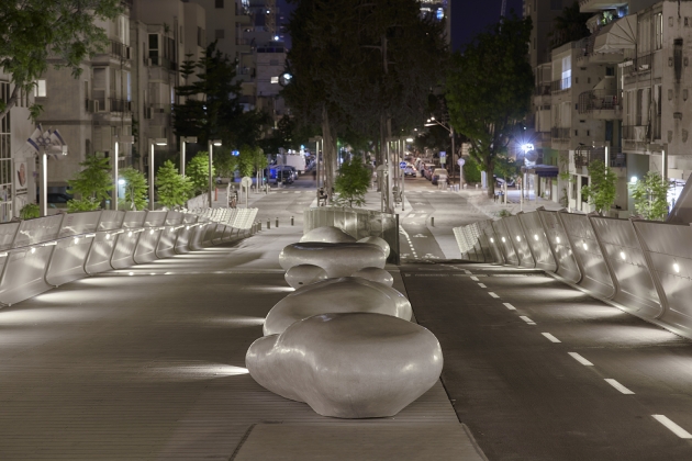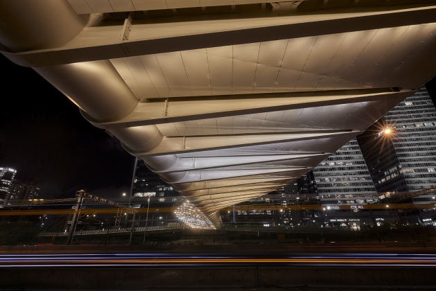 Yehudit Bridge is the first pedestrians only bridge, connecting the east of Tel Aviv with its west. The light is created to connect the wayfarer to the city and its architectural nature. To the viewers from below- the waves of light create the illusion that the metal bridge is floating lightly weighted. To those how to walk on it- the path is lighted gently, keeping the city lights in the front stage.