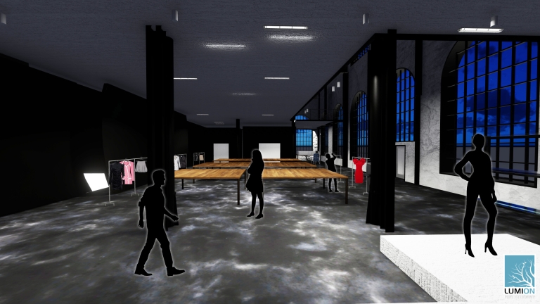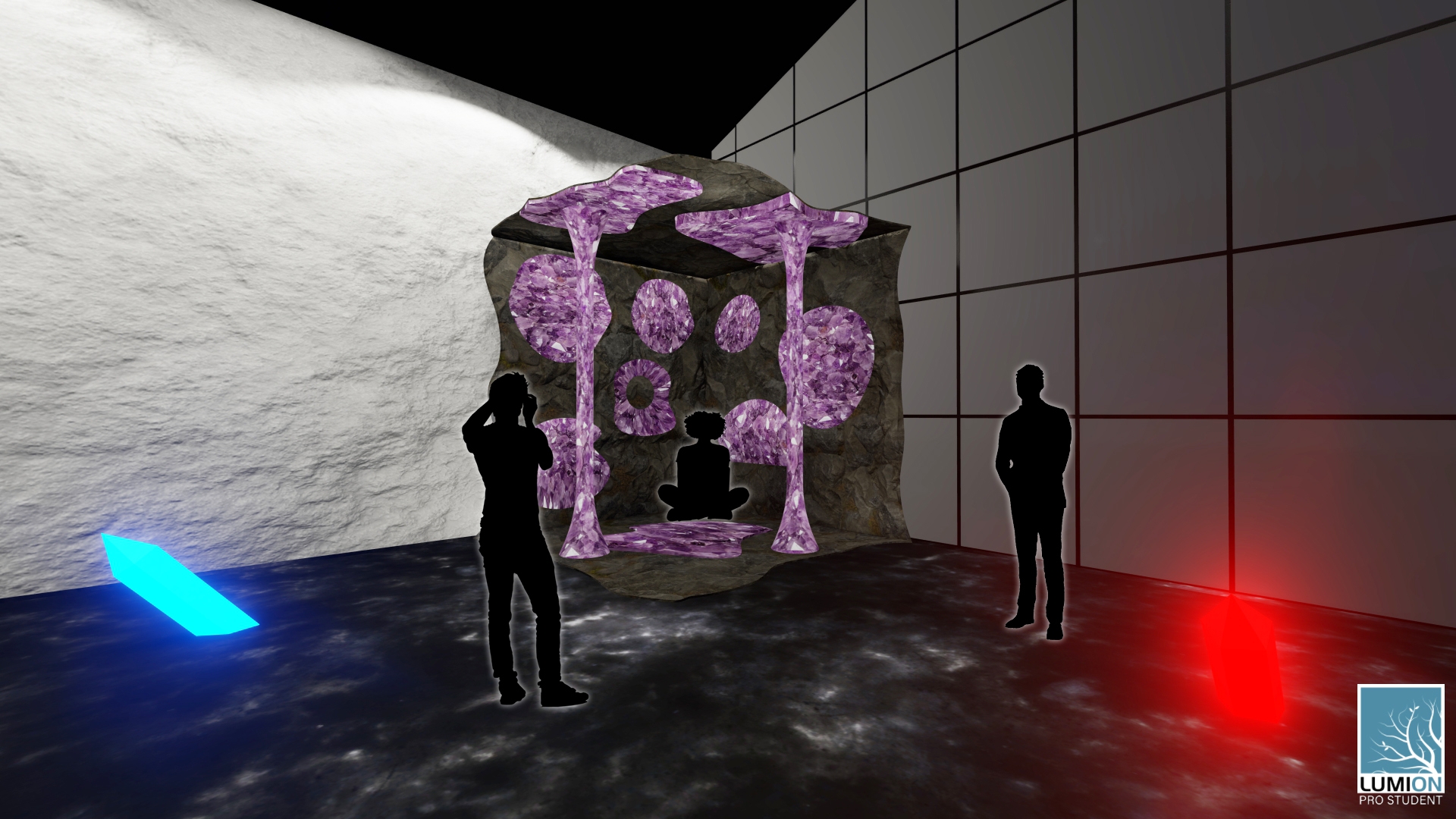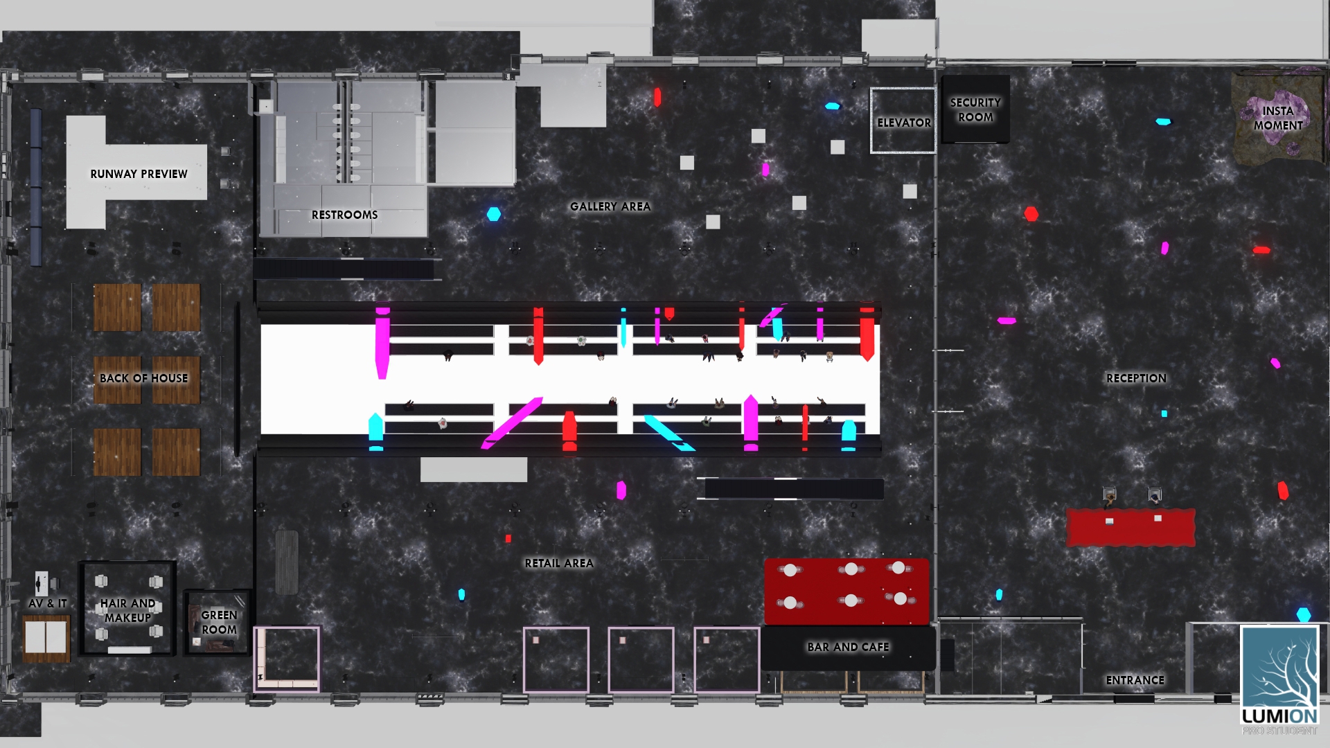 Le Cristal is a conceptual fashion event project located at 555 20th St, in the Pier 70 area of San Francisco. Inspired by giant quartz crystal caves and bioluminescence, Le Cristal aims to treat the audience to a one-of-a-kind psychedelic, illuminating experience like no other. In the reception area, the LED quartz crystals are mounted to the floor with the illusion of protrusion through the surface. The same thing is done in the tunnel which is the main runway area. Other forms of lighting were used in this project such as ceiling lights in the back of house area and track lights in the reception area. There is also an "Insta Moment" located in the corner of the reception acting as an area for visitors to take memorable images, which is inspired by geode crystals. However, the main take-away of the thematic design in this project is the glowing emission that comes from the floor-mounted quartz crystals.