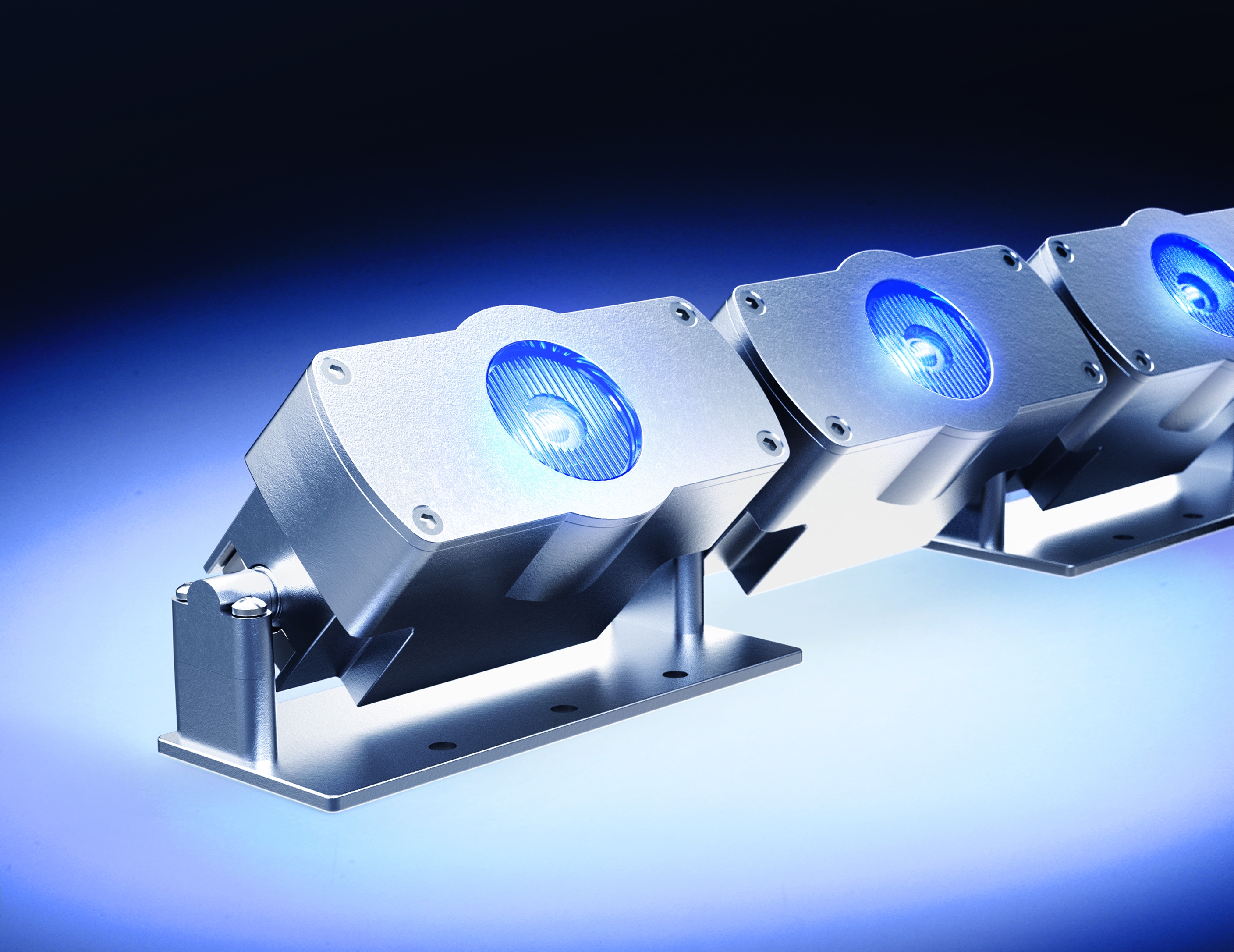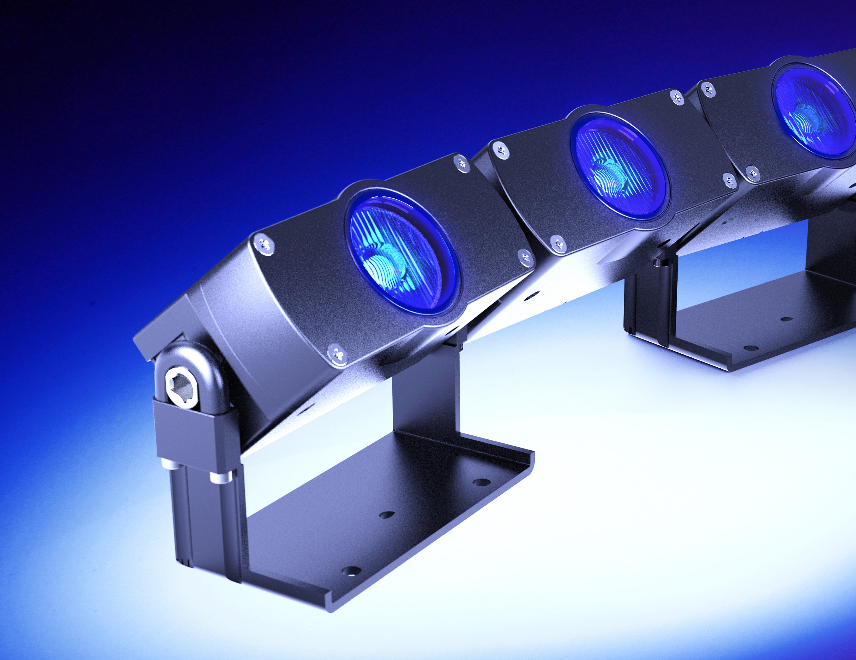 Each 100mm heat sink module combines a customisable RGBW or Tunable-white light-engine with one of Gaggione’s new range of 32mm diameter colour-blending lenses.