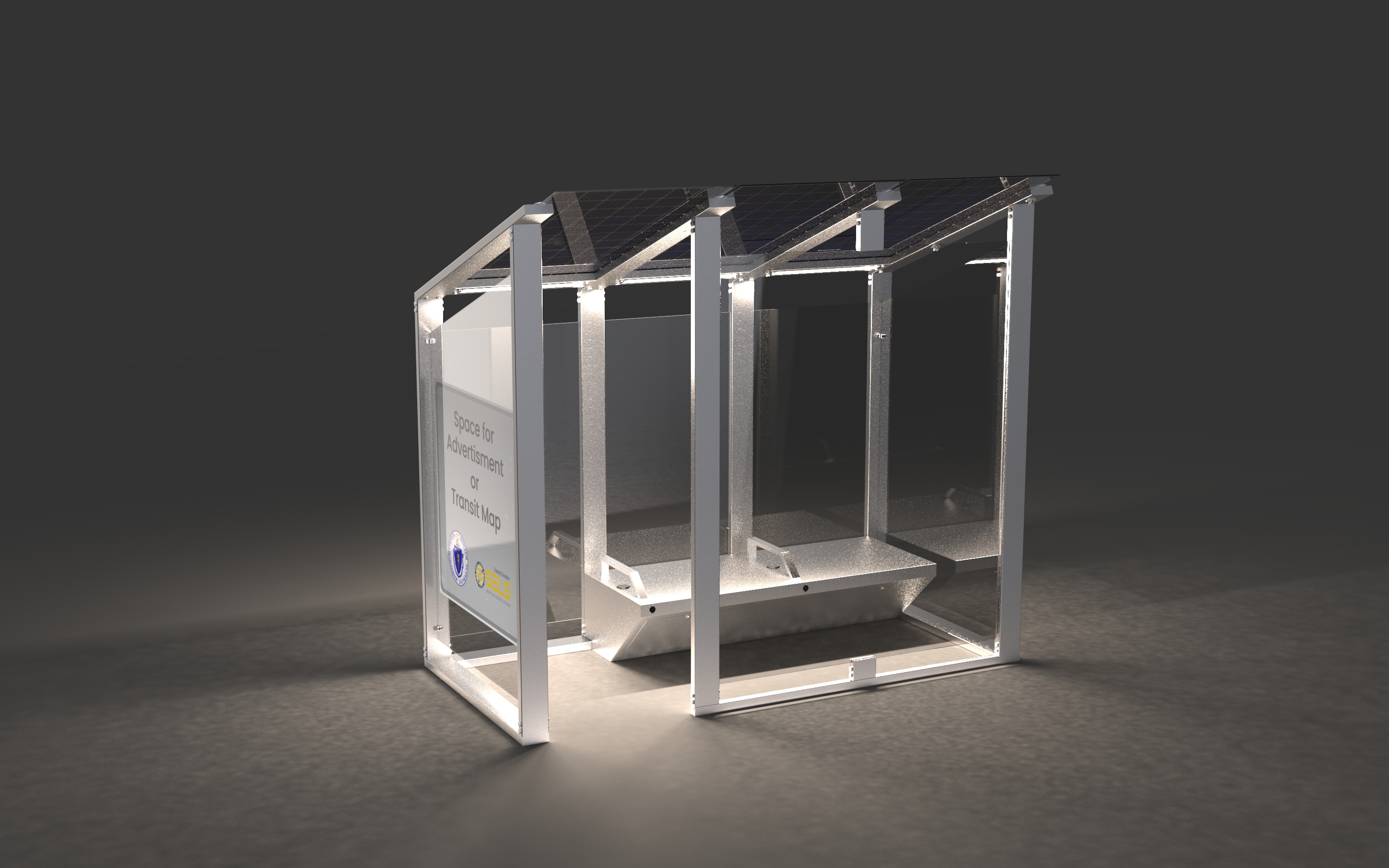All across the USA, bus shelters have stayed the same for decades. There have been no widespread technological advancements or new considerations for the passengers or the city itself. SELS aims to change all of that with the SBS - Smart Bus Shelter. This shelter pushes the envelope but utilizes a modular system letting you expand the shelter with 3ft segments powered by its own 450-watt bi-facial solar panel. Each segment is connected by a steel extrusion housing a powerful light bar and solar panel integrators. Featuring ultra-discreet surveillance systems, wifi, advertisement space, BlueTooth speakers for transit announcements, AC power banks, USB-C and USB device charging, and wireless charging pads for every passenger.
