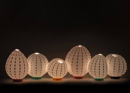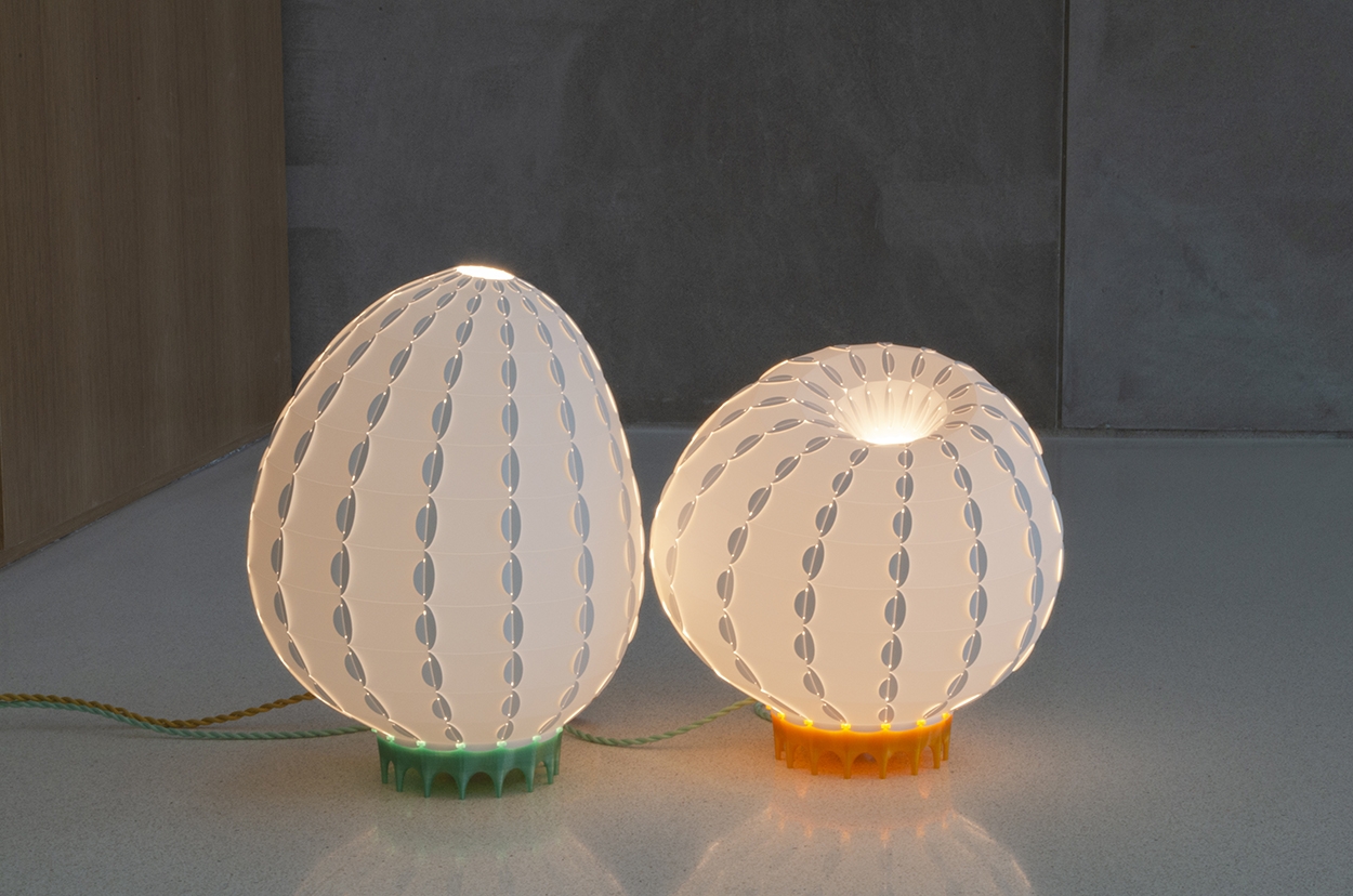 The Polyps draw from natural forms such as fruits, vegetables and deep sea life, contemplating the converging similarities we see among fauna from such disparate locales. Playful without becoming demanding, the lamps are an expressive vision of a hopeful future, one in which we learn to live among irregularity and organic form, of fantastical science fiction brimming in expanding, growing and glowing forms finding themselves somewhere between botanic and sputnik, disco and digital.