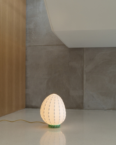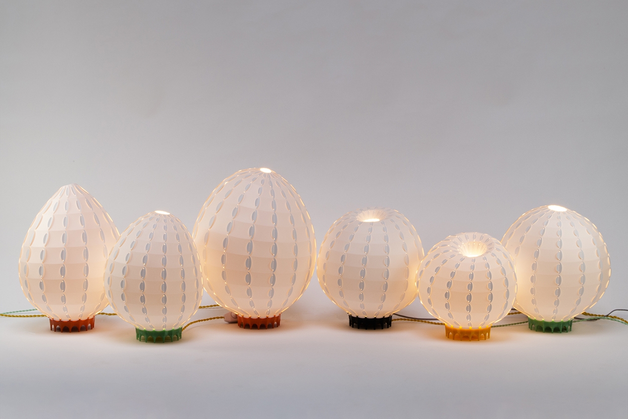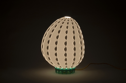 Entry DescriptionThe Polyp Lamps feature the design’s assembly as ornament in a series of table and pendant lighting. Paper volumes function as shades for LED lights and snap together with tabbed construction applied to soft, voluminous and organic forms. The series is designed and built incorporating parametric programming and laser cutting, yet follow a longstanding tradition of tactile paper in lighting.