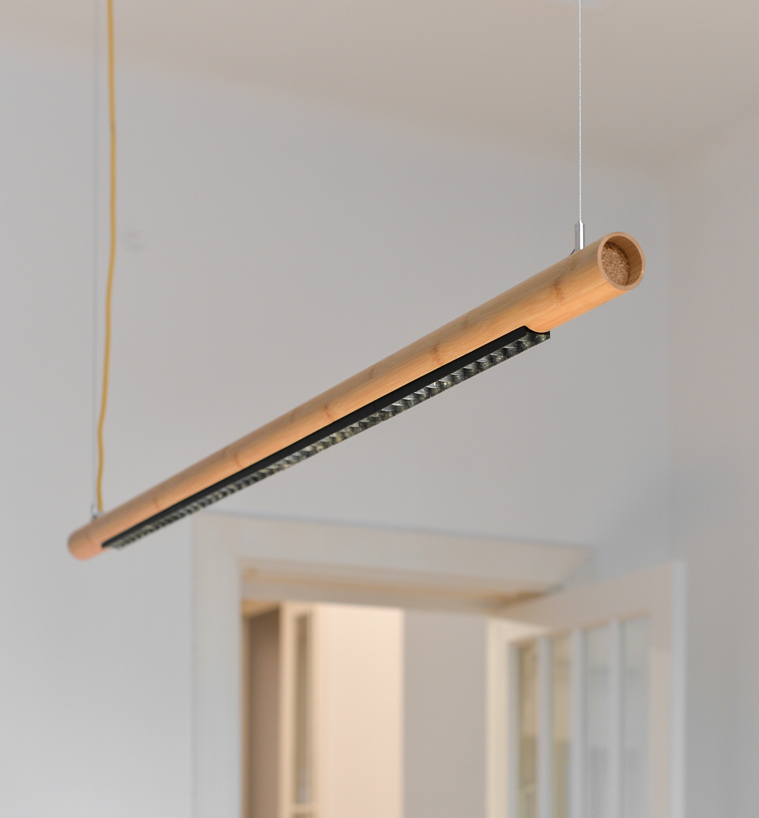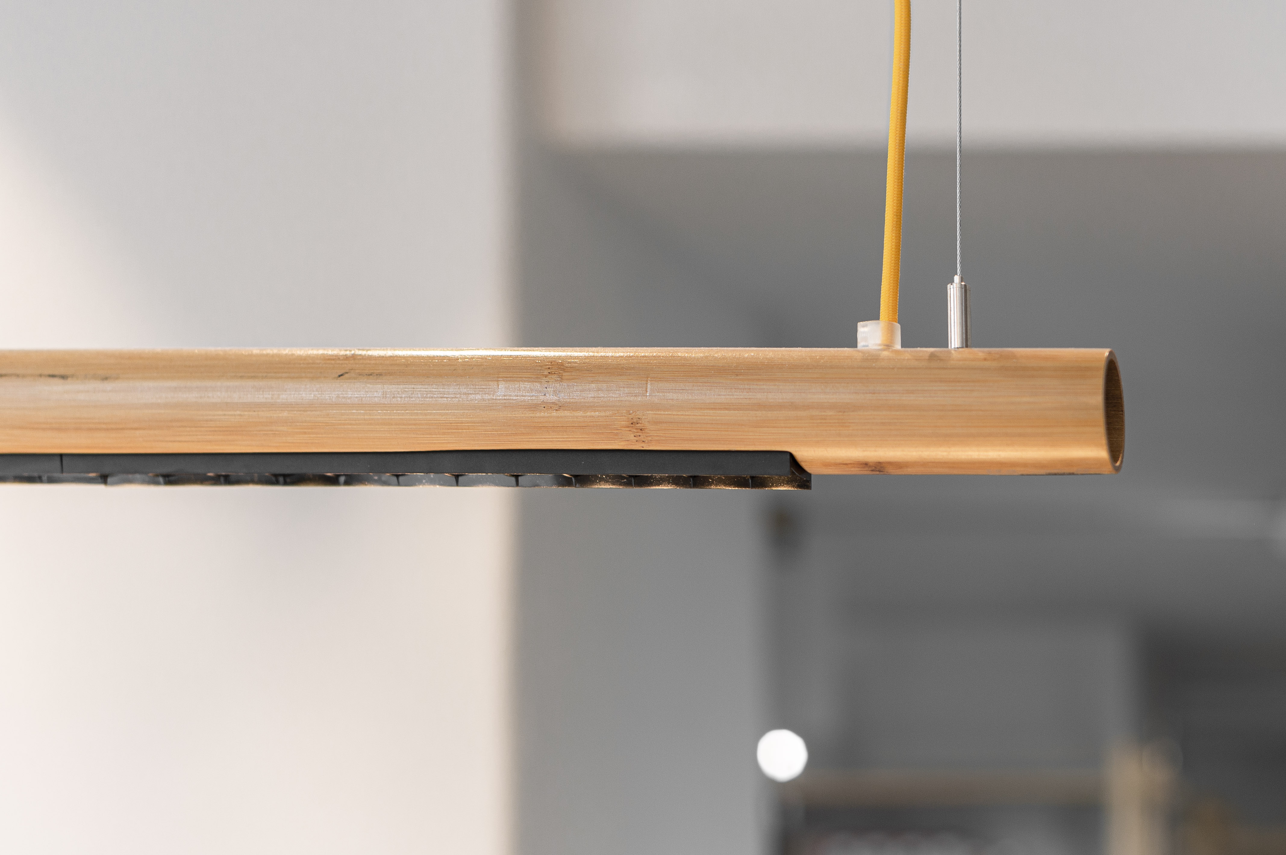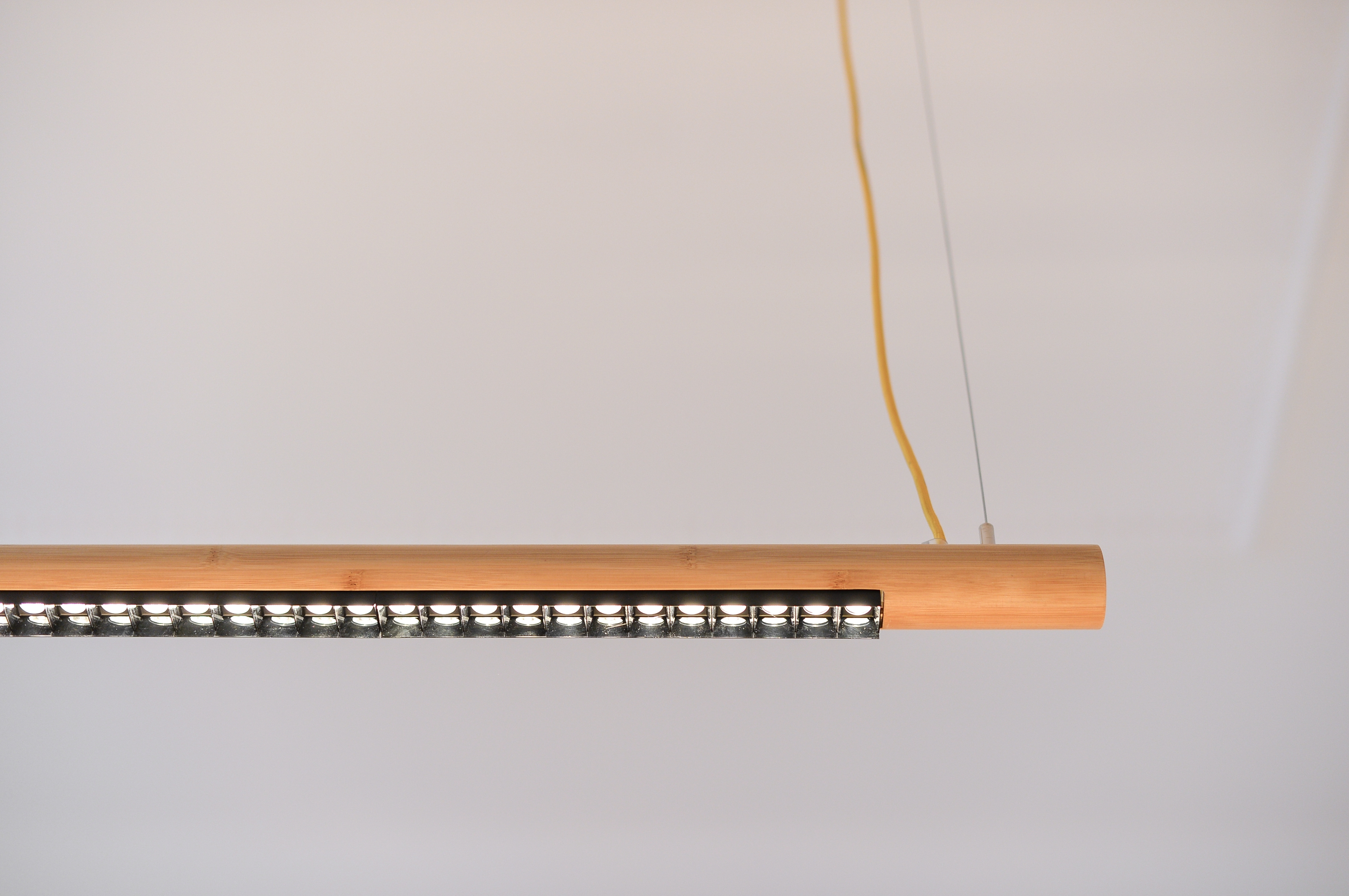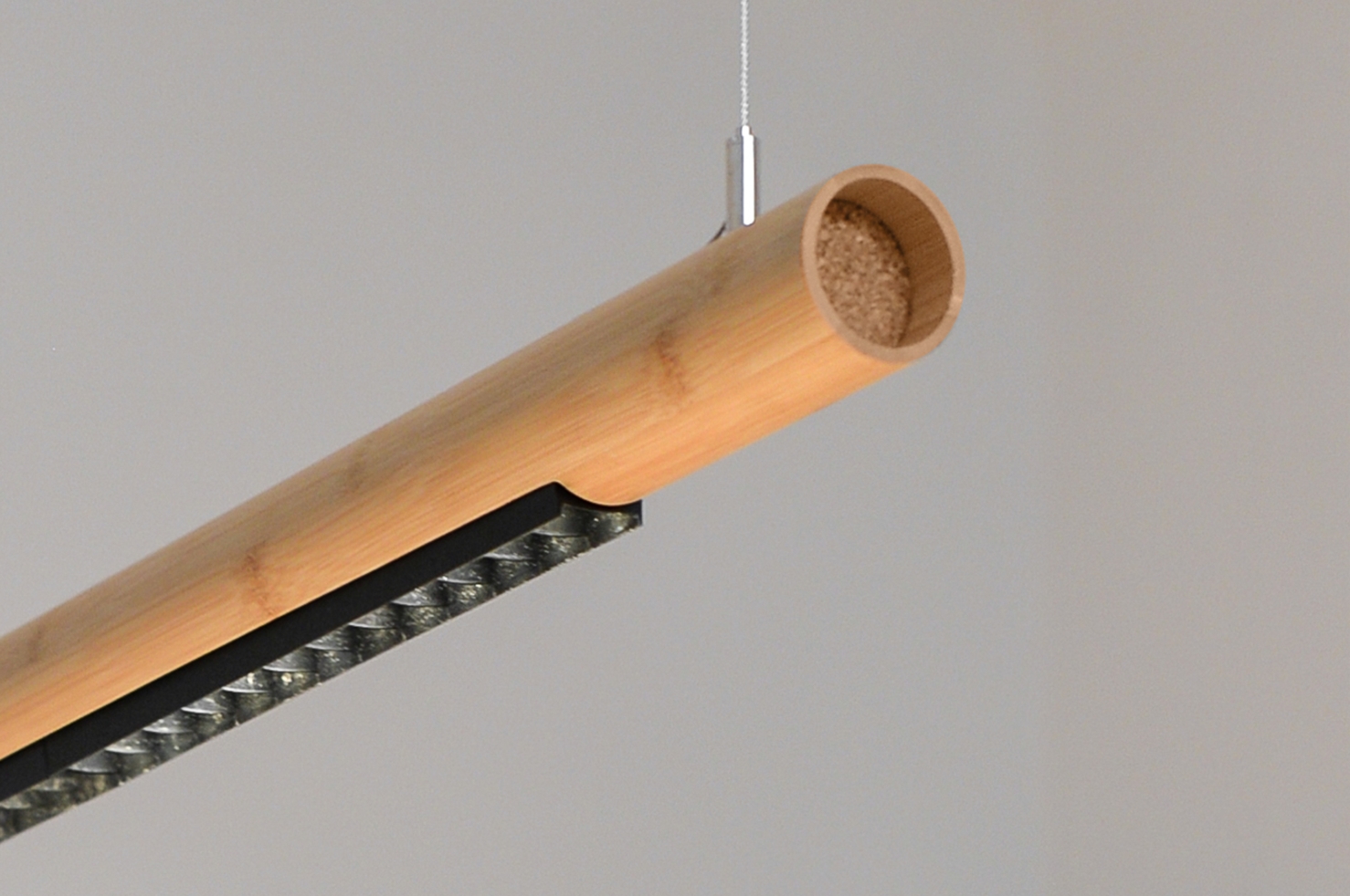 Mirai hosts hi-performance optics inside the slick bamboo tube with cork ends which are 100% natural and recyclable. The recessed narrow angle LED spotlights allow for visual comfort through control over light spill and screen glare. Mirai is certified as Safety Class 1 for use in high-rise office buildings.