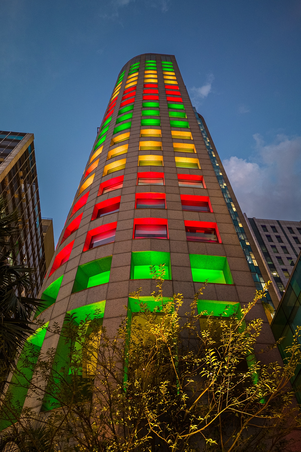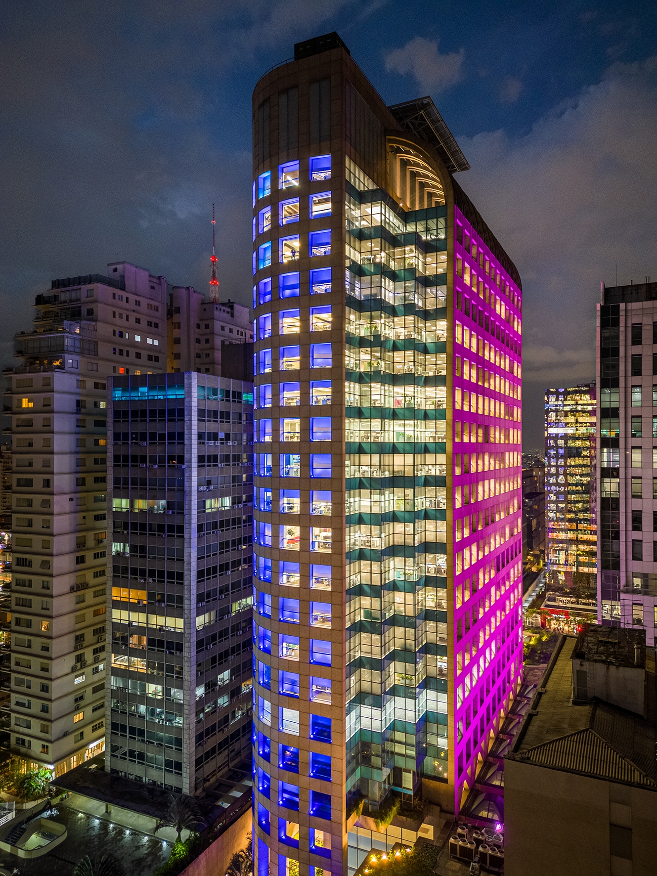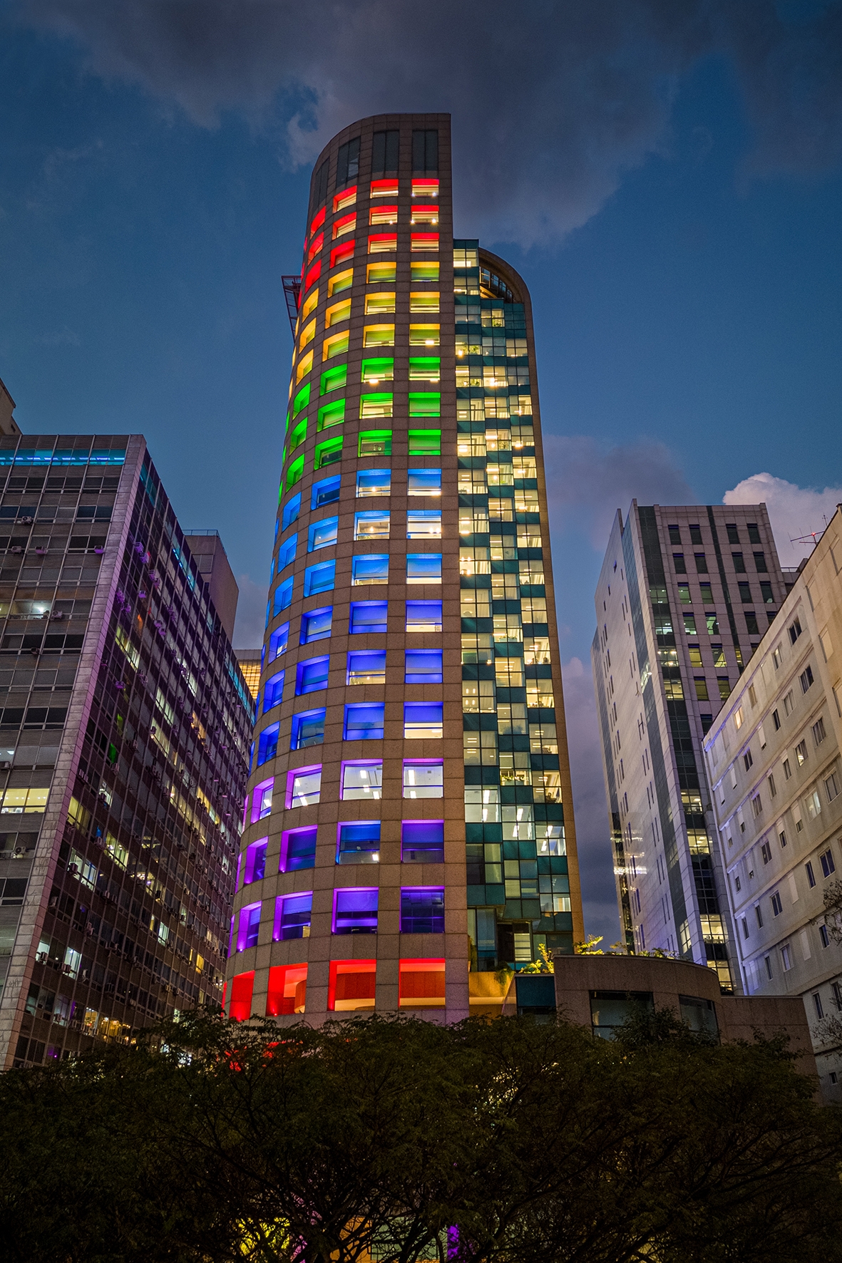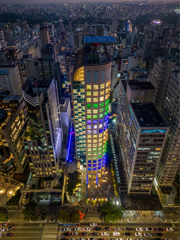 Entry DescriptionAs we walk on the busy Paulista Avenue, a major financial center and tourist attraction in the city of São Paulo, a building stands out with its entirely lit 93-meter (305.1-foot) facade. The technical lighting project, with RGB light fixtures carefully set from the ground up, accentuates the building’s architectural elements, making it a true urban landmark at the heart of São Paulo.