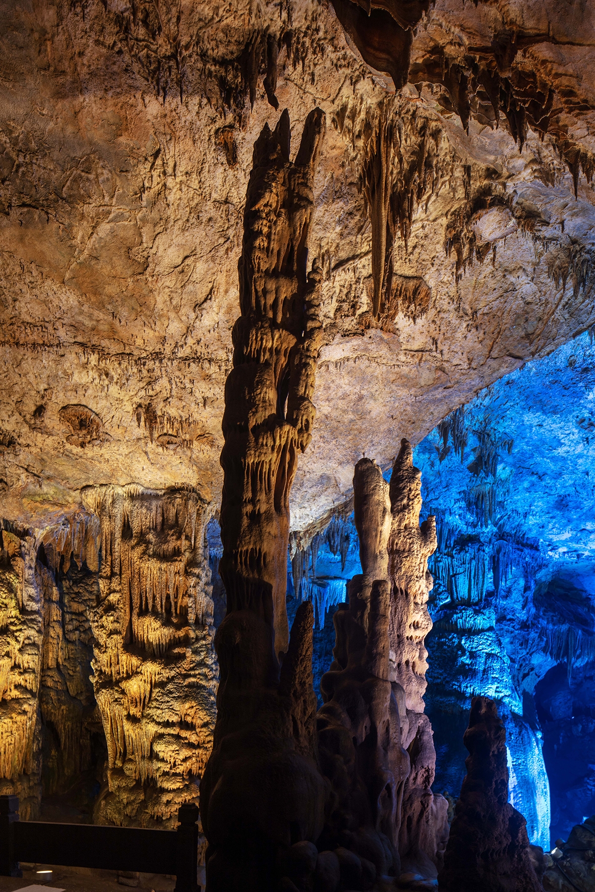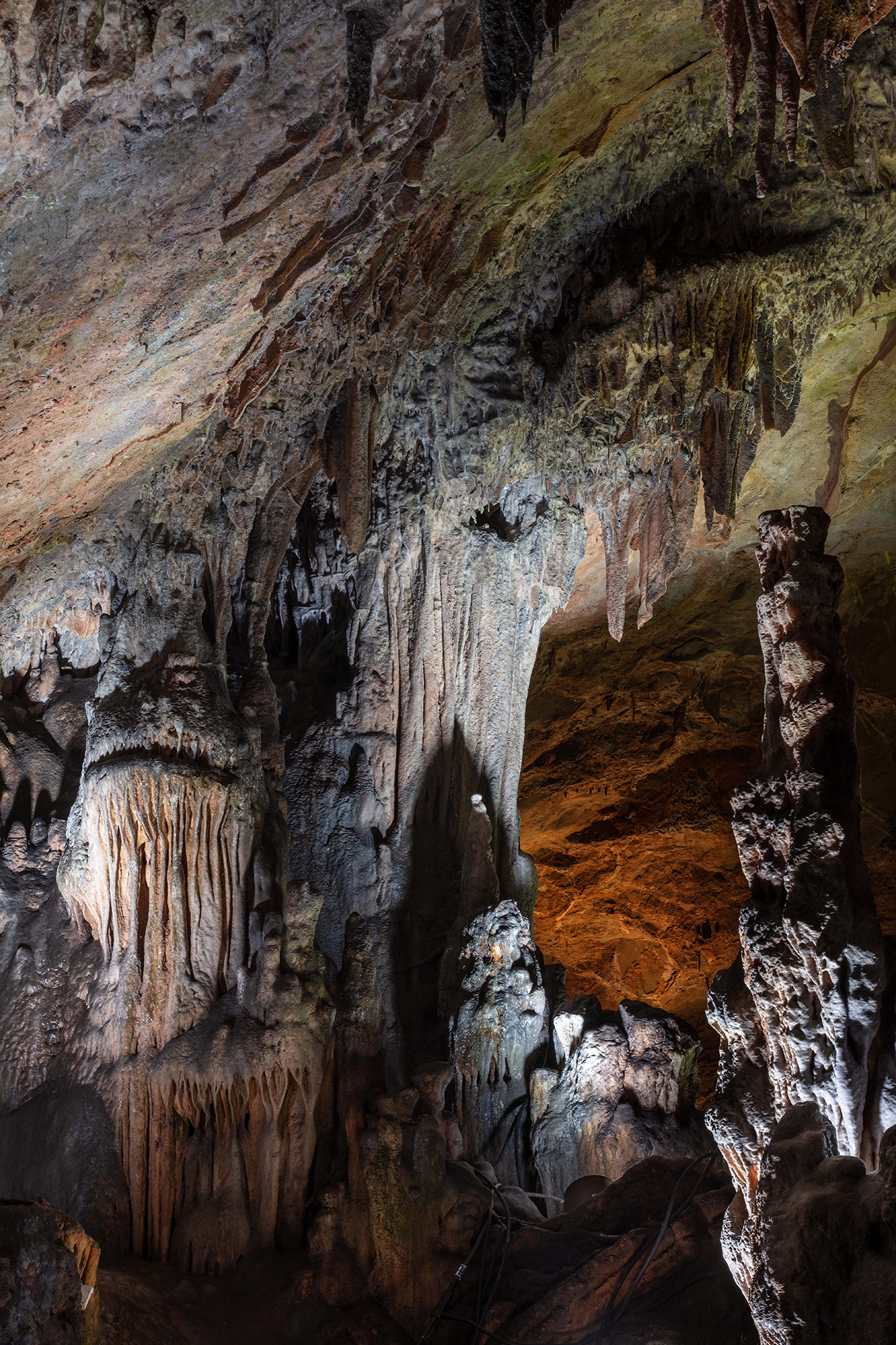 The growth of moss issue on stalactites due to the air humidity and illumination factors is a universal problem for karst caves. The design team came up with a creative solution to tackle it. They used 7-in-1 lamps and added filters that eliminated red and blue light wavelengths, thus inhibiting the growth of moss effectively.