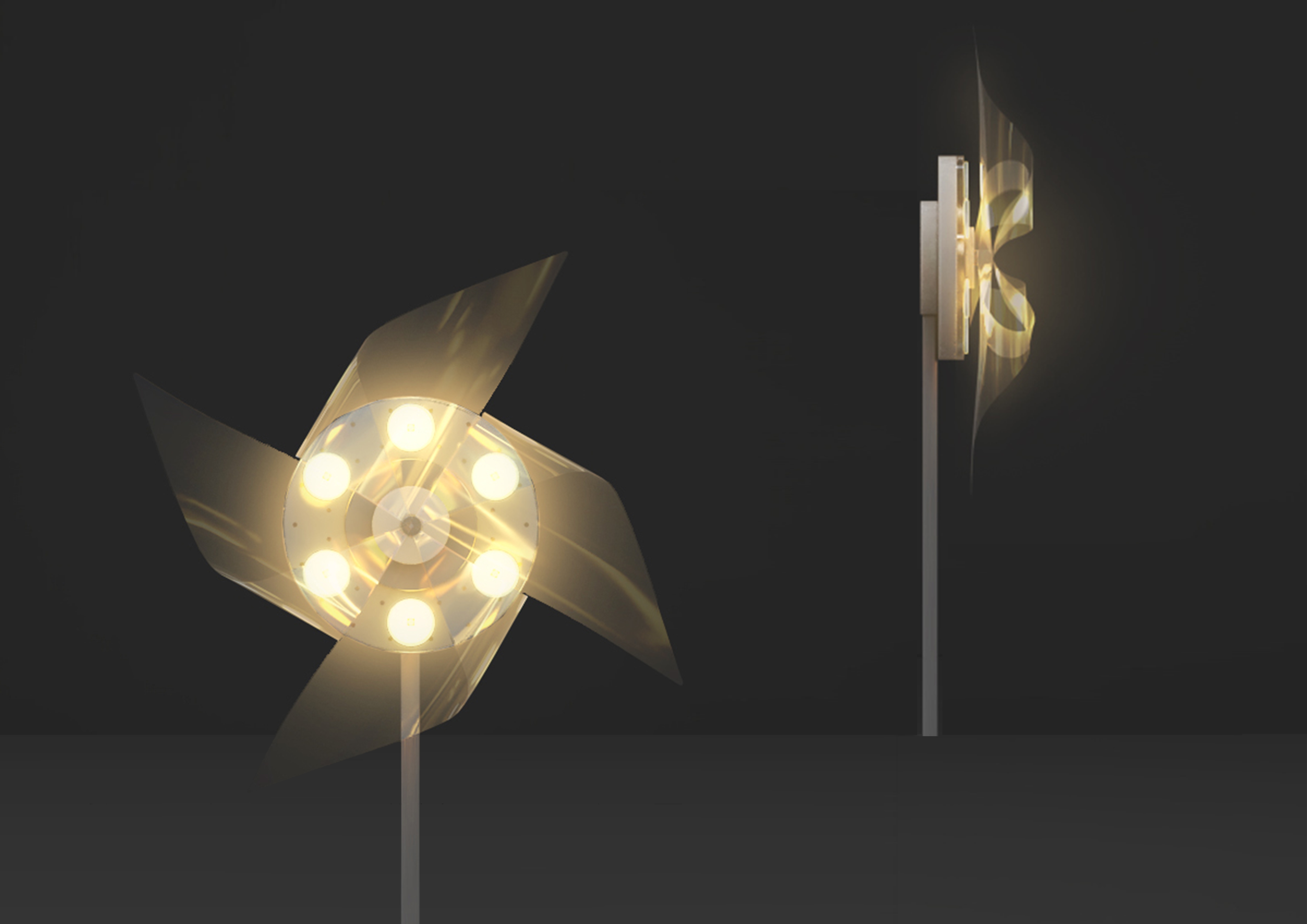 Sustainability ApproachApplying efficient LED light sources to reduce lighting energy consumption while meeting functional and usage requirements. Strictly control lighting to avoid adverse effects of light pollution on plants and animals. Strive to create an eco-friendly, comfortable and warm natural atmosphere. Introducing advanced lighting technology, strictly controlling the light distribution angle of the lamp, avoiding interference and scattered light, fully reflecting the concept of green lighting. The lighting fixtures should adjust the color and brightness of the light according to the wind, which not only saves energy but also increases the interactive experience between the lighting and nature. The shell of the lamp and the material of the flying car blades are waterproof and durable, which can be used outdoors for a long time, reducing plastic pollution and protecting the environment.