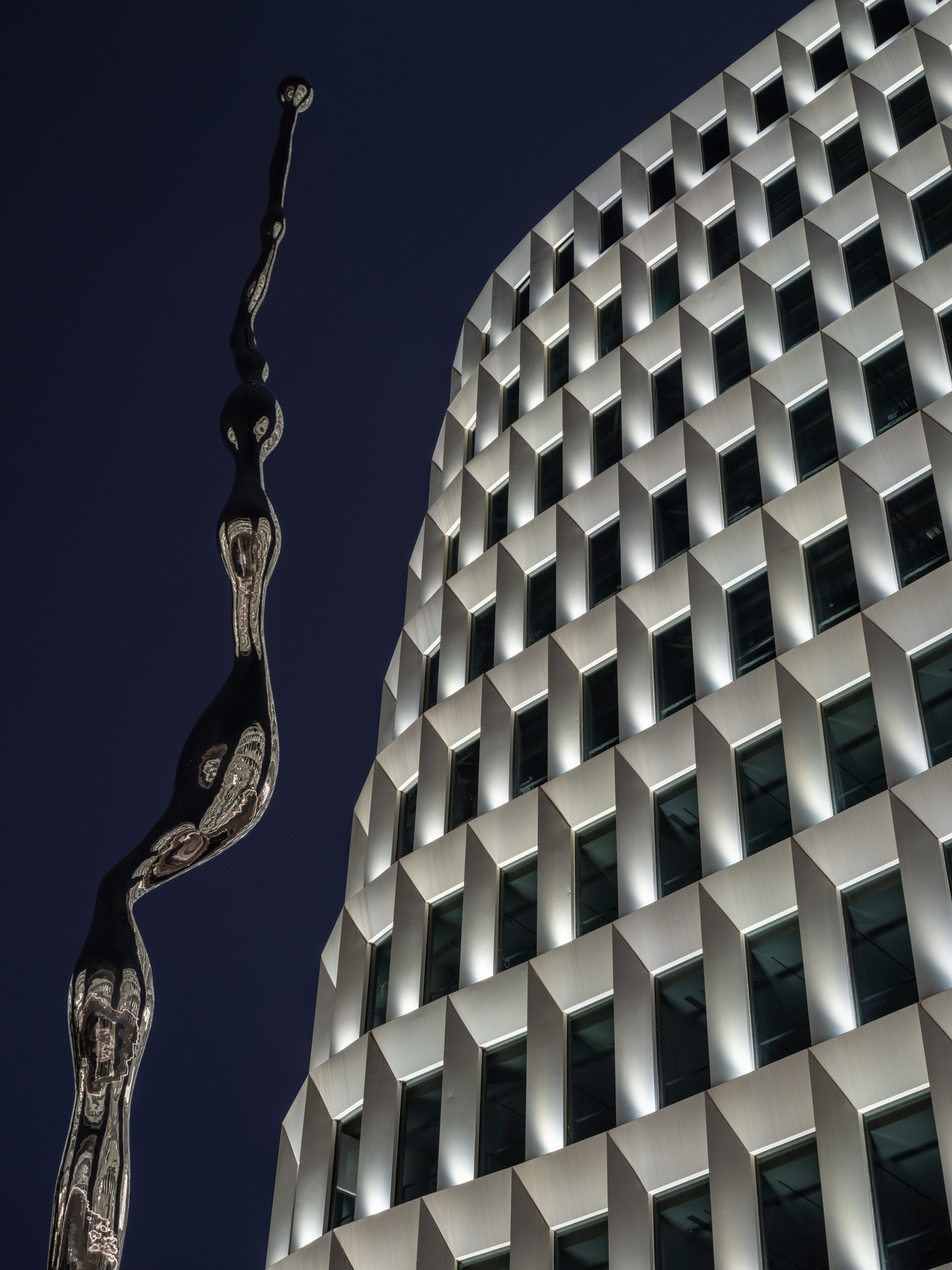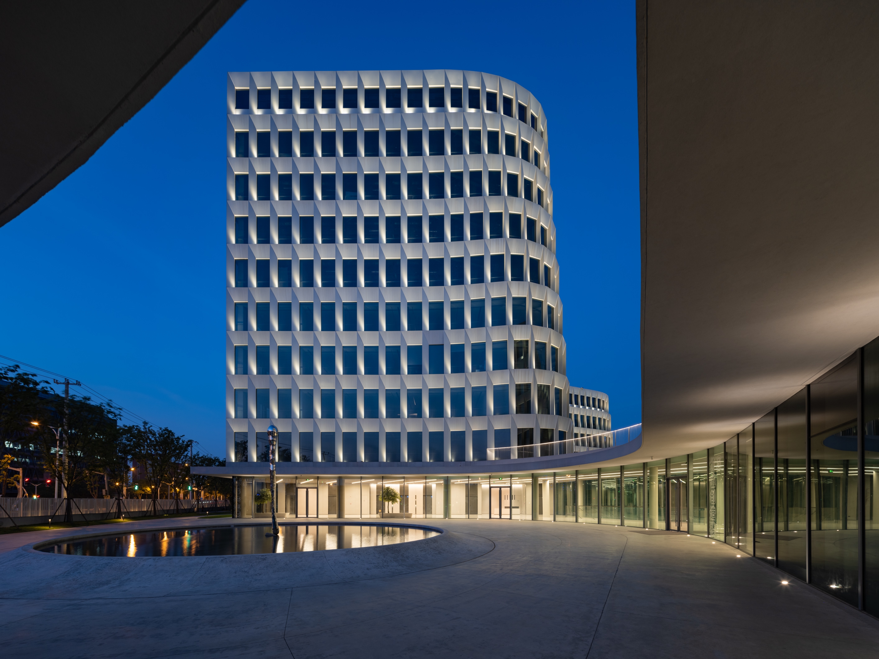 The upper lighting is hidden in the surface of the corner ofthe curtain wall, and through dynamic control, the linkage of the five buildings is achieved, gradually breathing in layers, reflecting the structural beauty while also facilitating maintenance and repair in the usage. At the same time, precise lighting control also avoids lighting fixtures be seen for people from indoors.