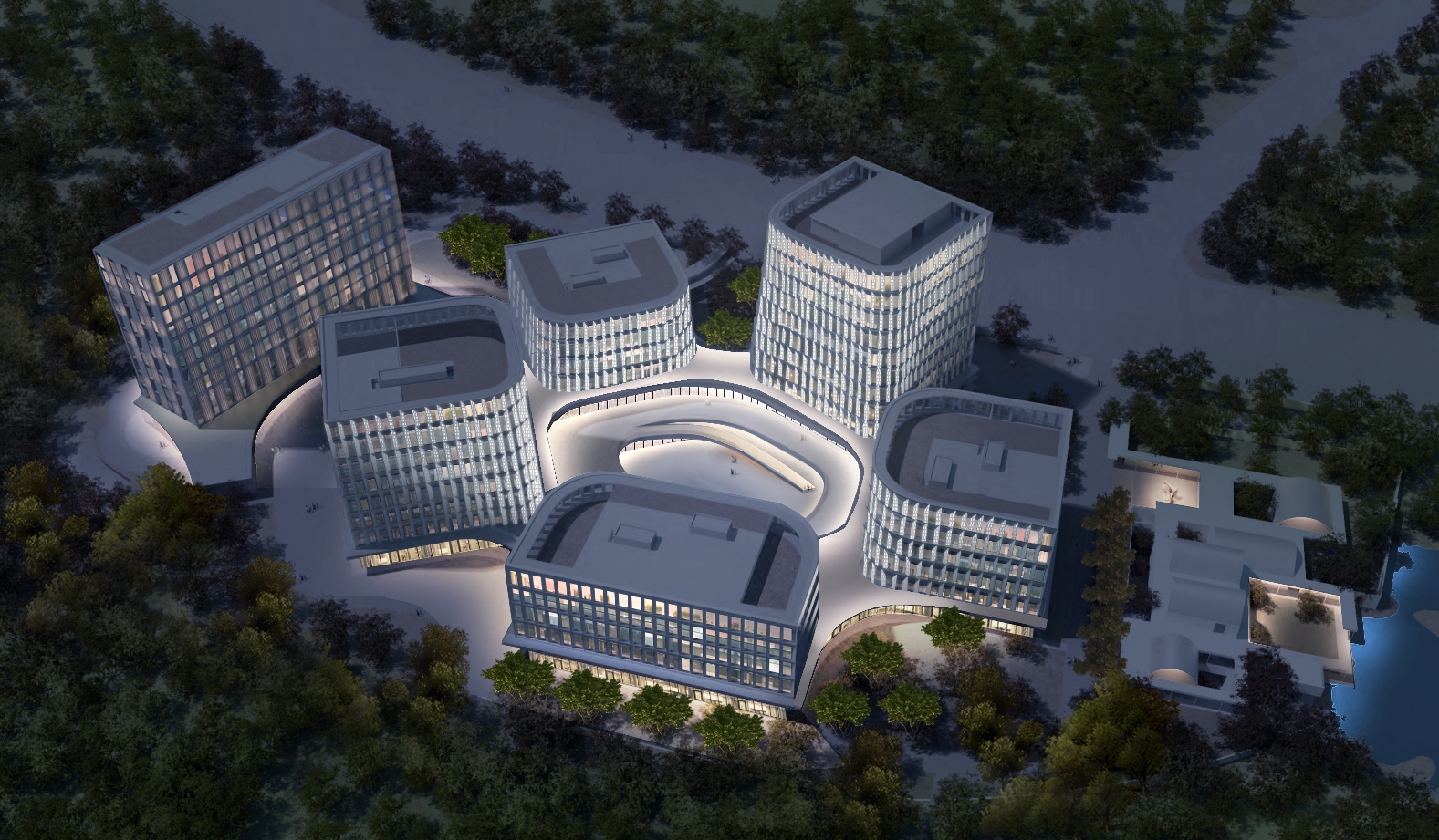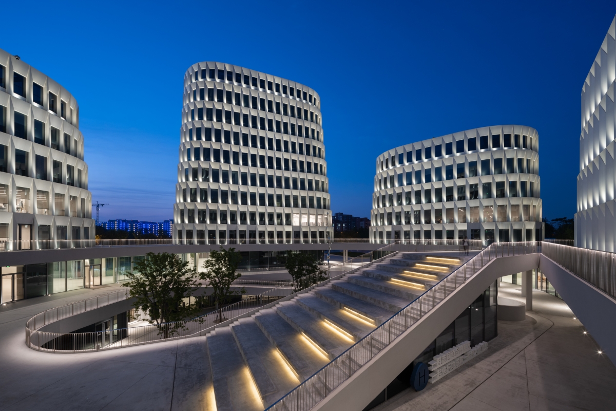 Entry DescriptionThe Huazhu Global Headquarters Park is a six-part central surrounded multi towers, including the R&D headquarters, R&D design building, and discussion center. The free light is as butterflies, breathing on the building's surface and displaying slow and elegant wing movements. The lighting design concept revolves around the free infiltration of light as the core. Light is an artwork that integrates with architecture, giving space an artistic spirit.