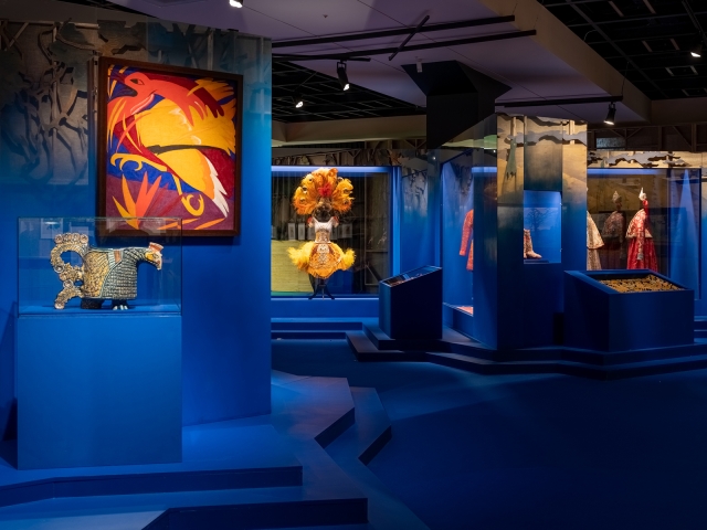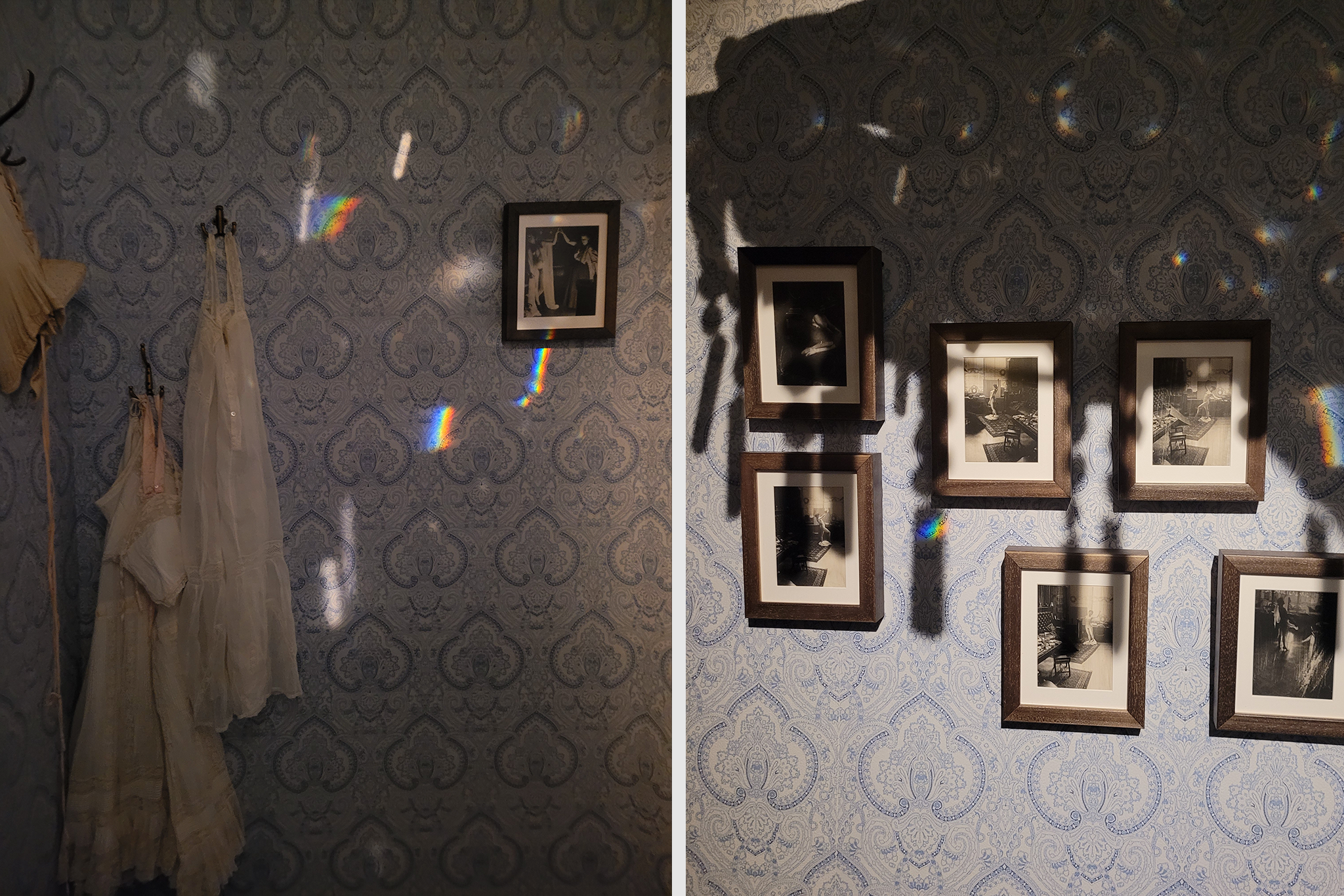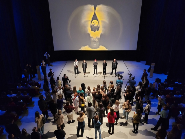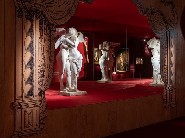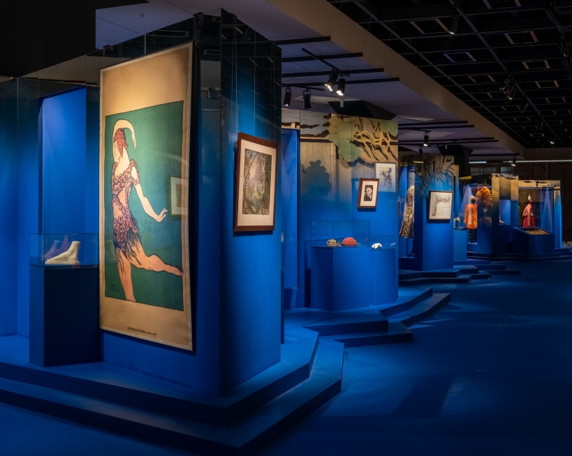 In the entrance hall, the visitor gets "behind the scenes". The rooms are darkened and toned with blue light that immerses visitors into the atmosphere of the theatre, referring to the scenography of Swan Lake.