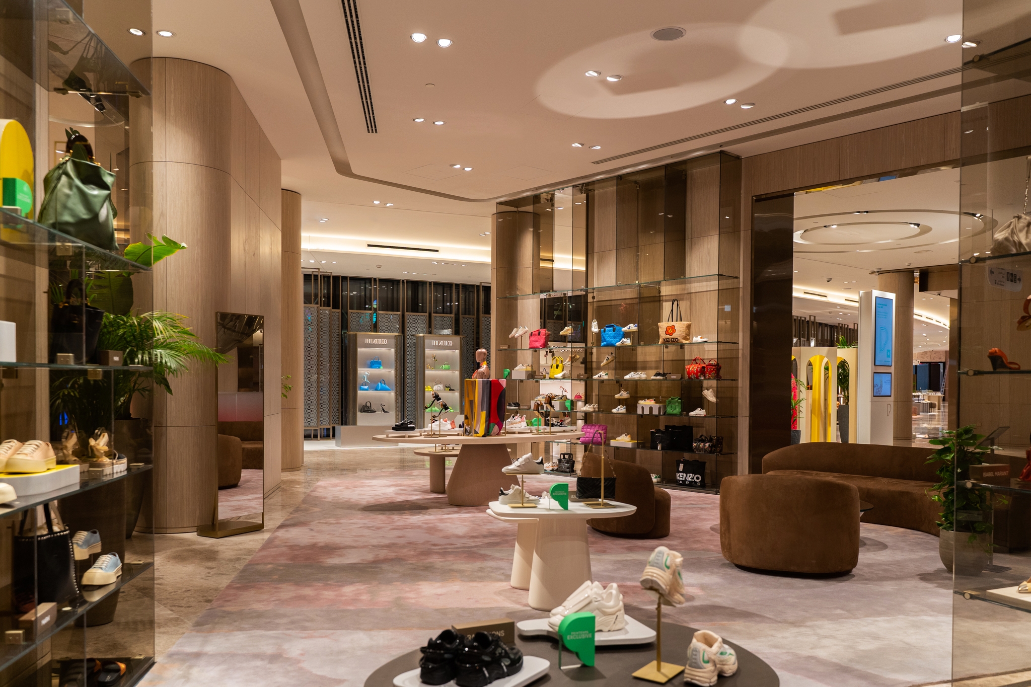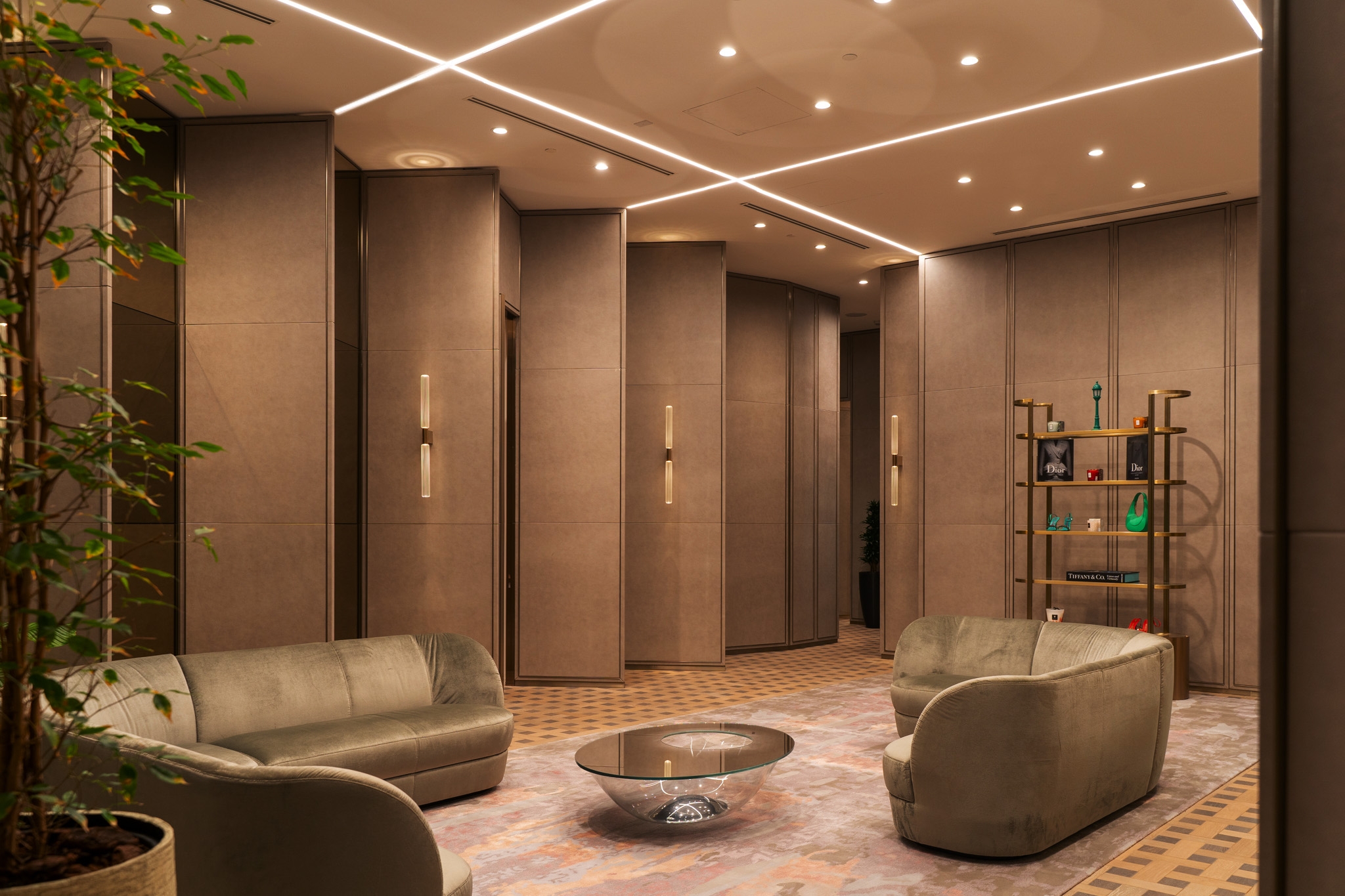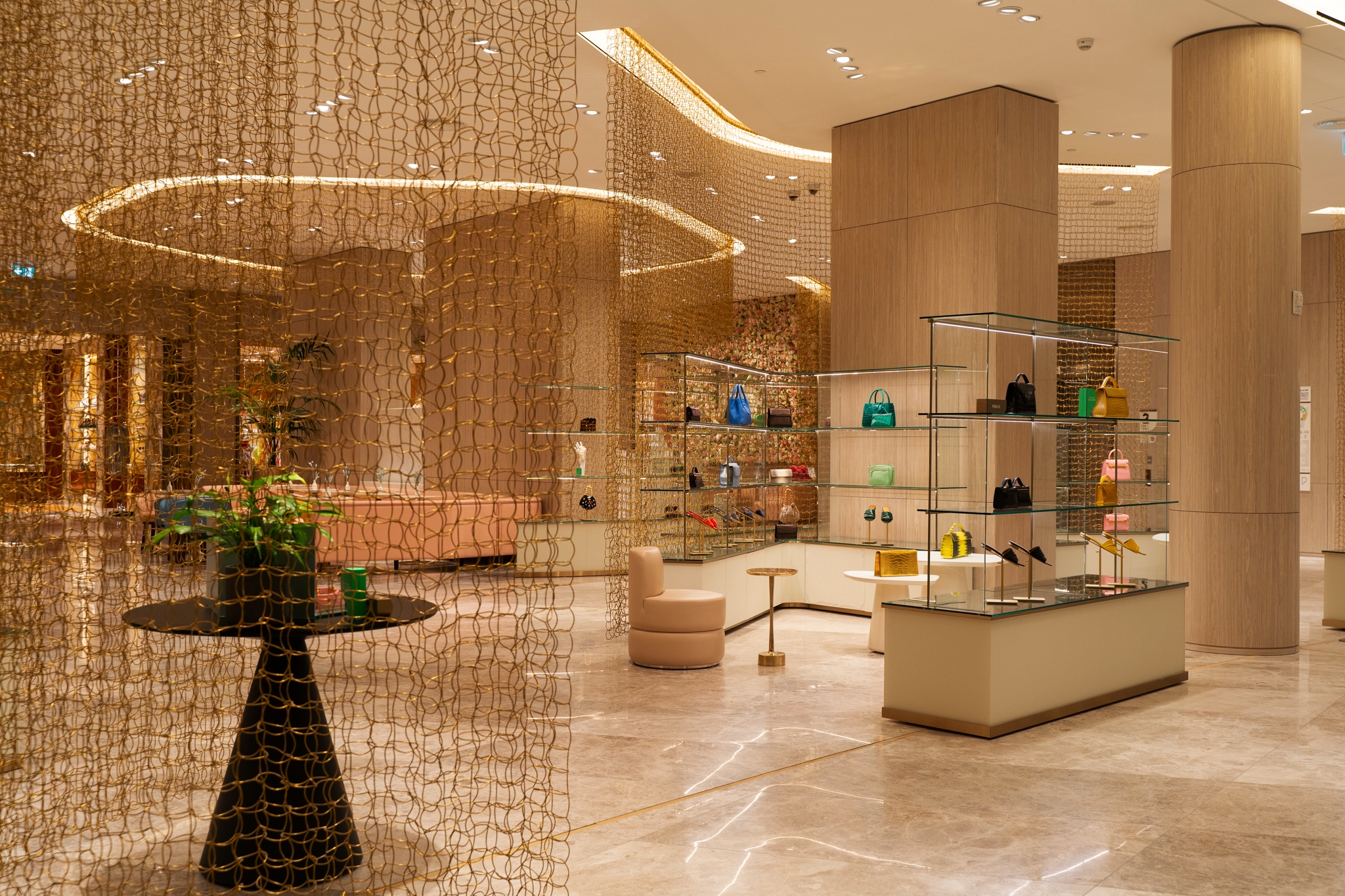 To further enhance the store's ambiance, warm color temperatures were chosen with the hues adding a touch of coziness and sophistication, creating an inviting atmosphere for customers. This choice of colour temperature complements the luxurious nature of the store, fostering an environment that resonates with the high-end products on offer. Maintaining a consistent design language was crucial to ensure a cohesive visual identity throughout the store.